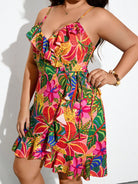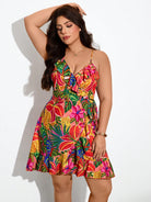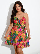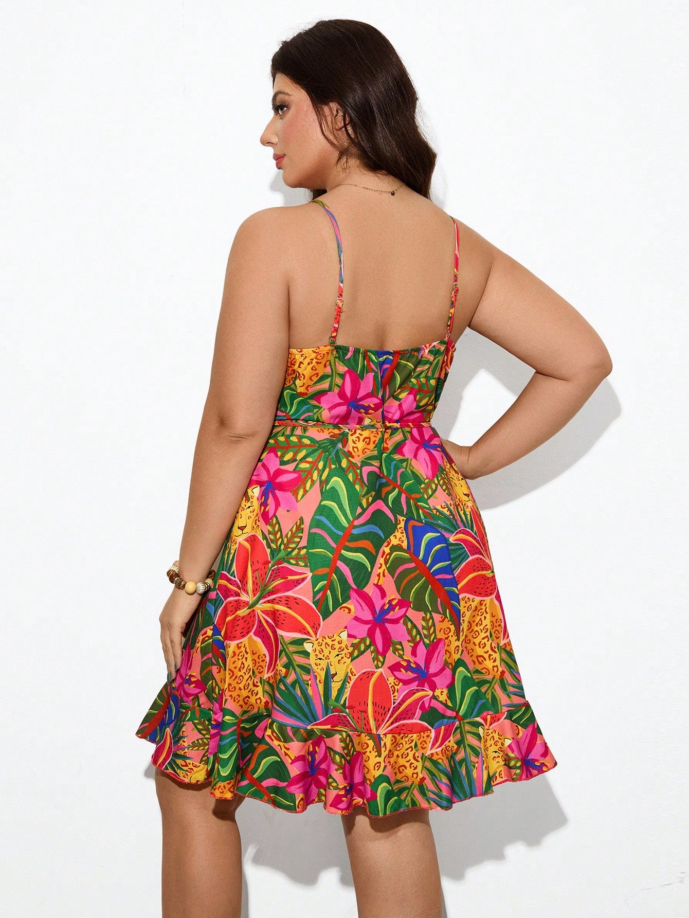 Maija Plus Size Tropical Print Tie Spaghetti Strap Wrap Casual Beach Dress Bohemian Beach Holiday Style