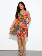 فستان شاطئ كاجوال بمقاسات كبيرة من مايا بطبعة استوائية وربطة عنق وحمالات رفيعة، مناسب لقضاء العطلات على الشاطئ البوهيمي
