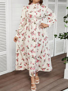 فستان مولفاري النسائي بمقاس كبير بطبعة زهور وياقة واقفة وأكمام فانوس