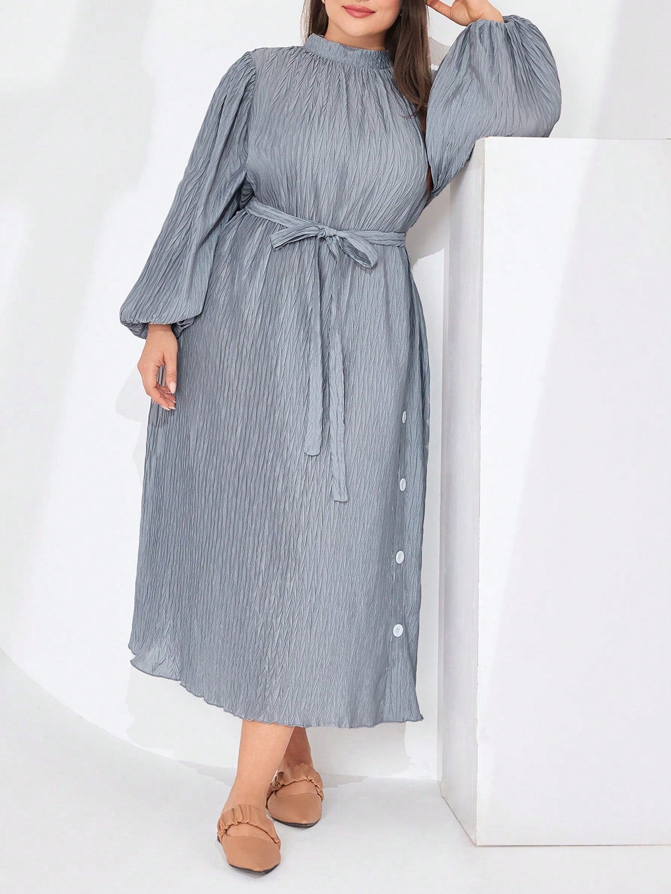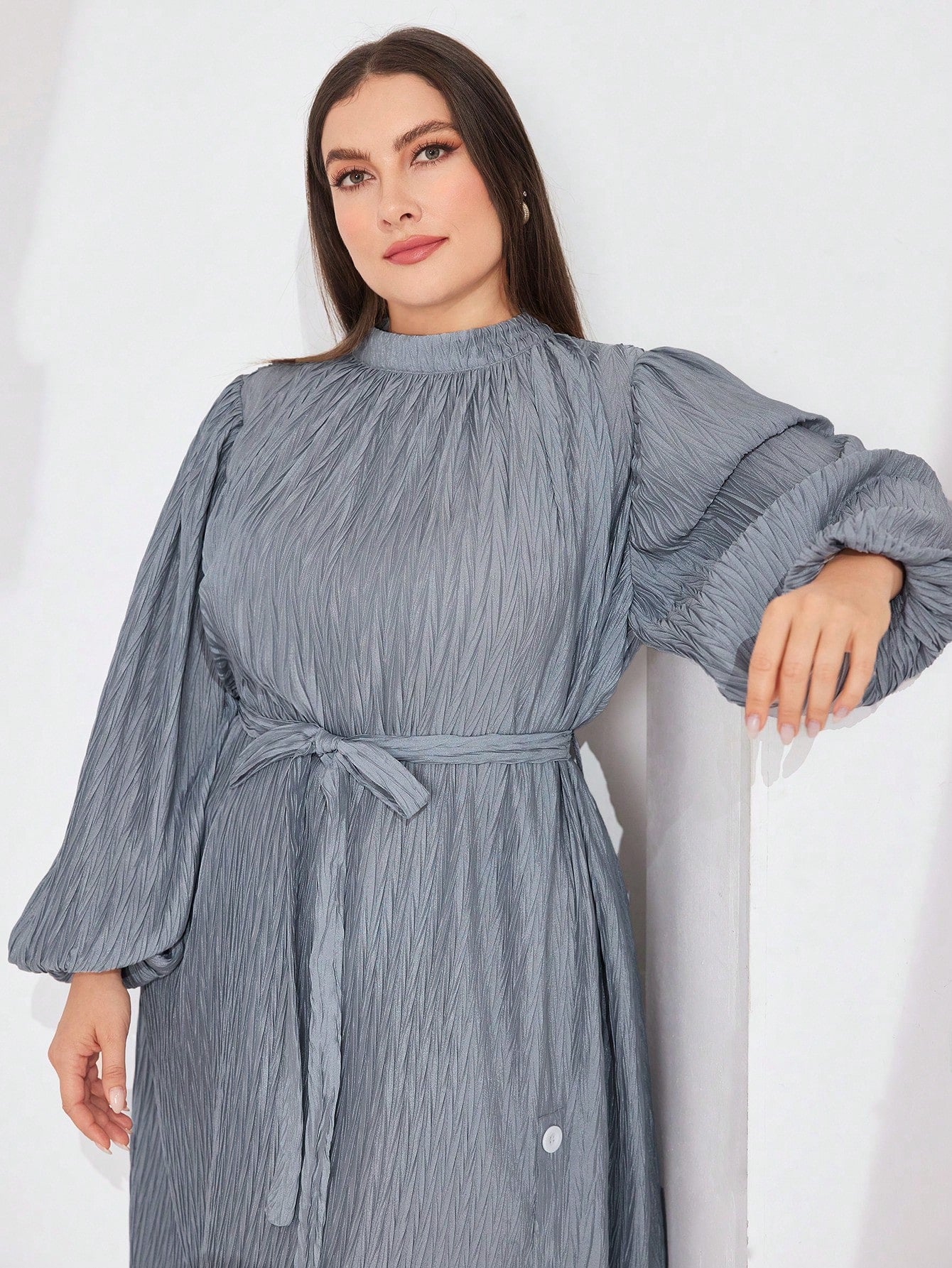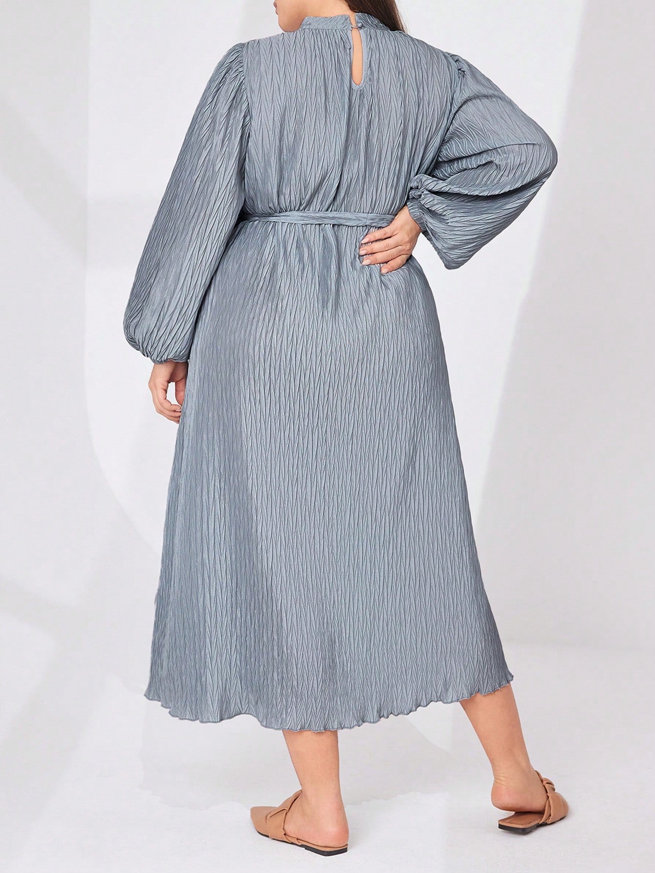 women Mulvari Plus Size Women'S Textured Material Lantern Sleeve Dress