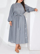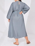 فستان مولفاري للنساء بمقاسات كبيرة بأكمام فانوس من خامة منسوجة