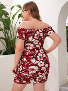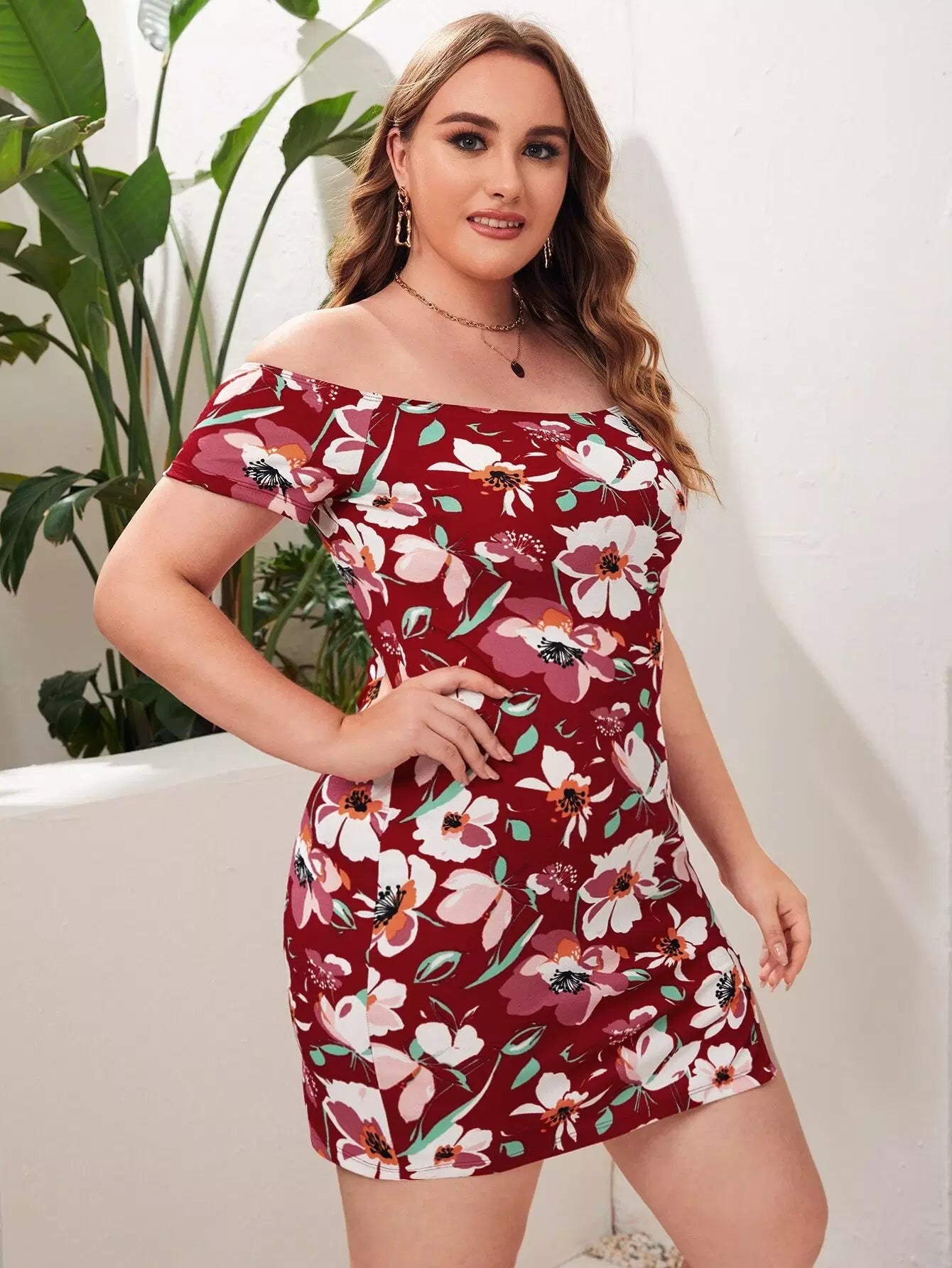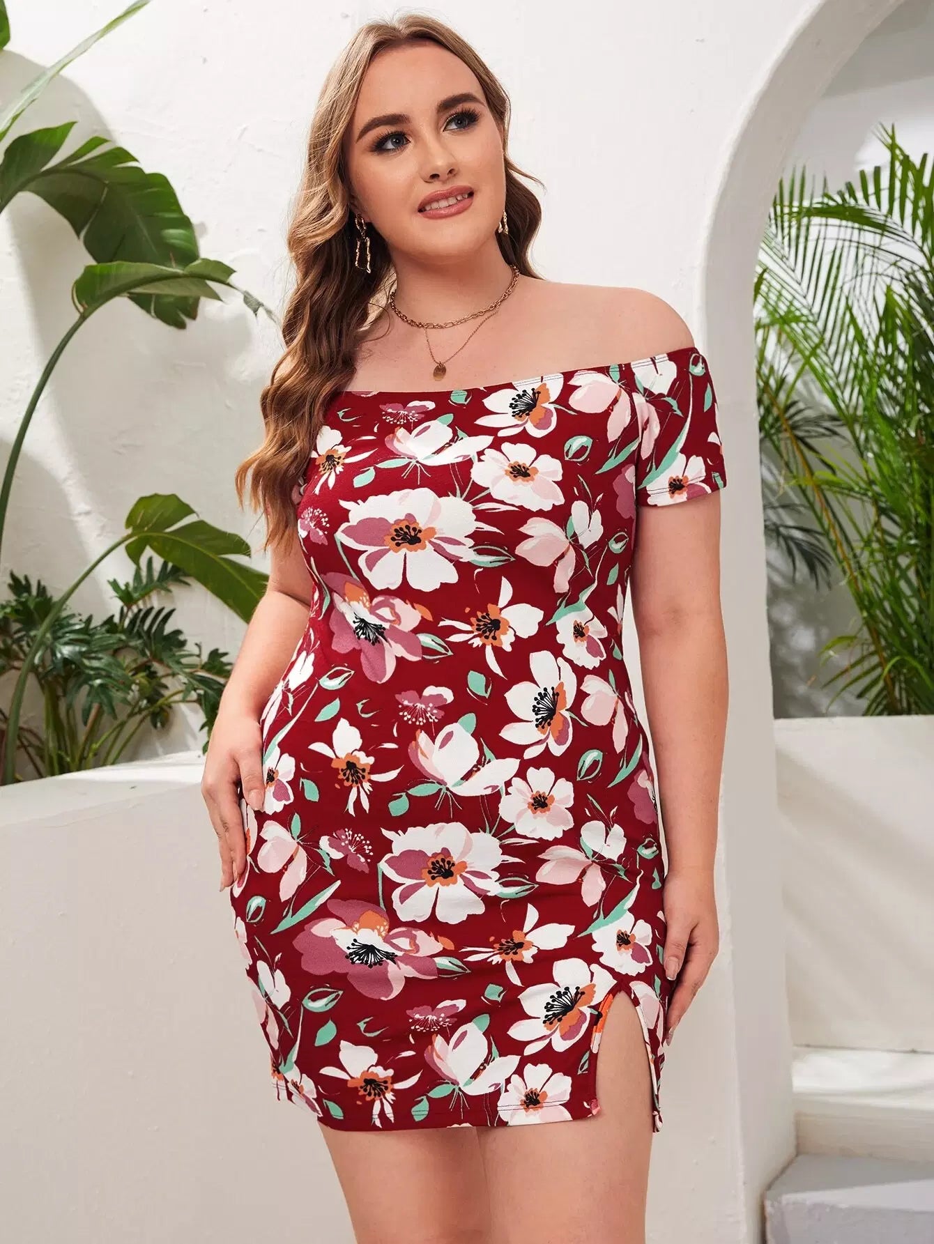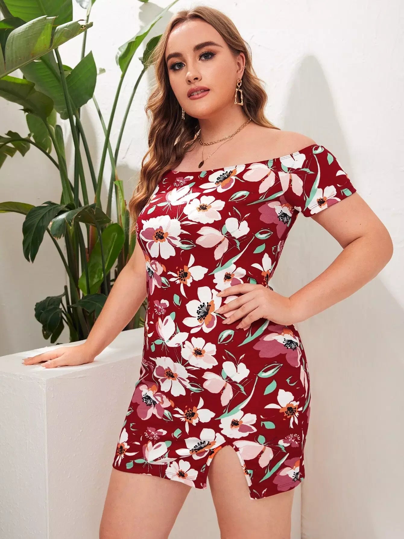 فستان زائد 1 بلس 1 قطعة فستان زهري بحافة مشقوقة على الأكتاف