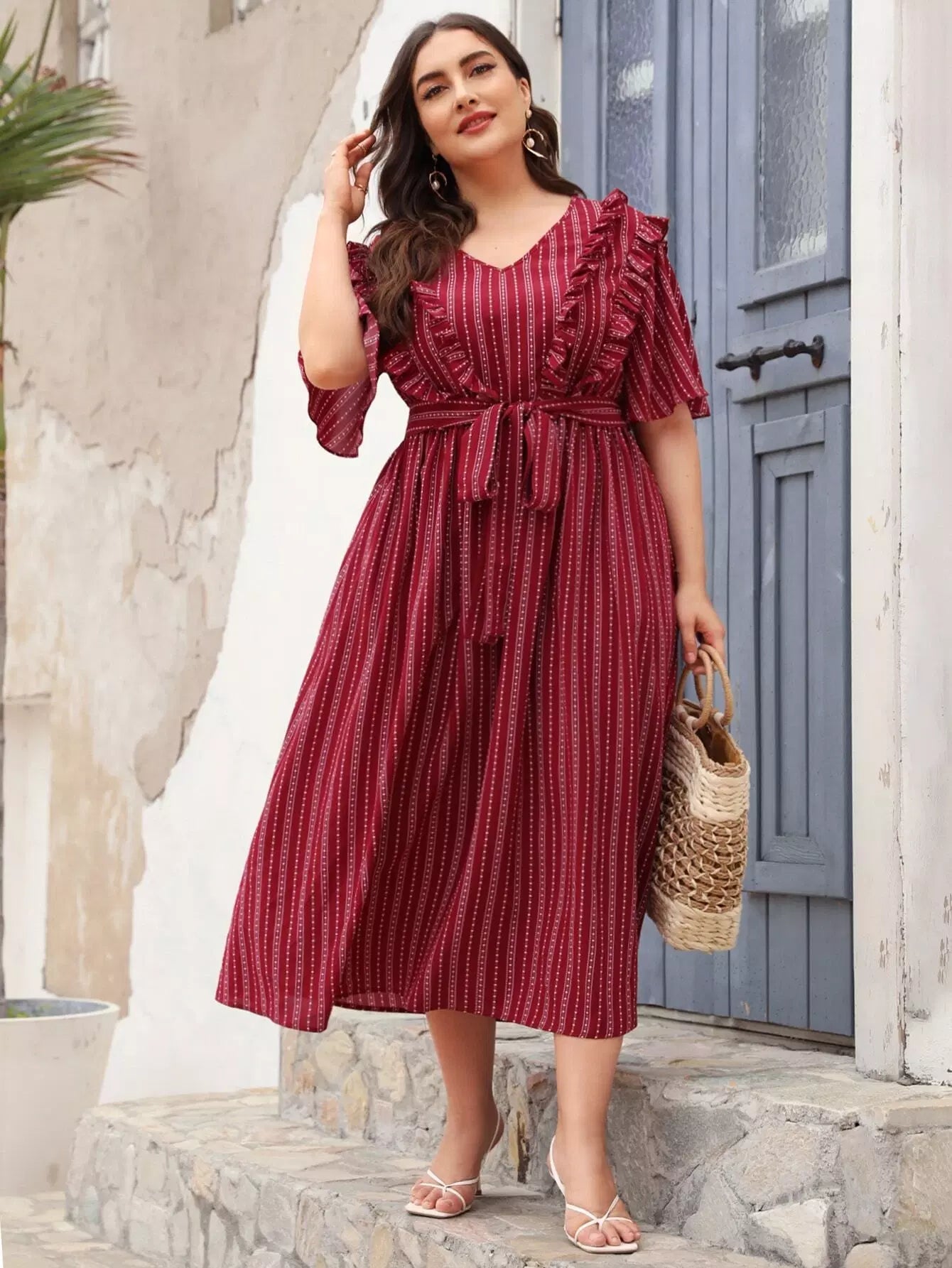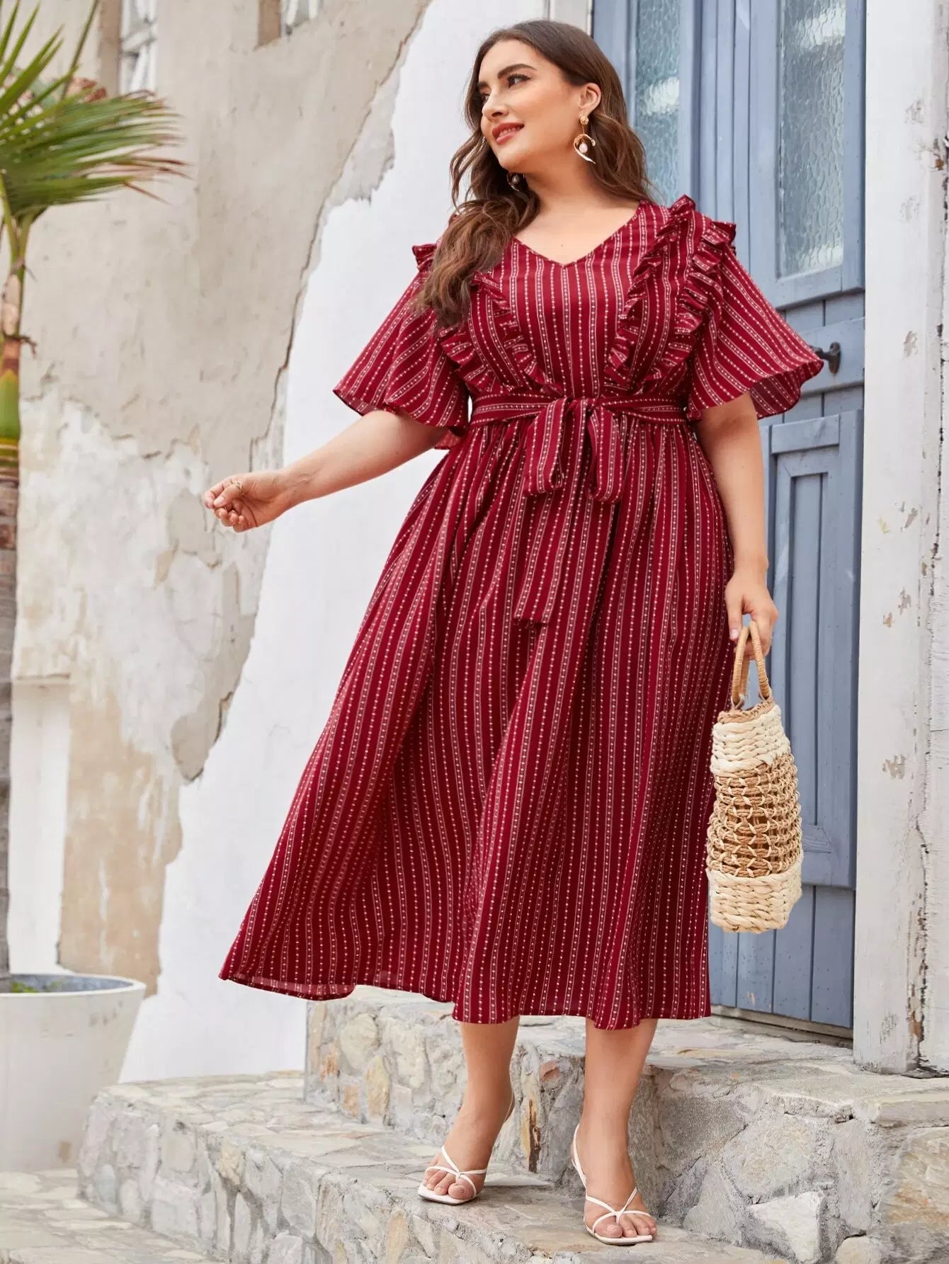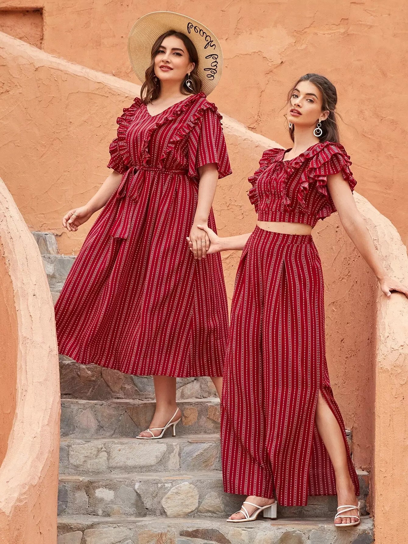 بالإضافة إلى فستان واحد مكشكش برقبة على شكل حرف V بدون حزام