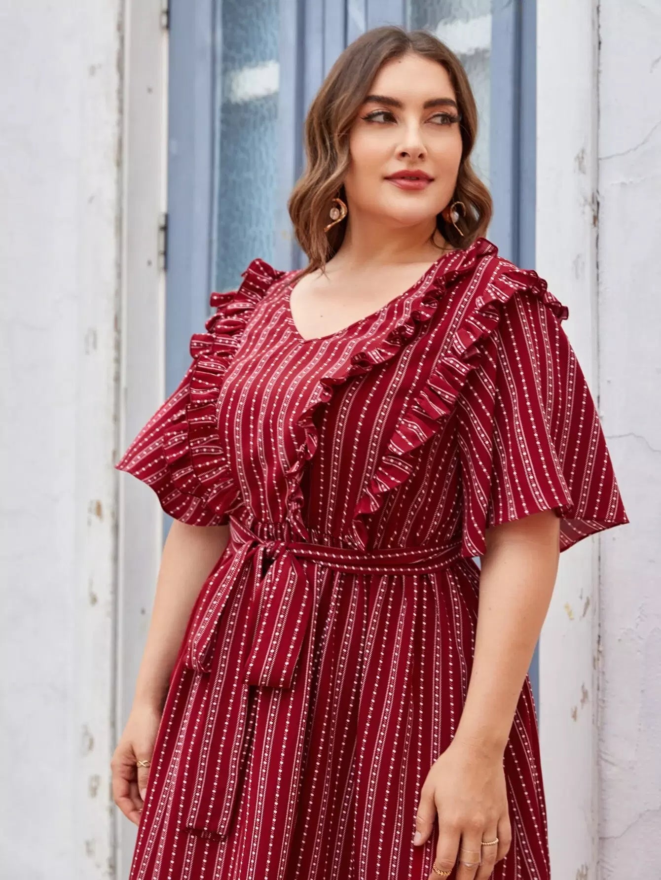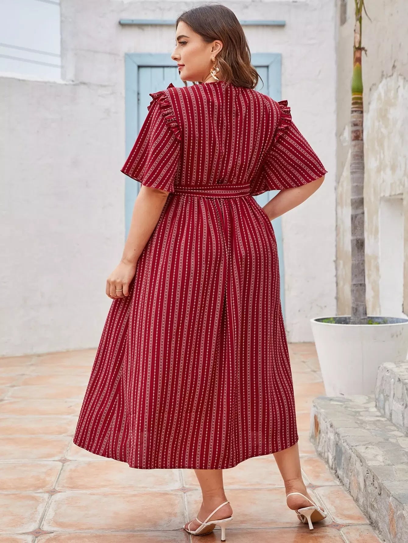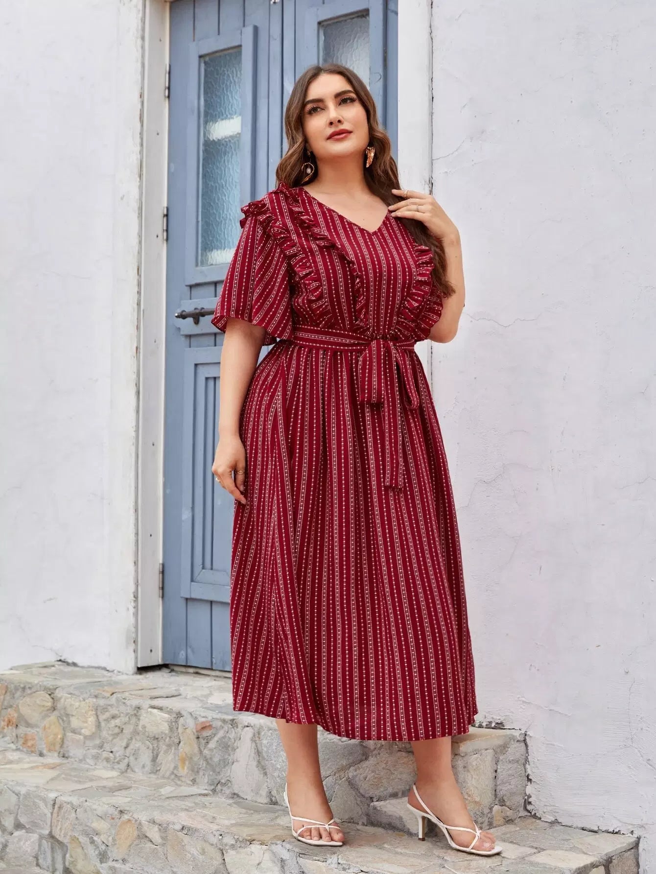 بالإضافة إلى فستان واحد مكشكش برقبة على شكل حرف V بدون حزام