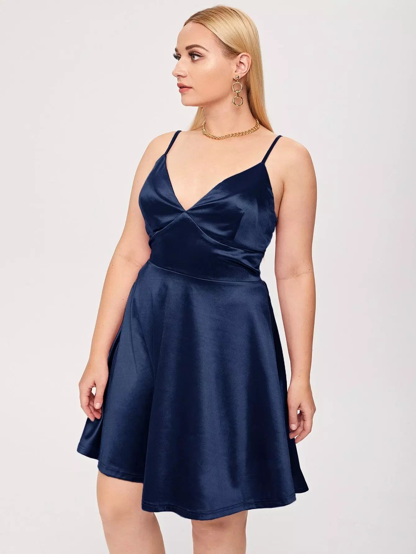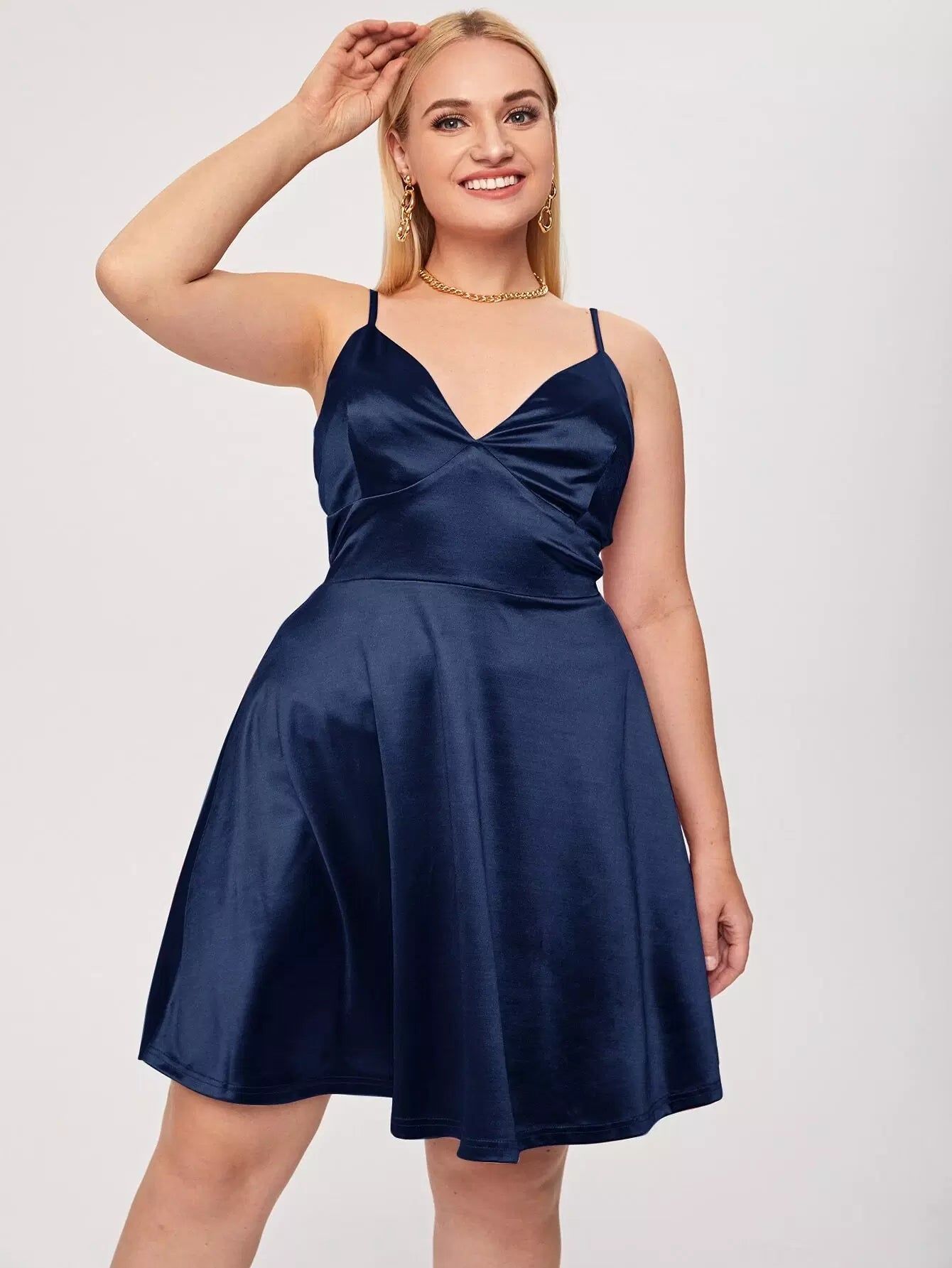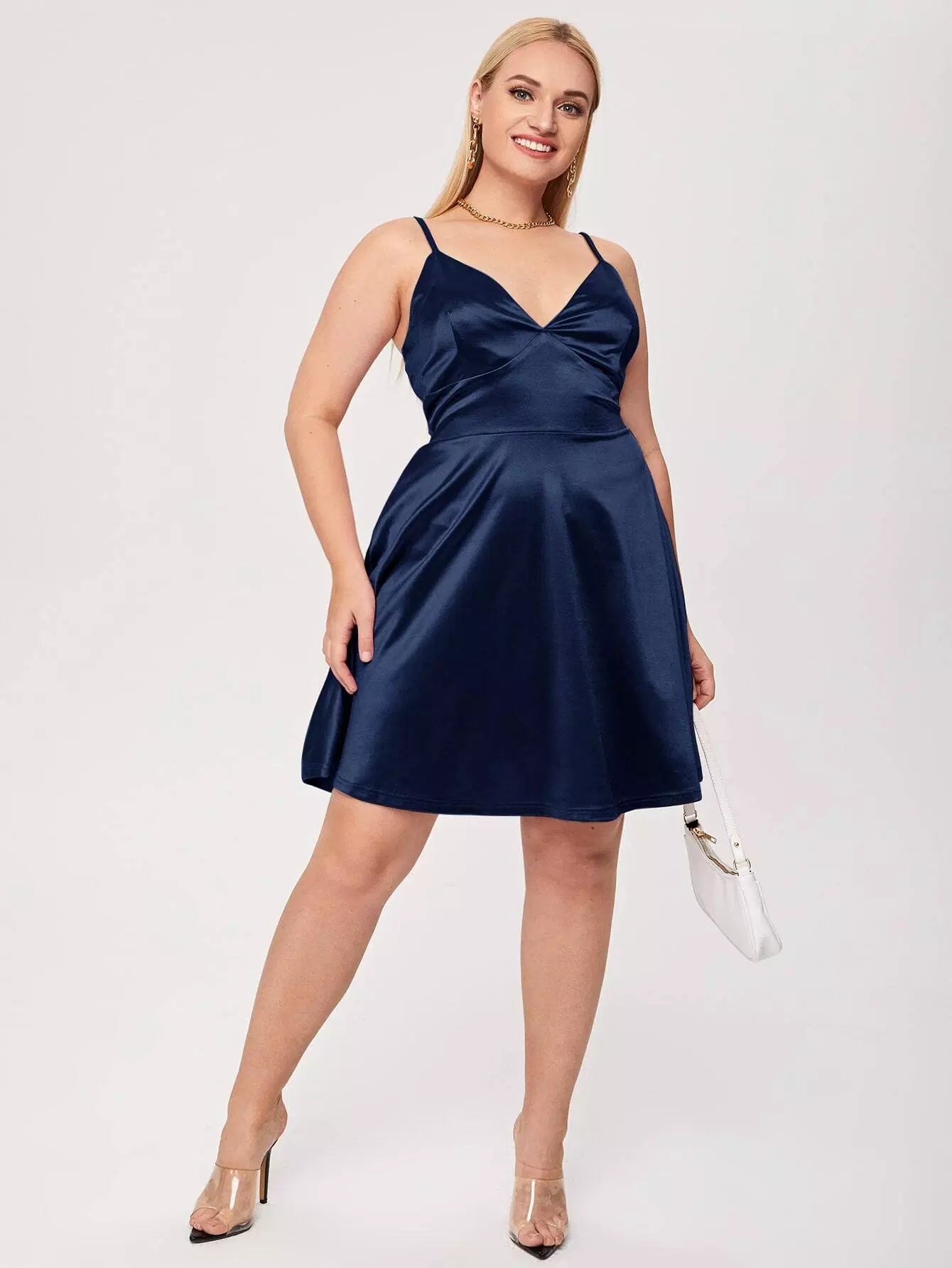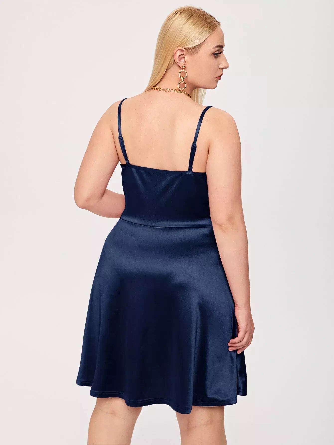 فستان كامي سادة سادة ساتان بحمالات قابلة للتعديل