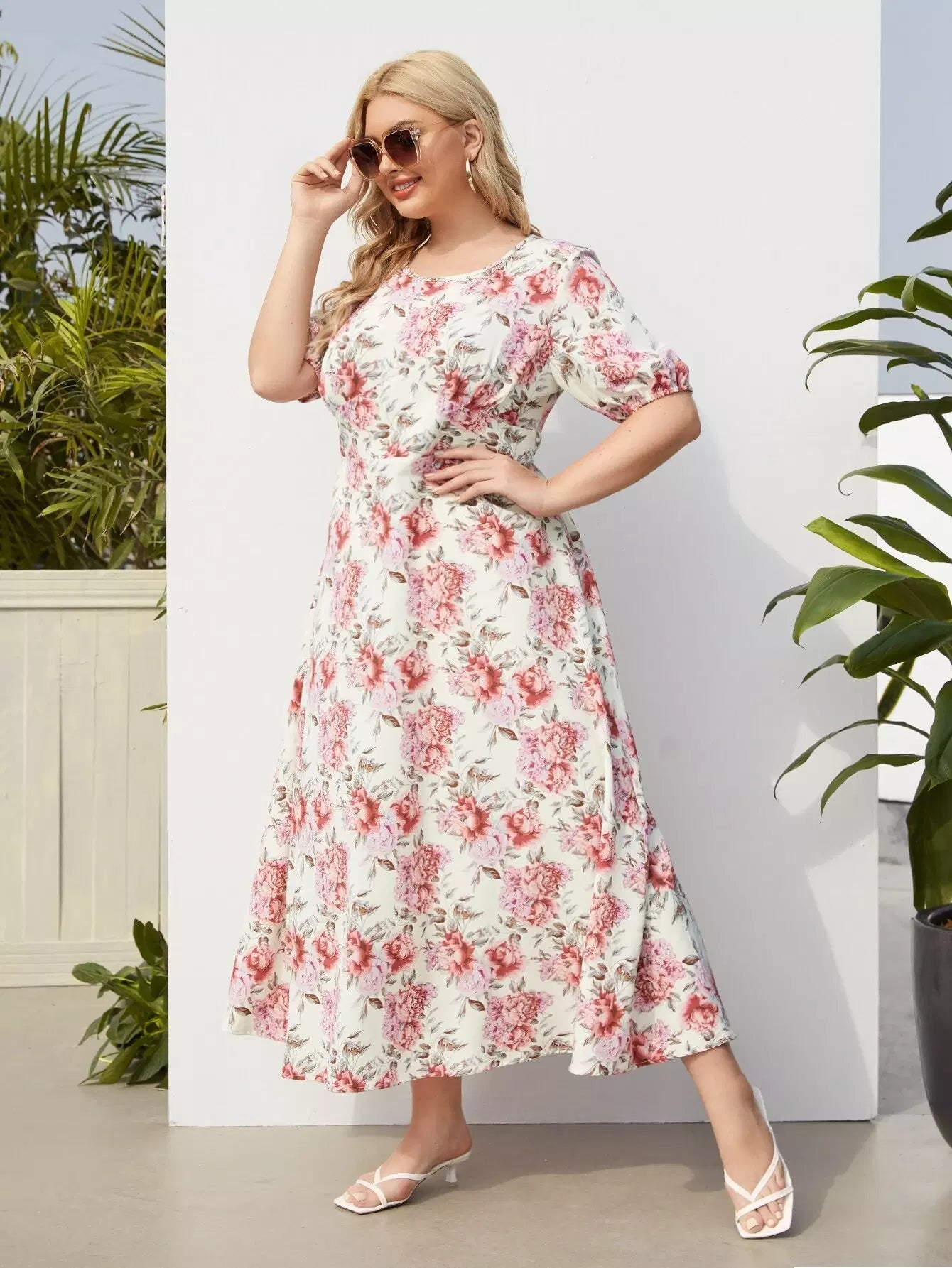 فستان بقصّة على شكل زهور زائد على شكل A