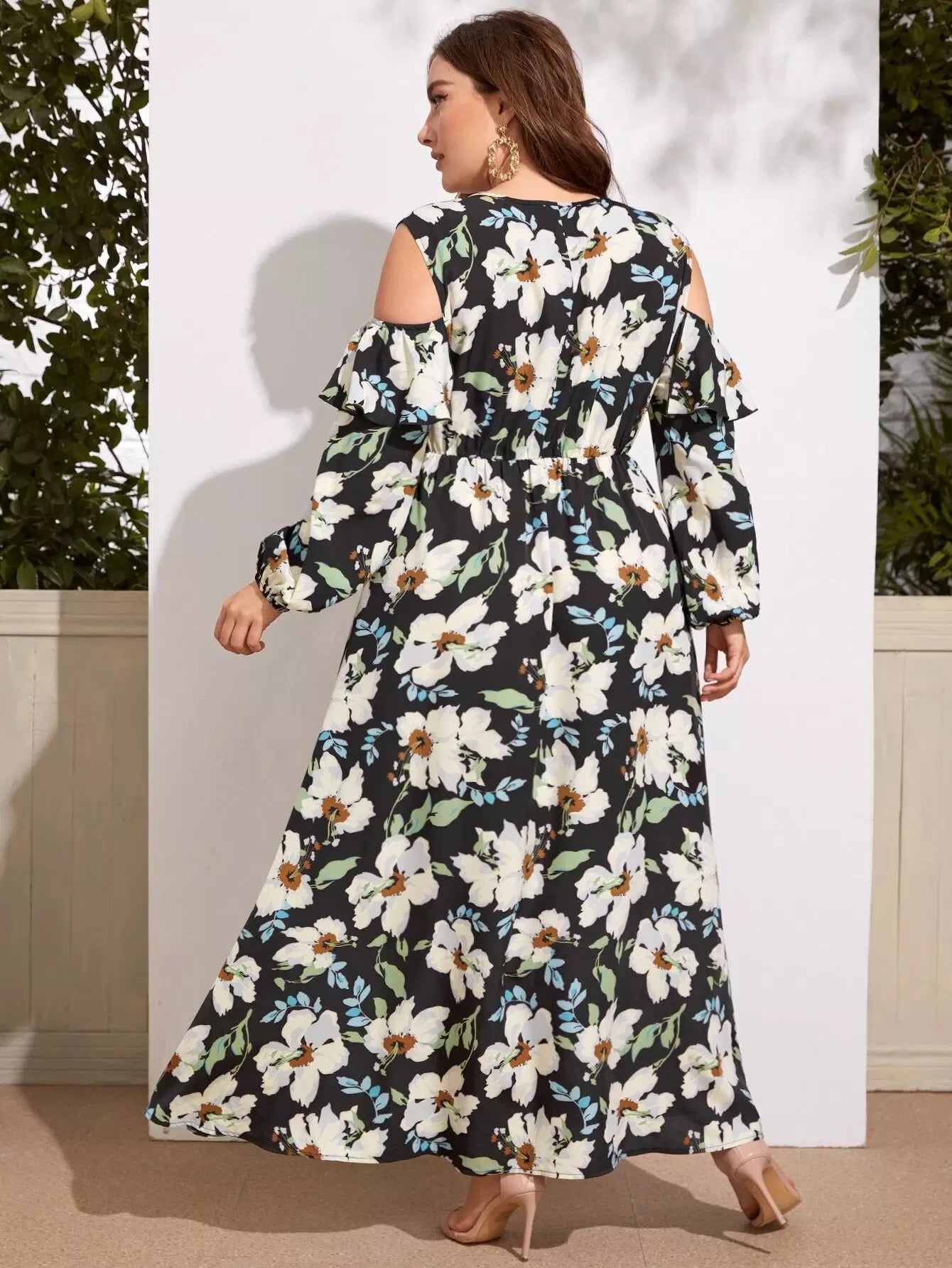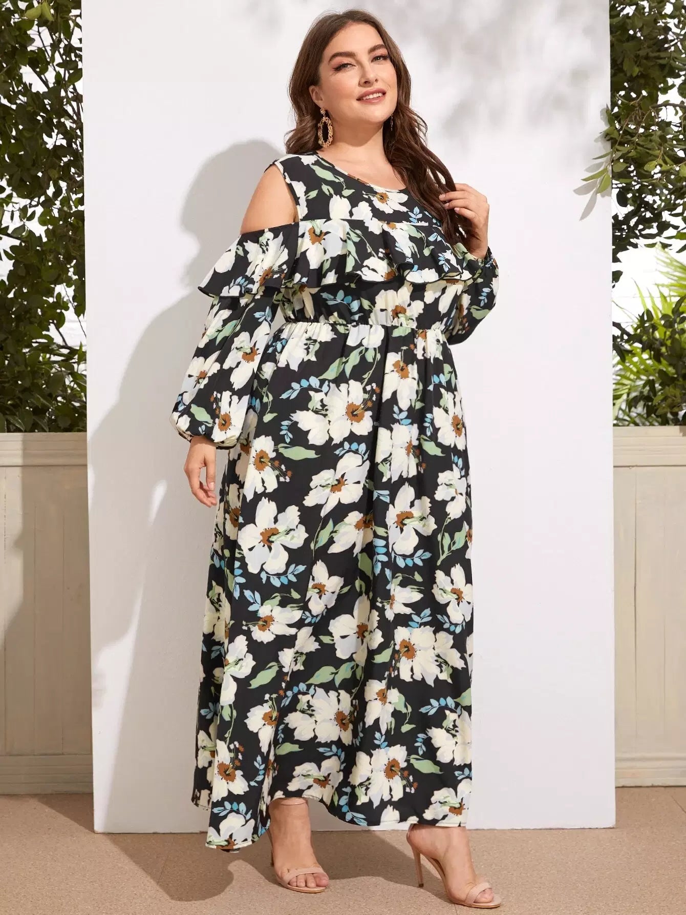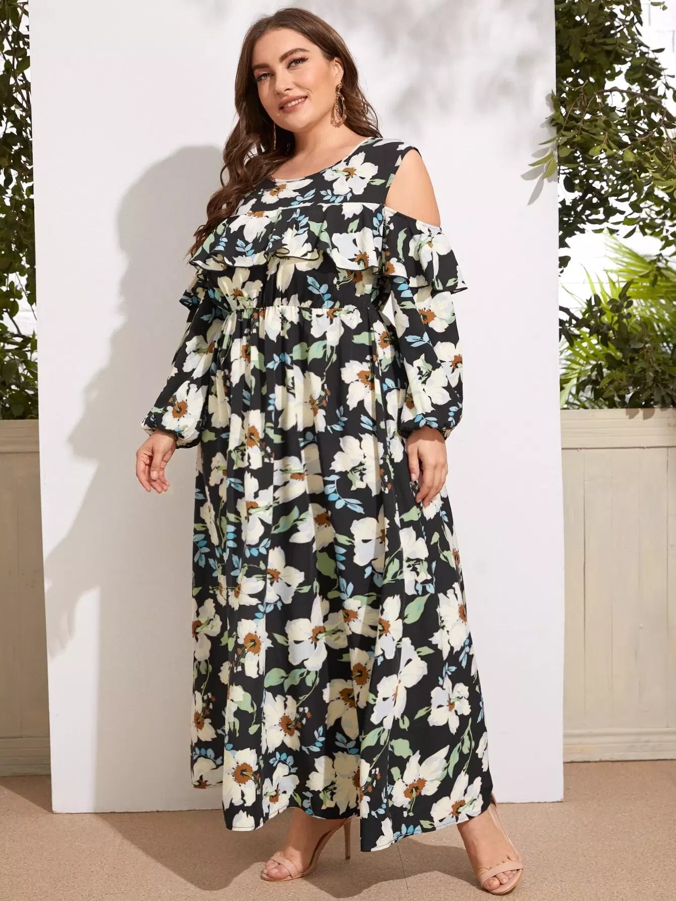 فستان ذو أكتاف باردة مكشكشة على شكل أكتاف باردة بلس بلس
