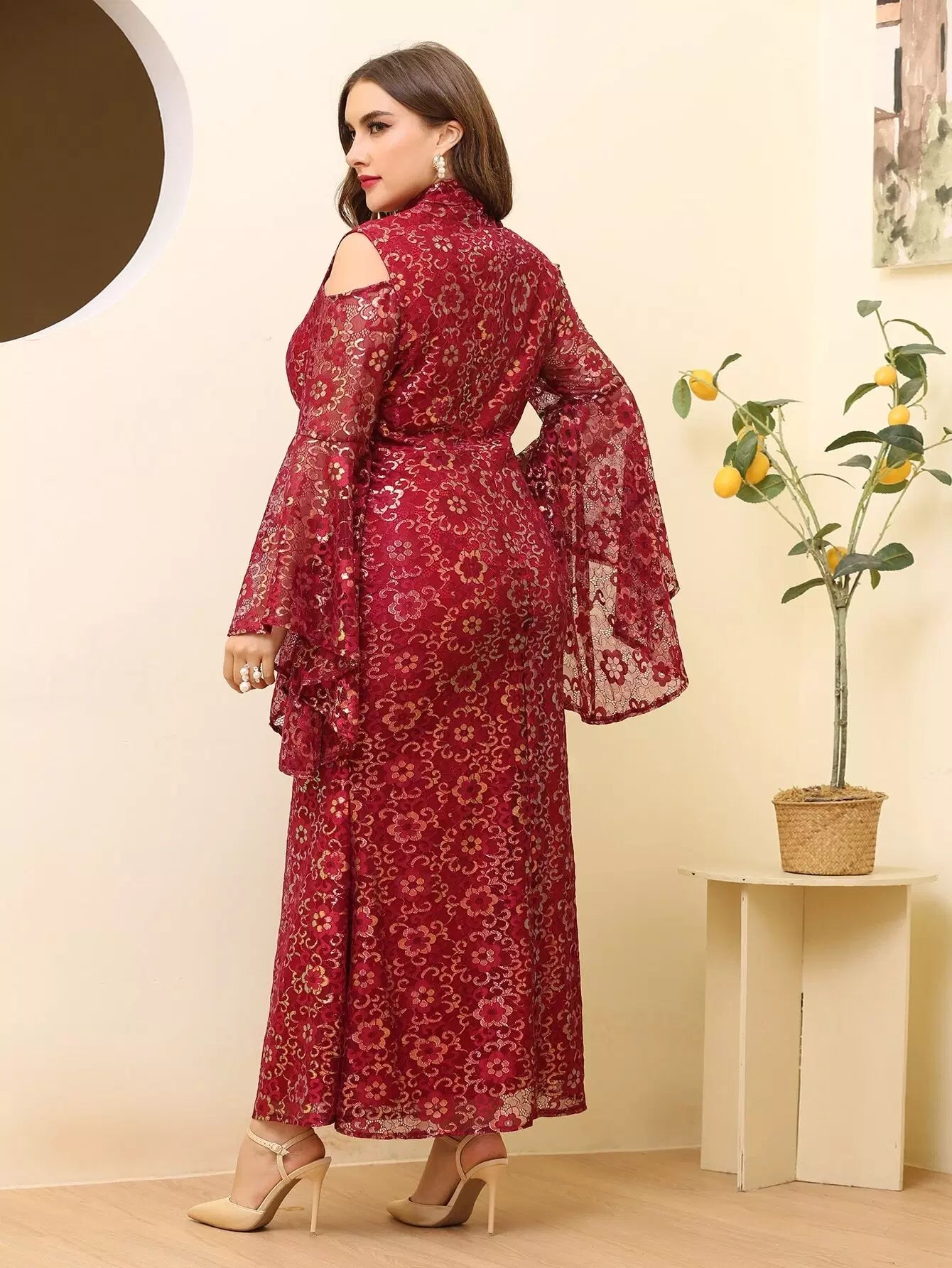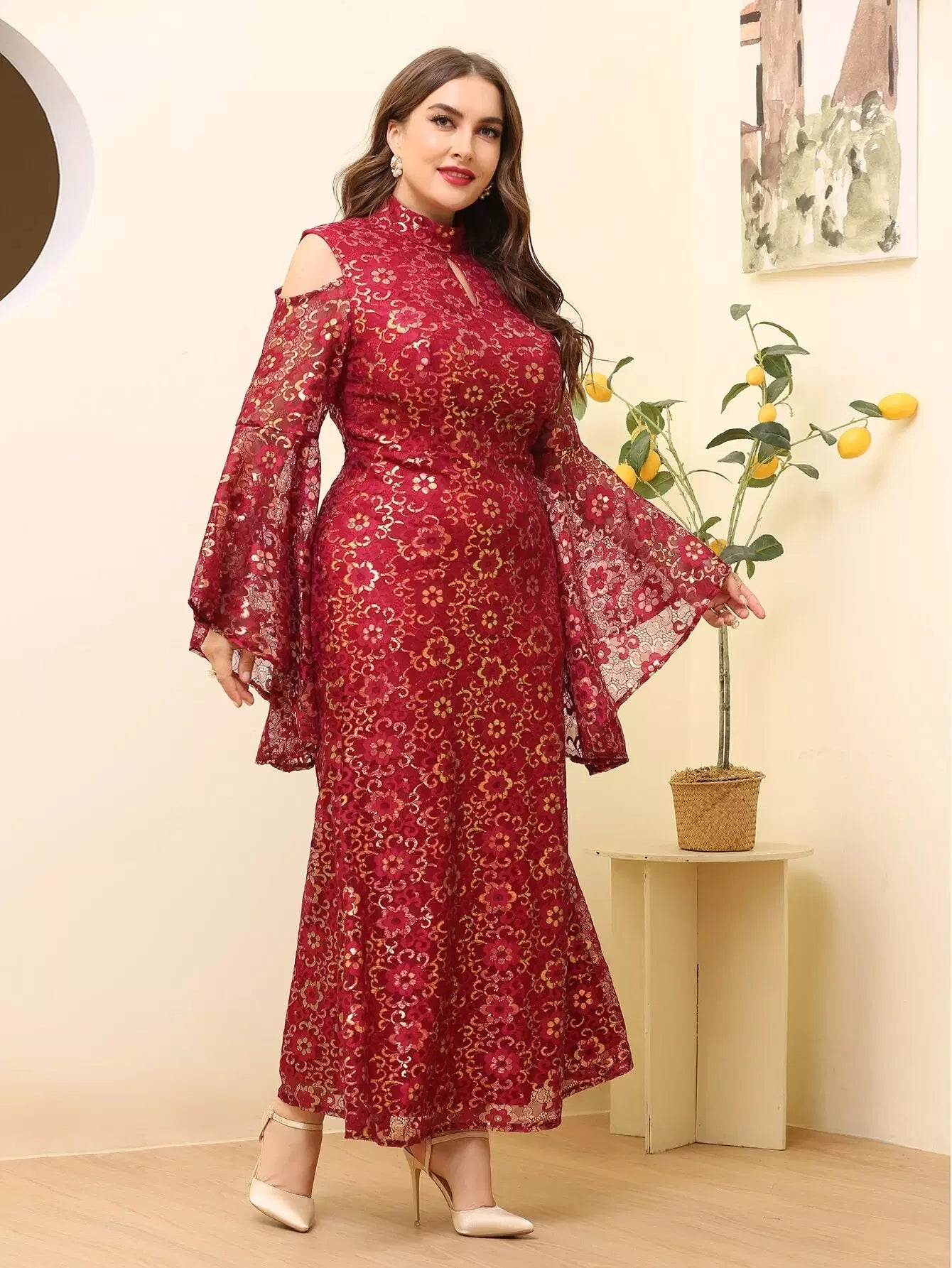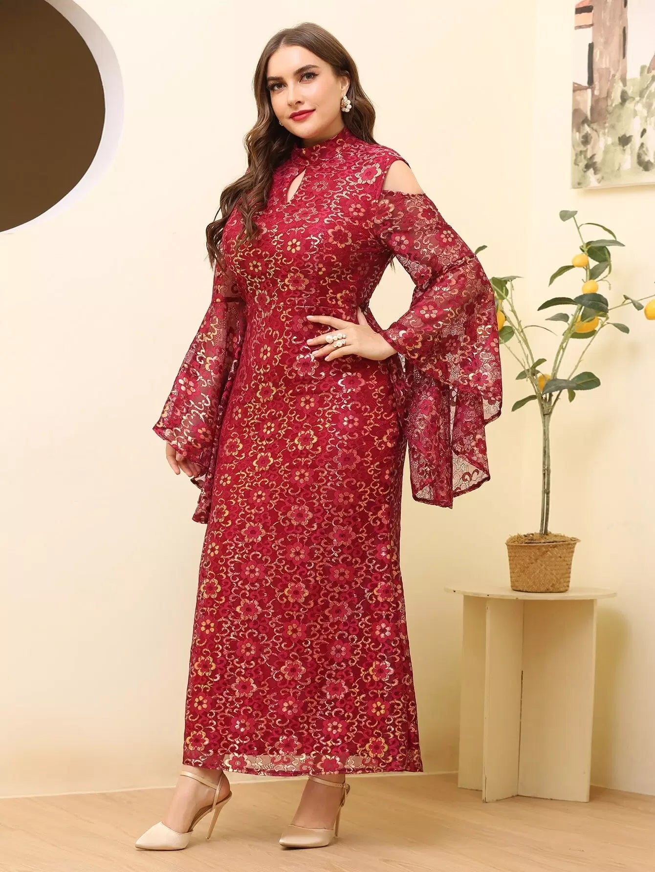 فستان بقصّة أكتاف مقطوعة الزهور على الأكتاف بالكامل