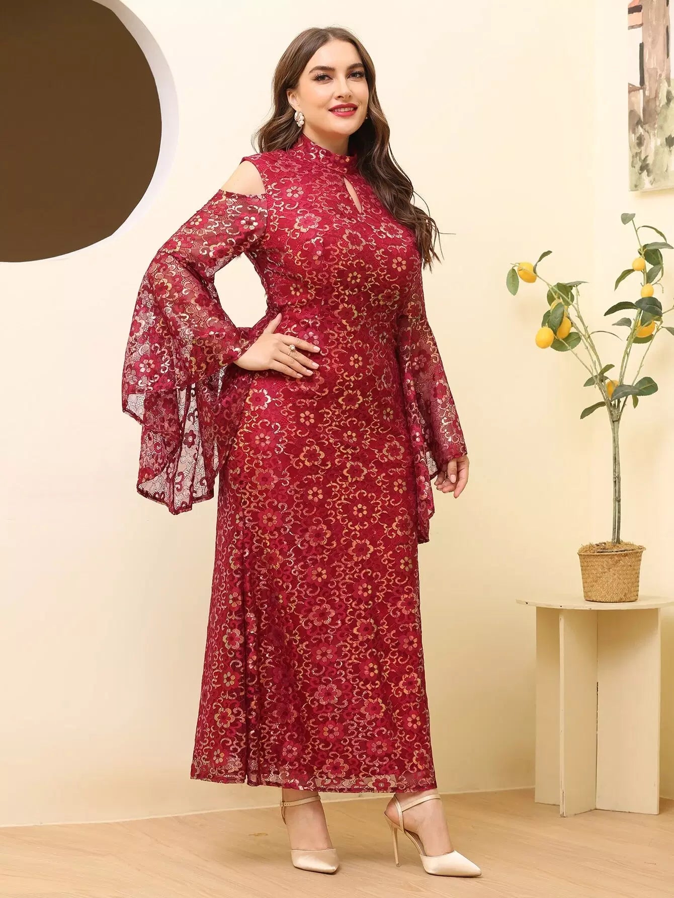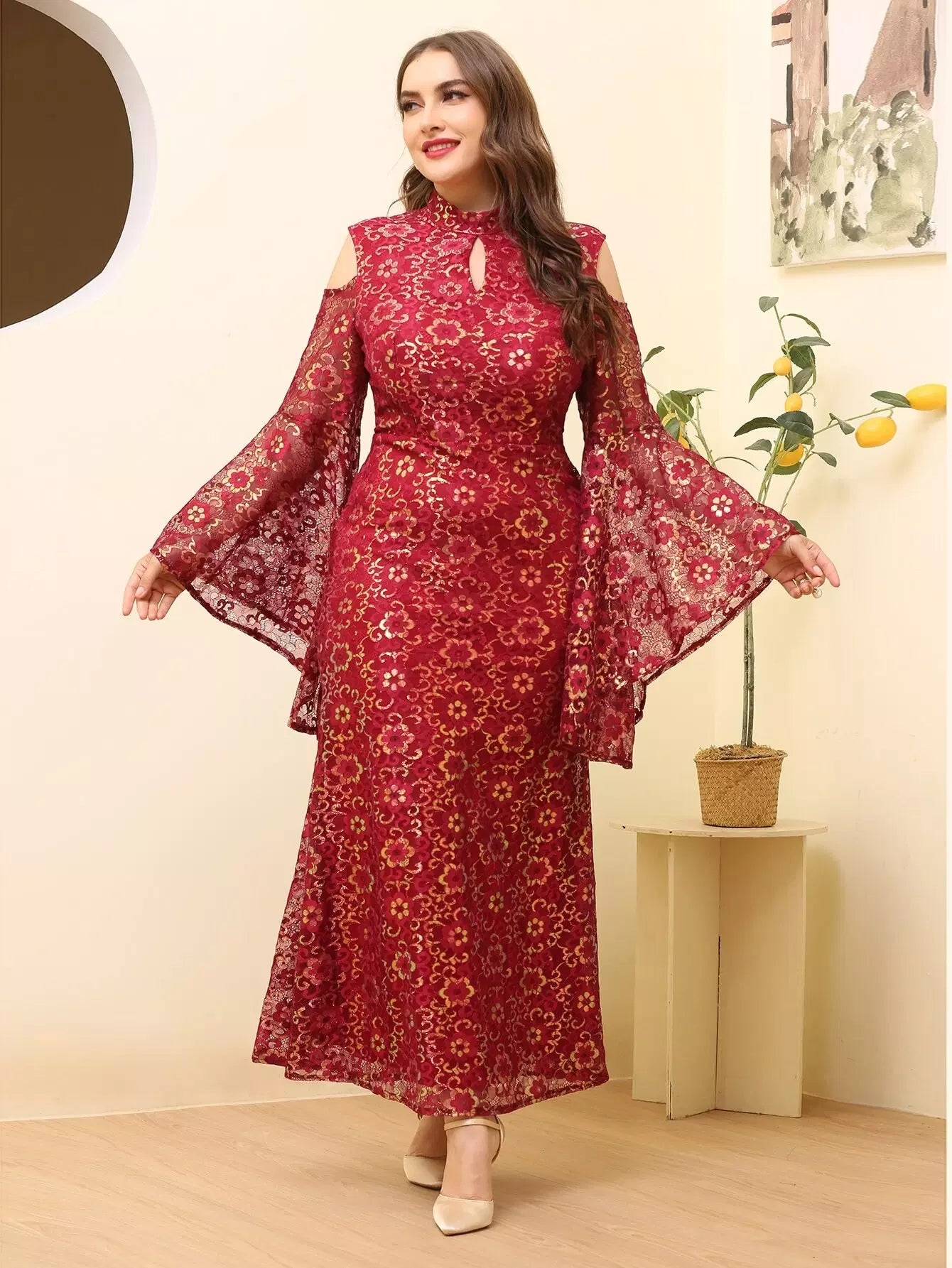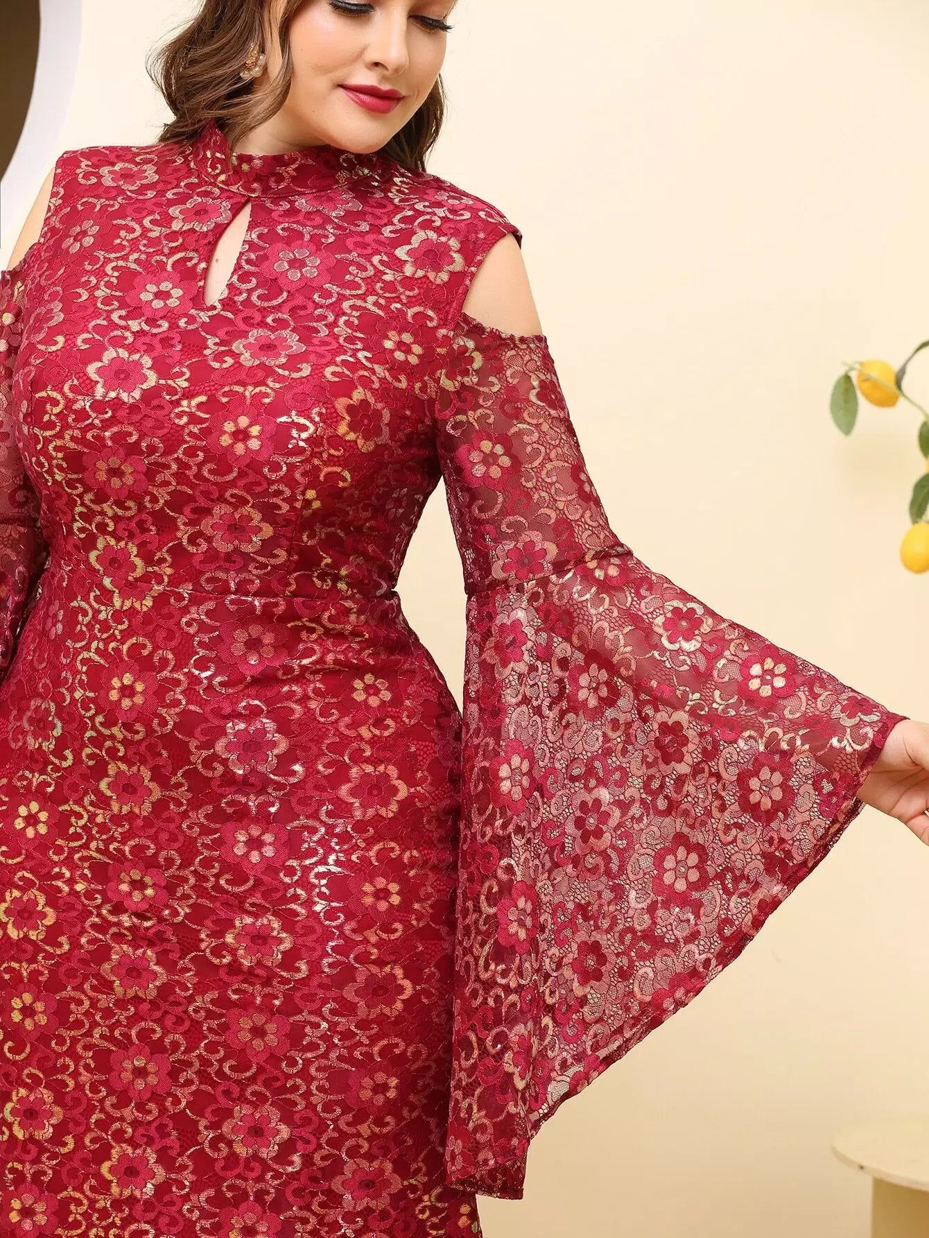 فستان بقصّة أكتاف مقطوعة الزهور على الأكتاف بالكامل