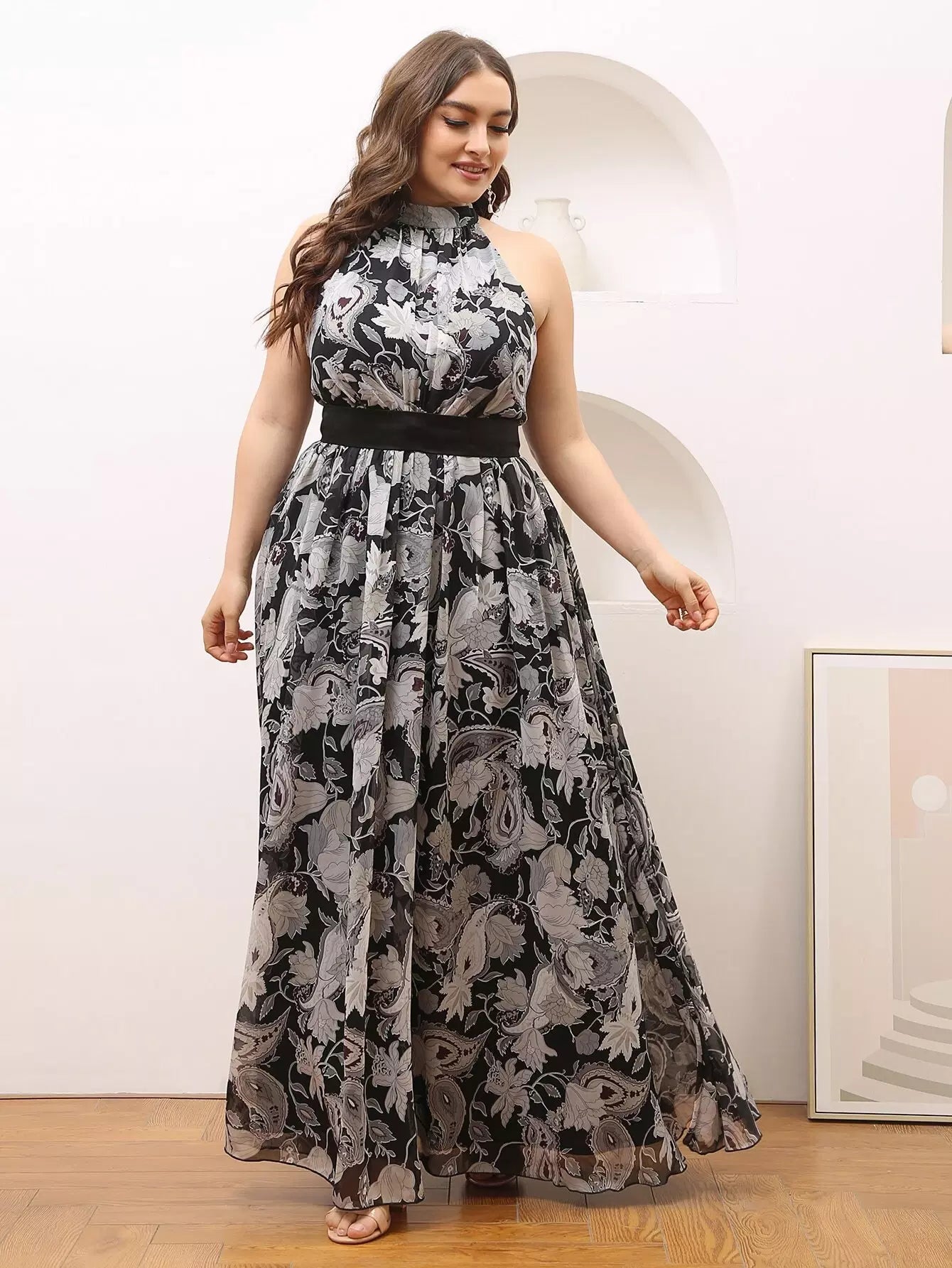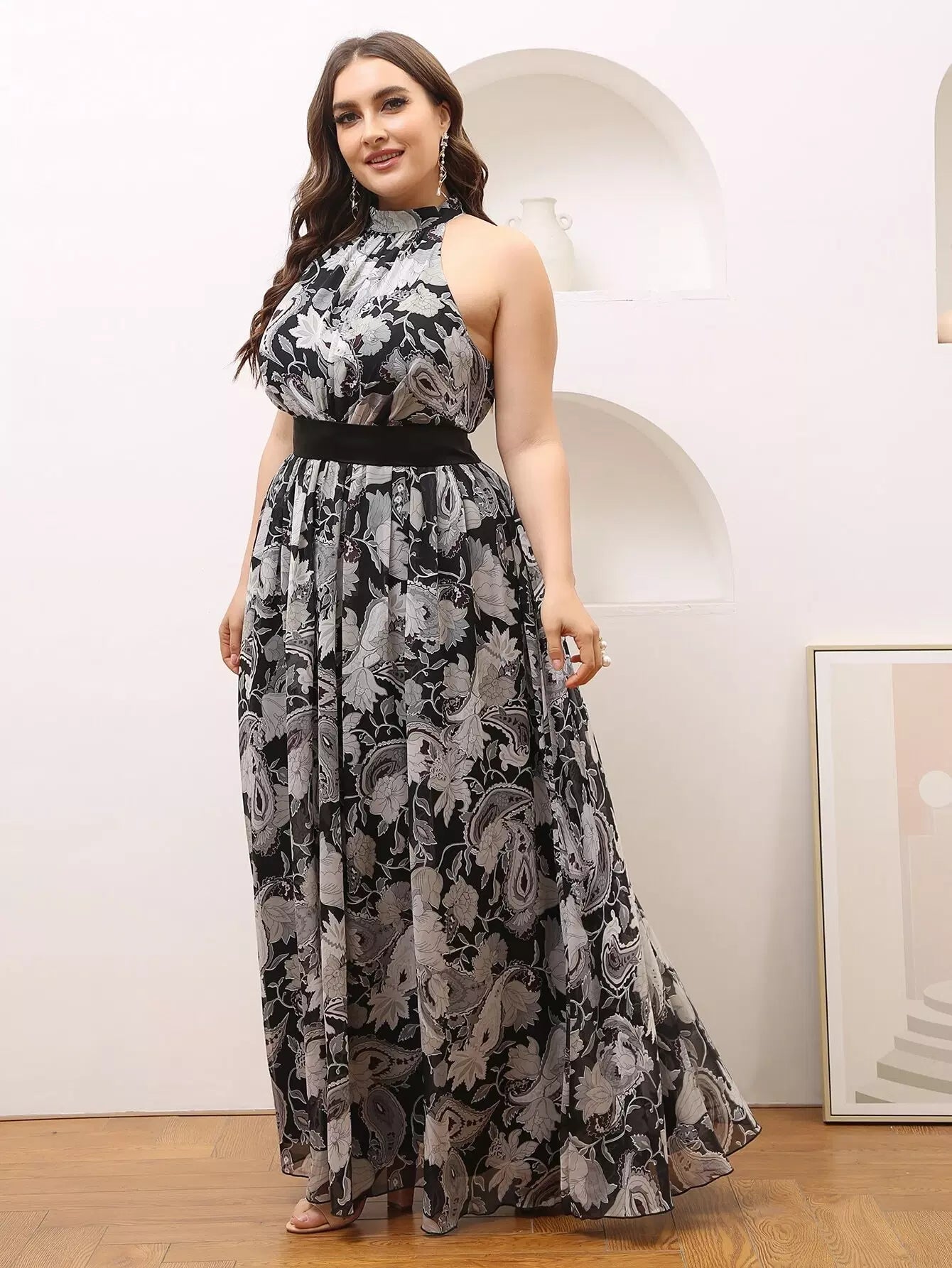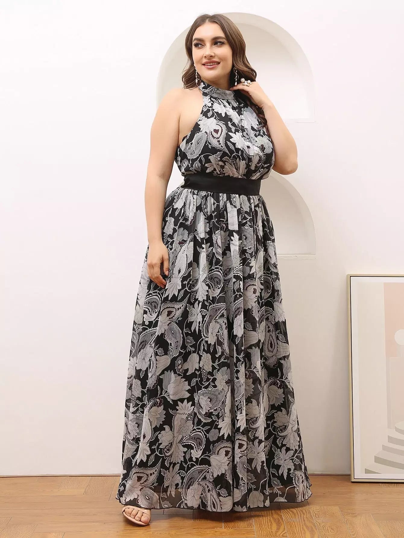 فستان شيفون بطبعة زهور زائد بطبعة زهور على الرسن