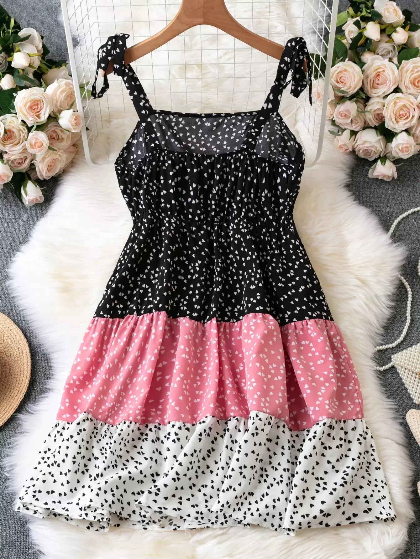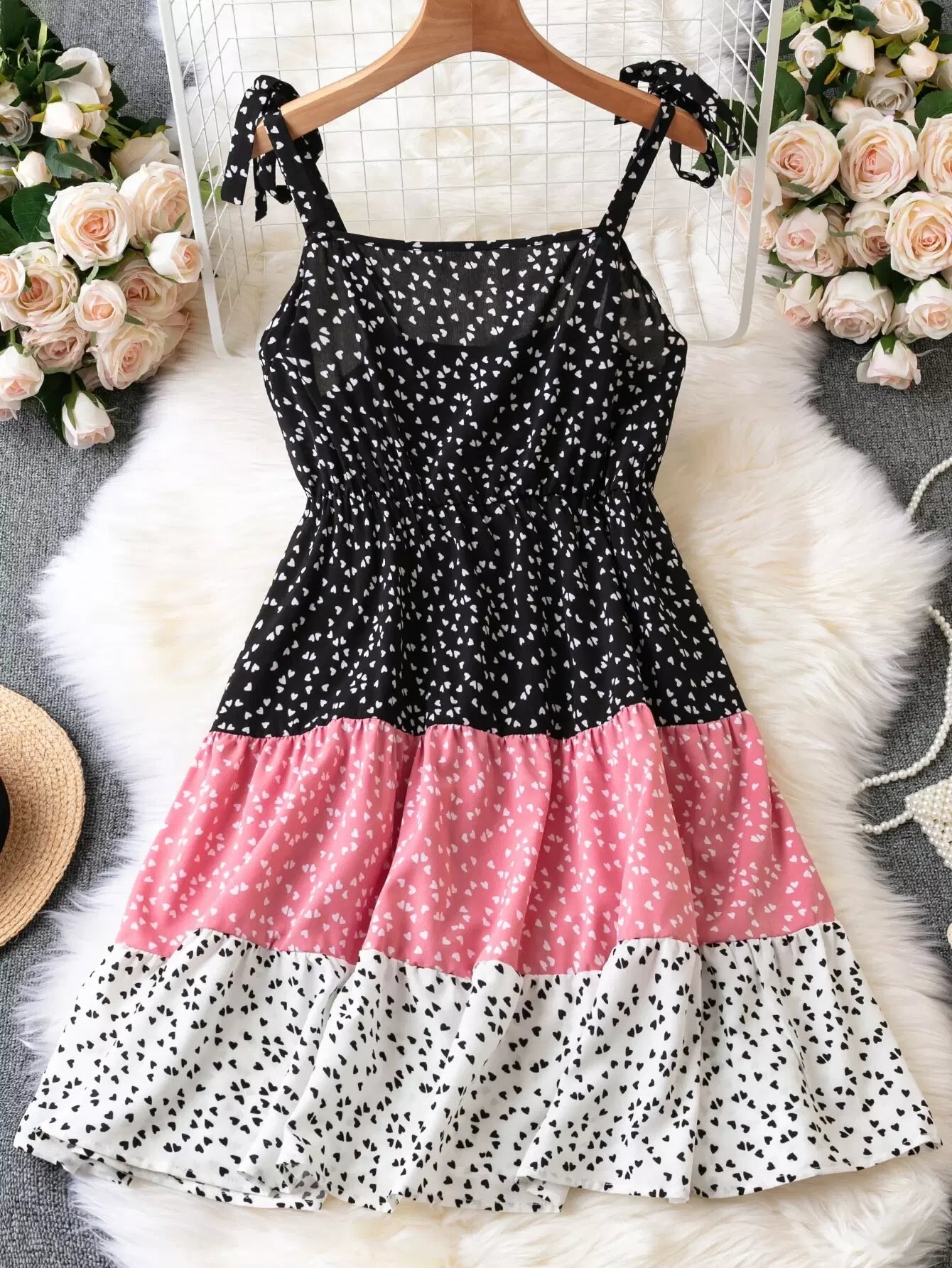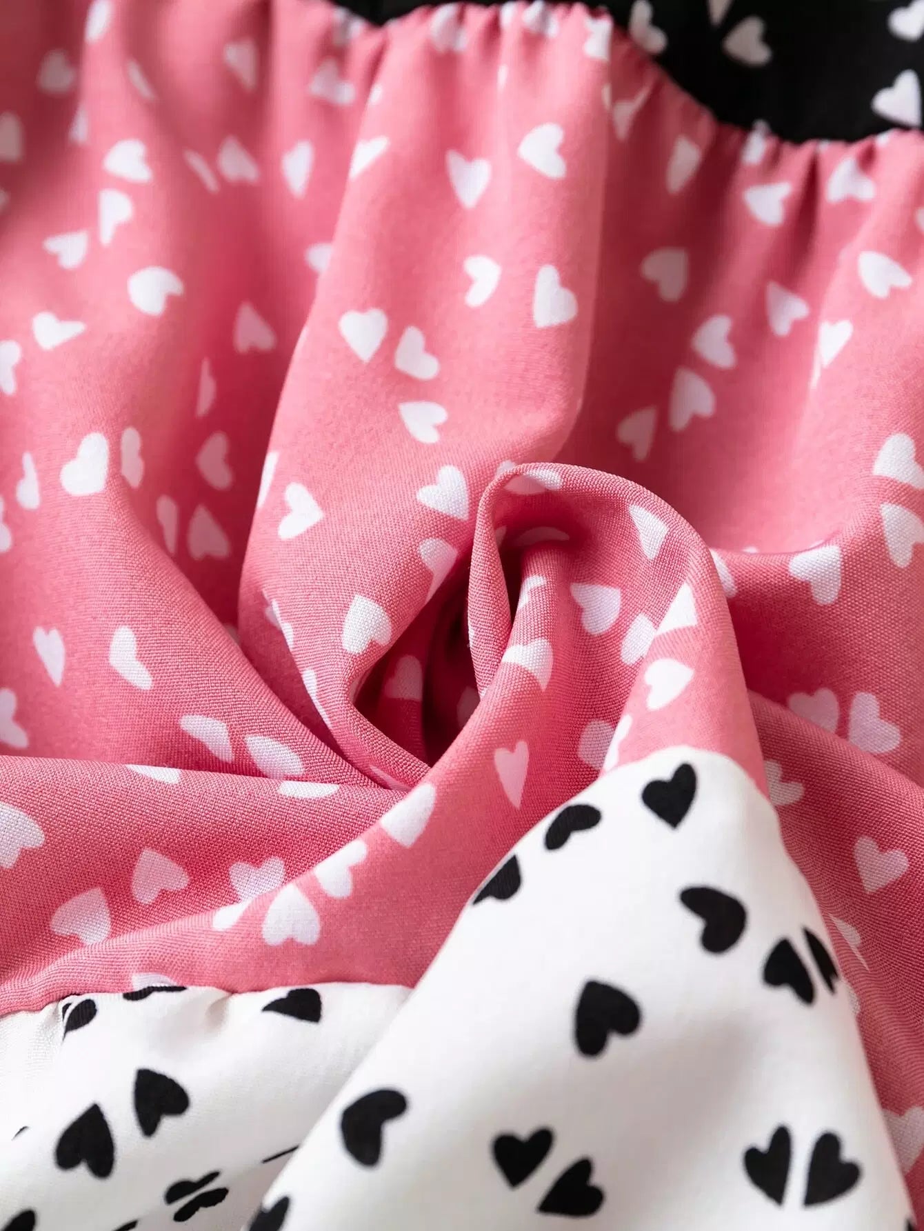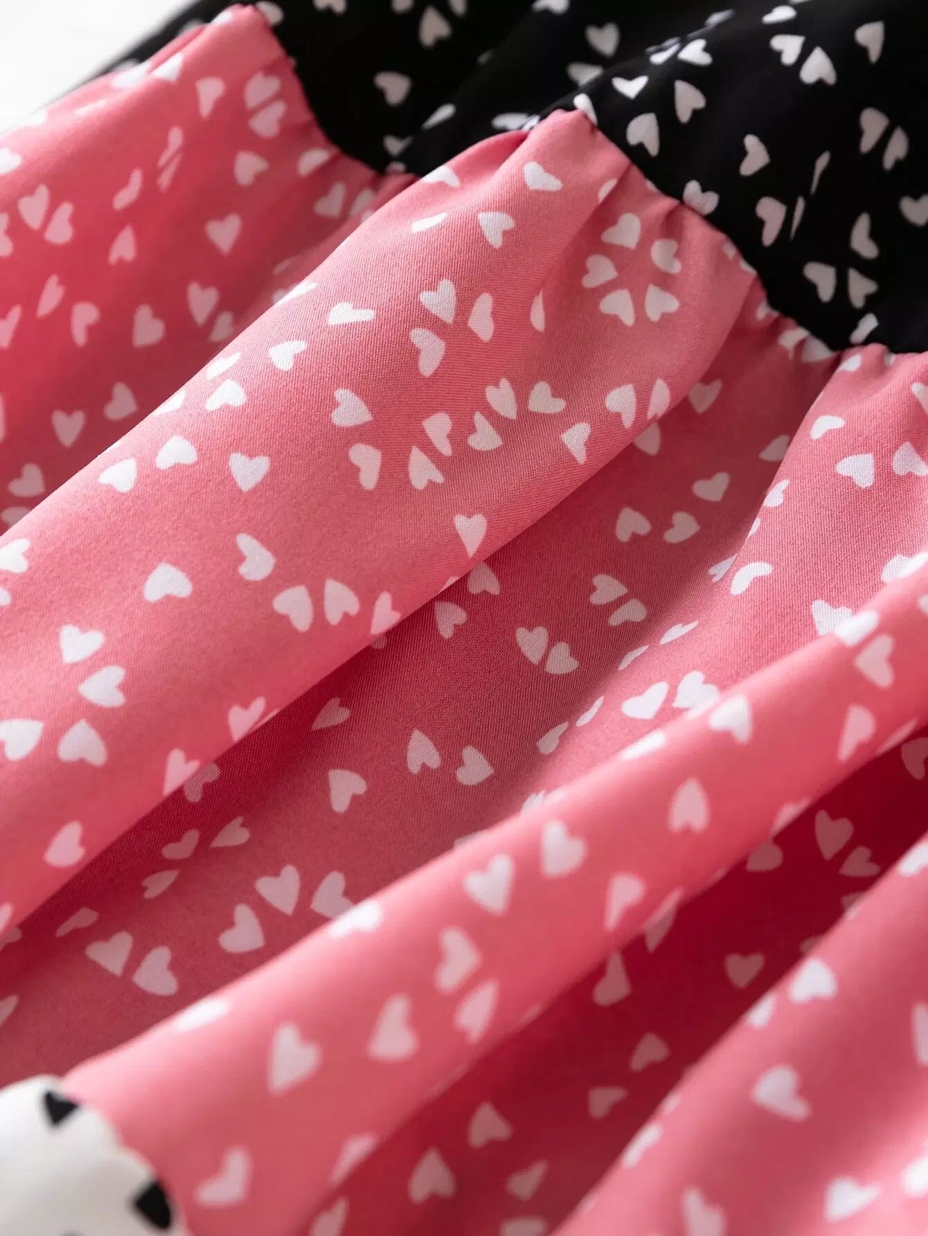 فستان كامي بطبعة قلب مطبوع على شكل زائد بقص وخياطة زائد
