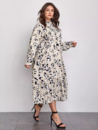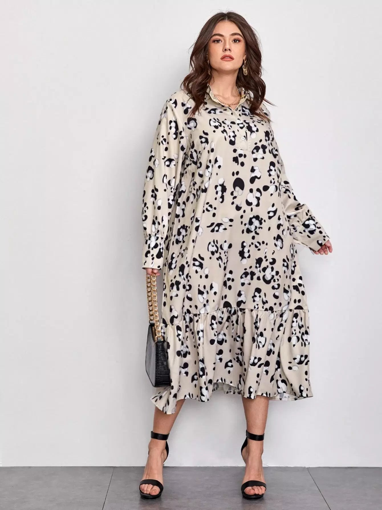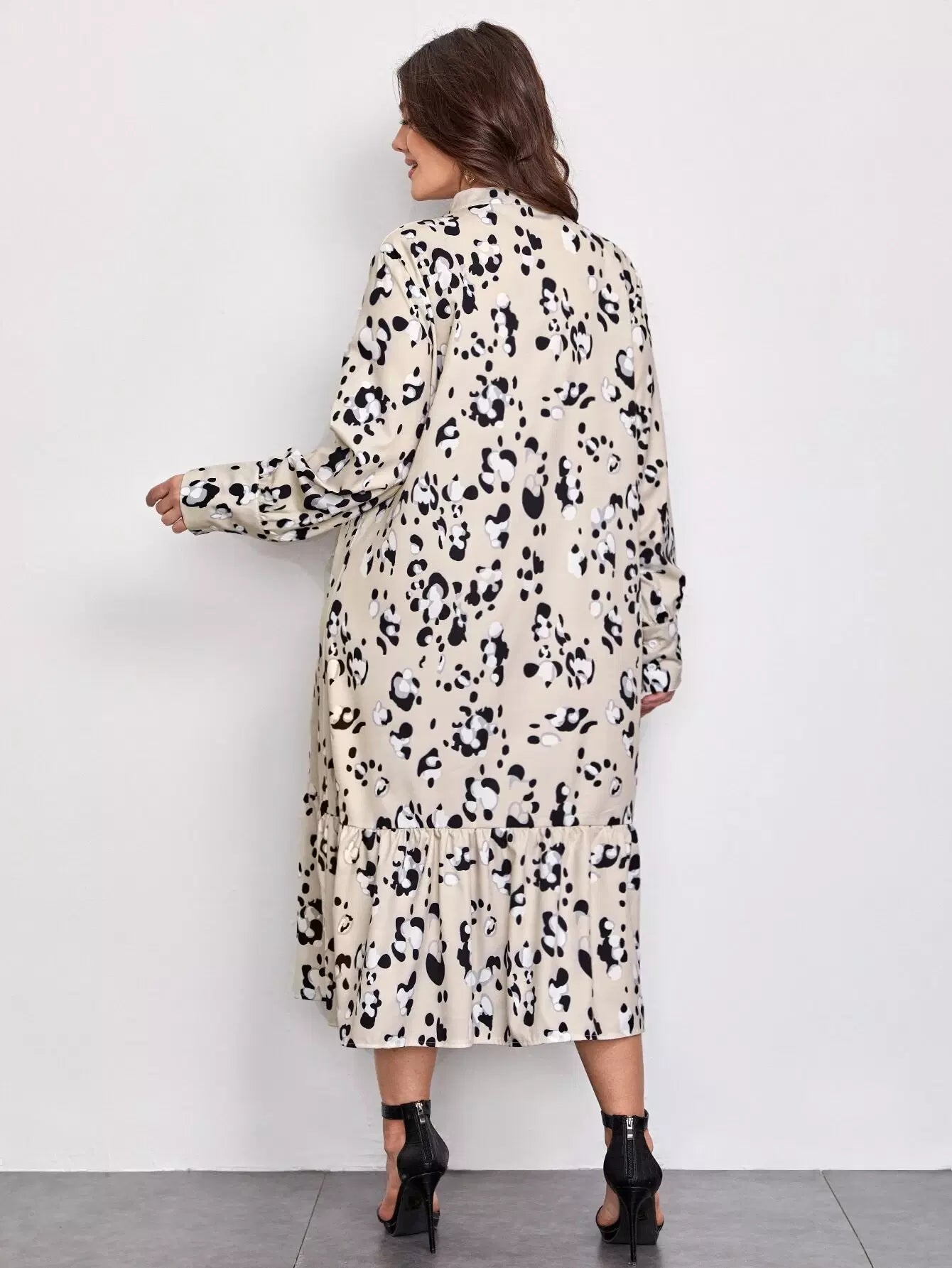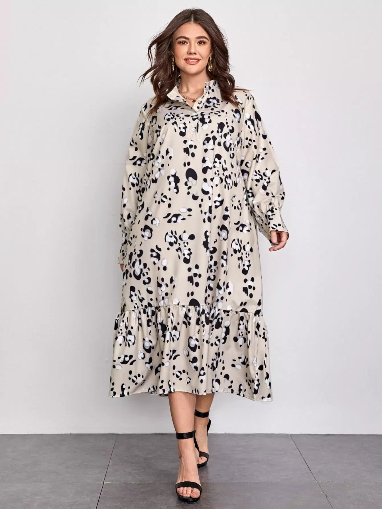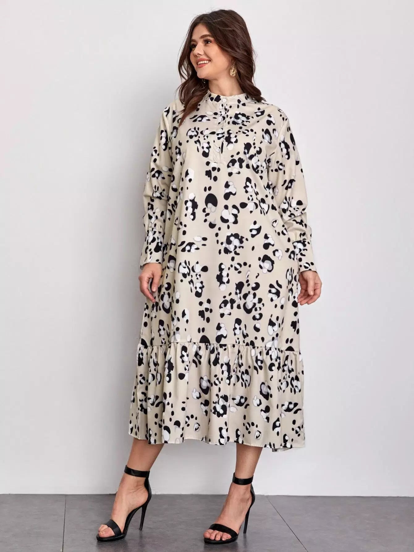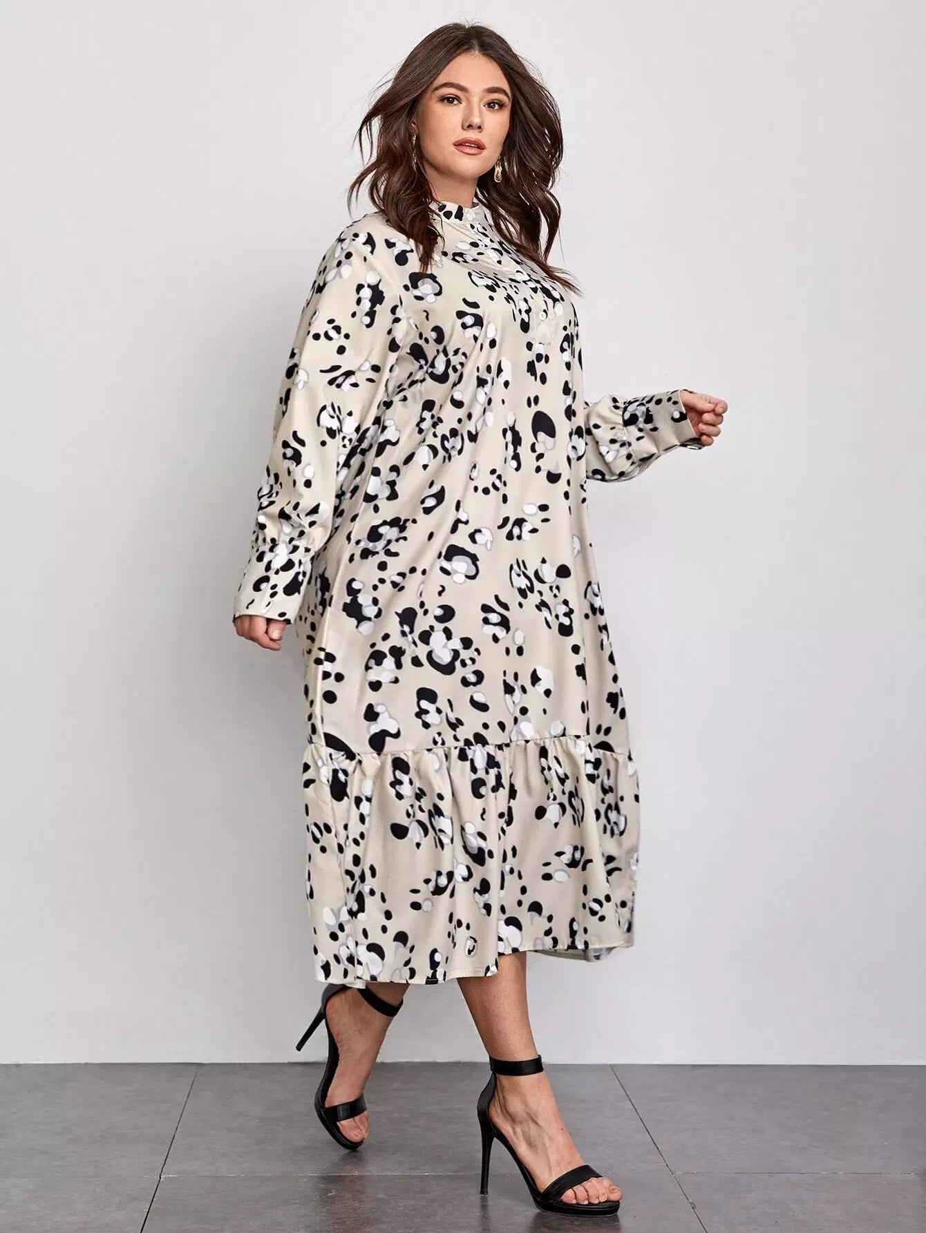 فستان بطبعة كشكش بحواف مكشكشة فوق الكشكش
