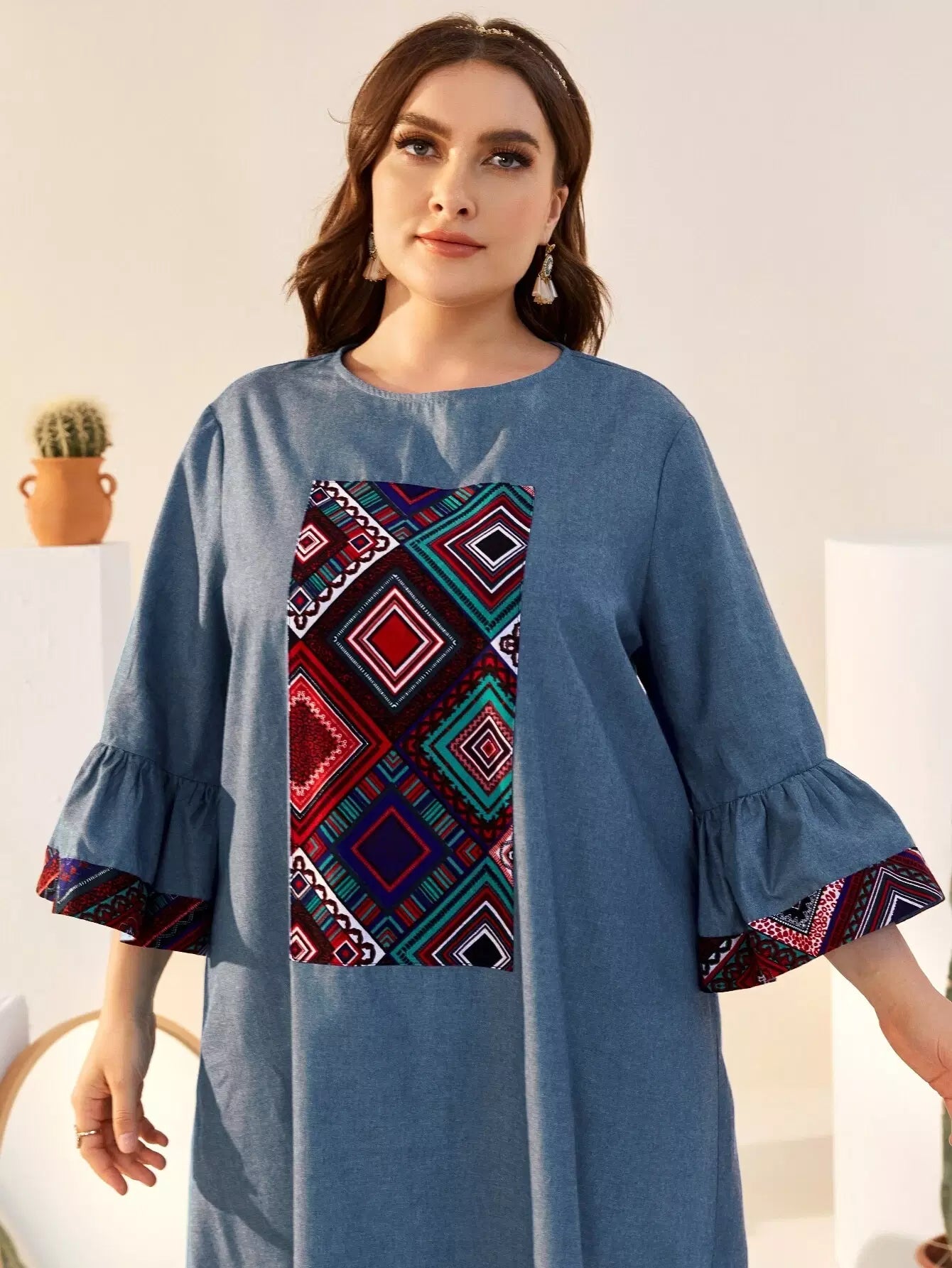 فستان بأكمام بلا أكمام جرس بلس جيو بانيل