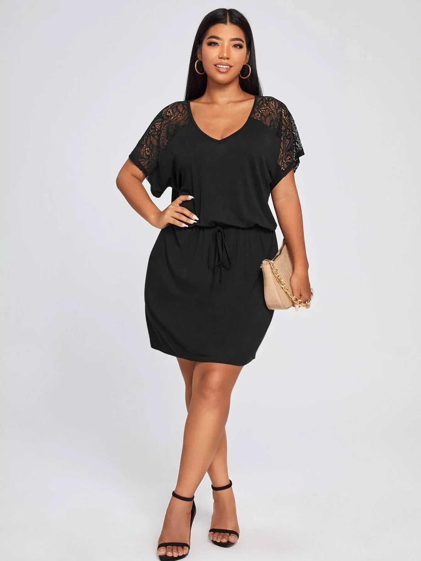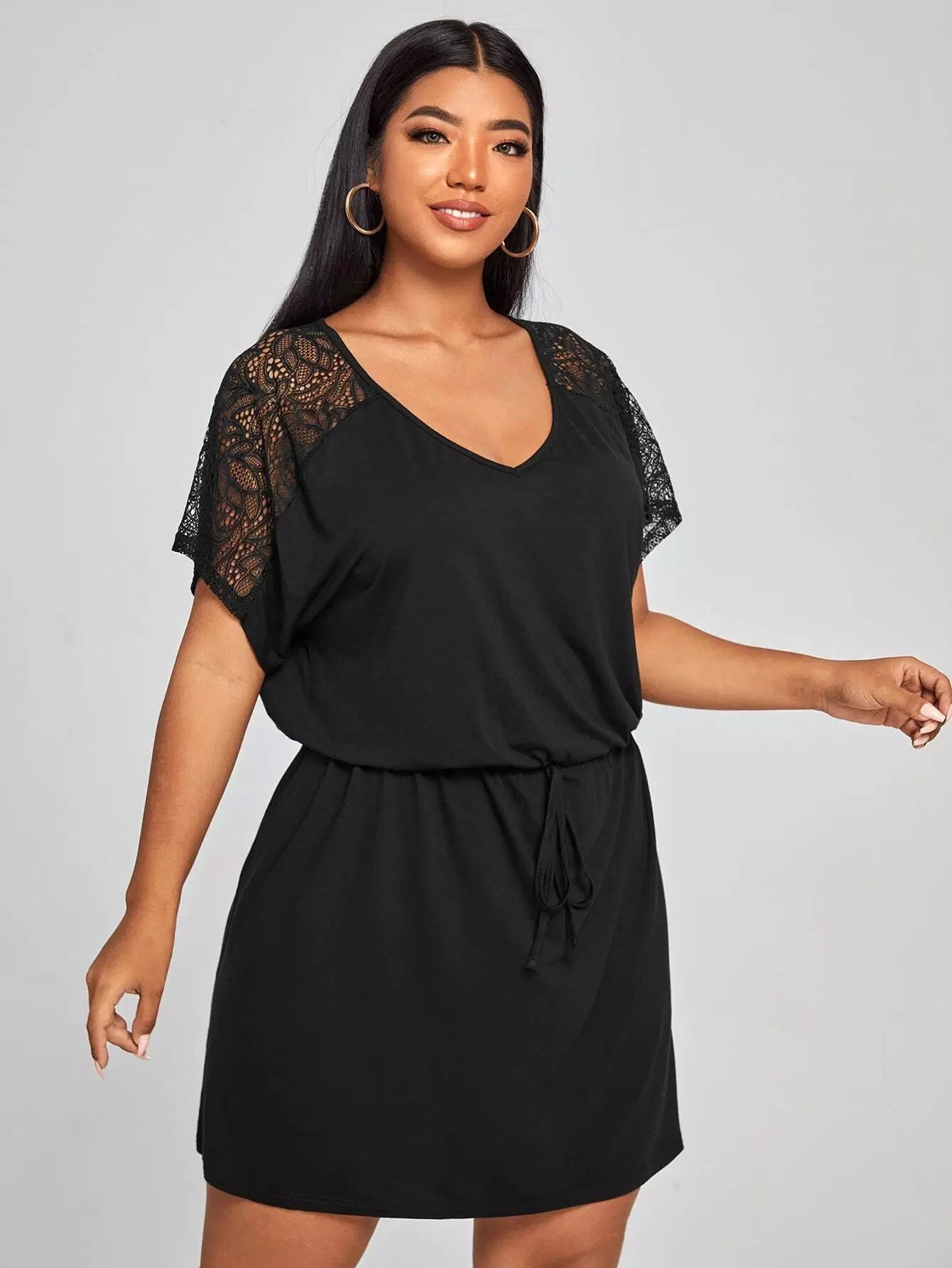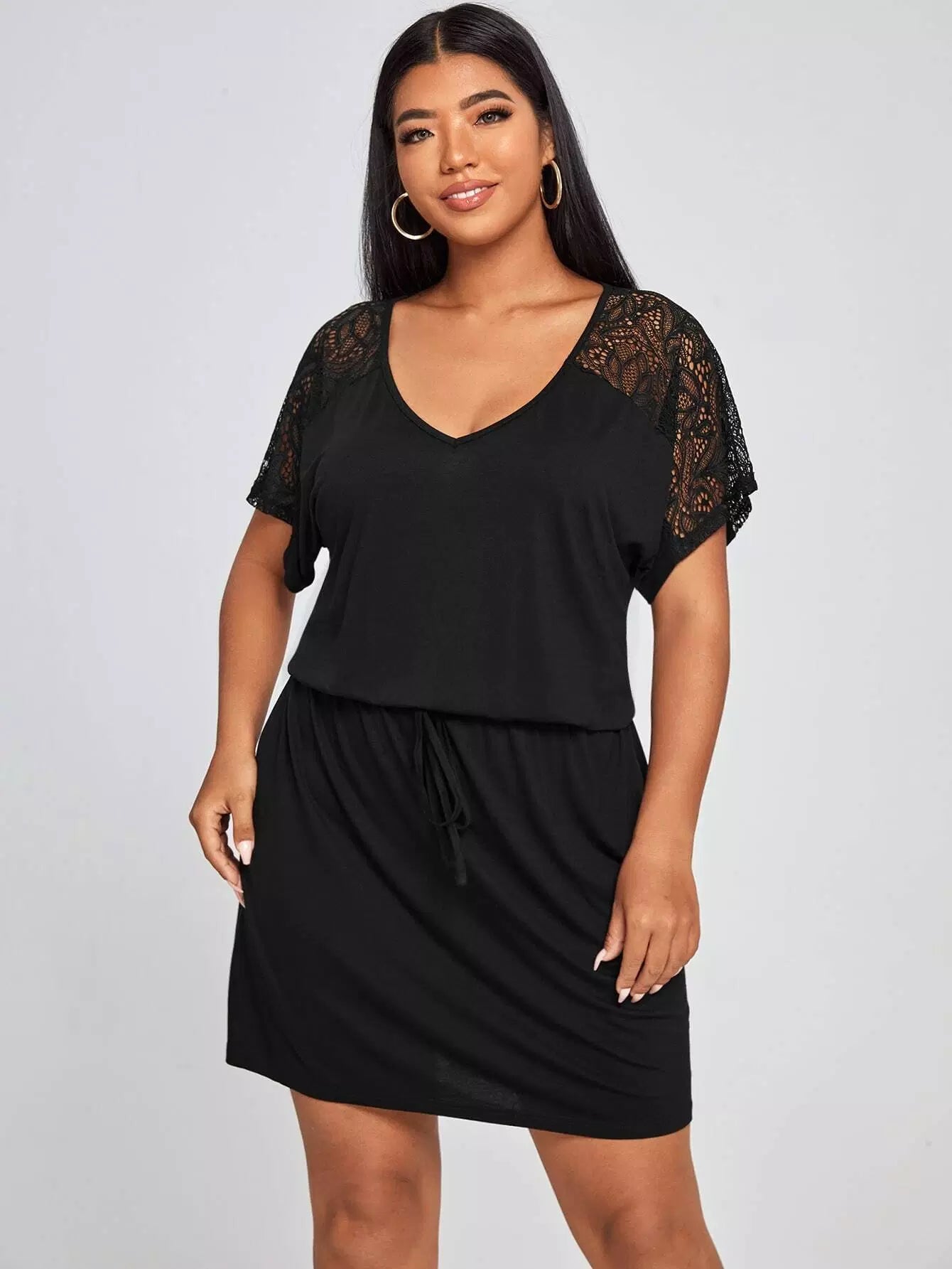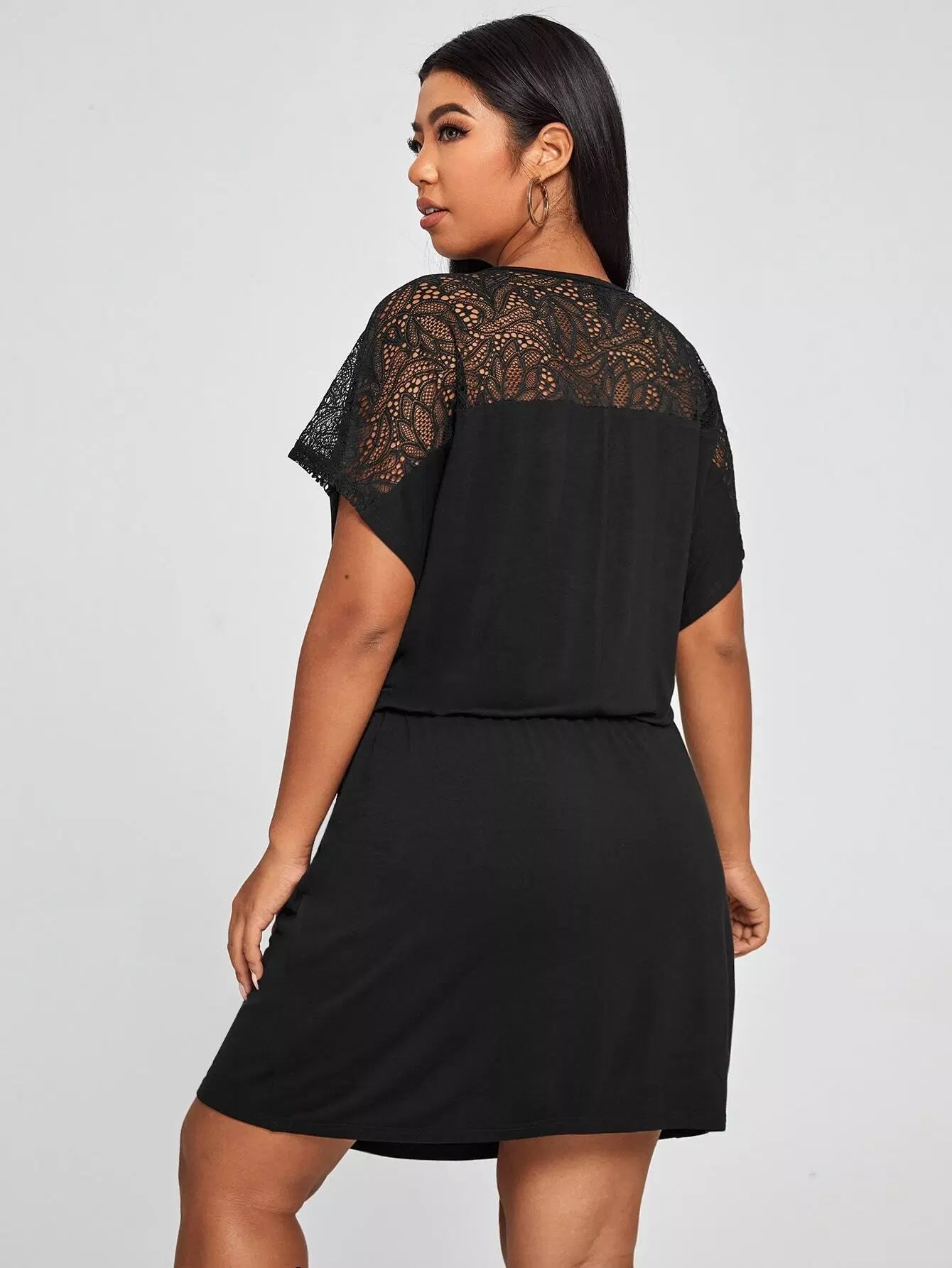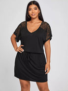 فستان بأكمام دانتيل بلون مغاير بلون مغاير