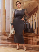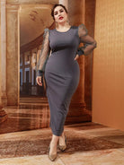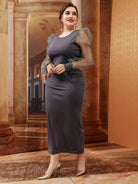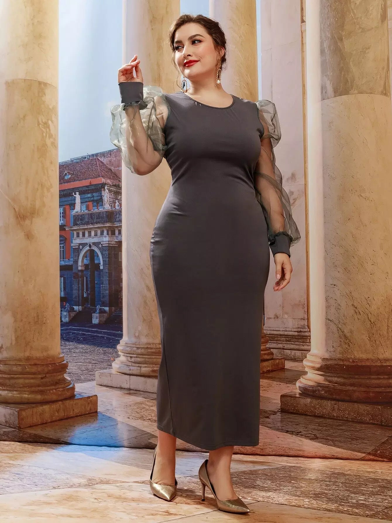 فستان بوديكون بأكمام شبكية منفوشة بلون مغاير بلون مغاير