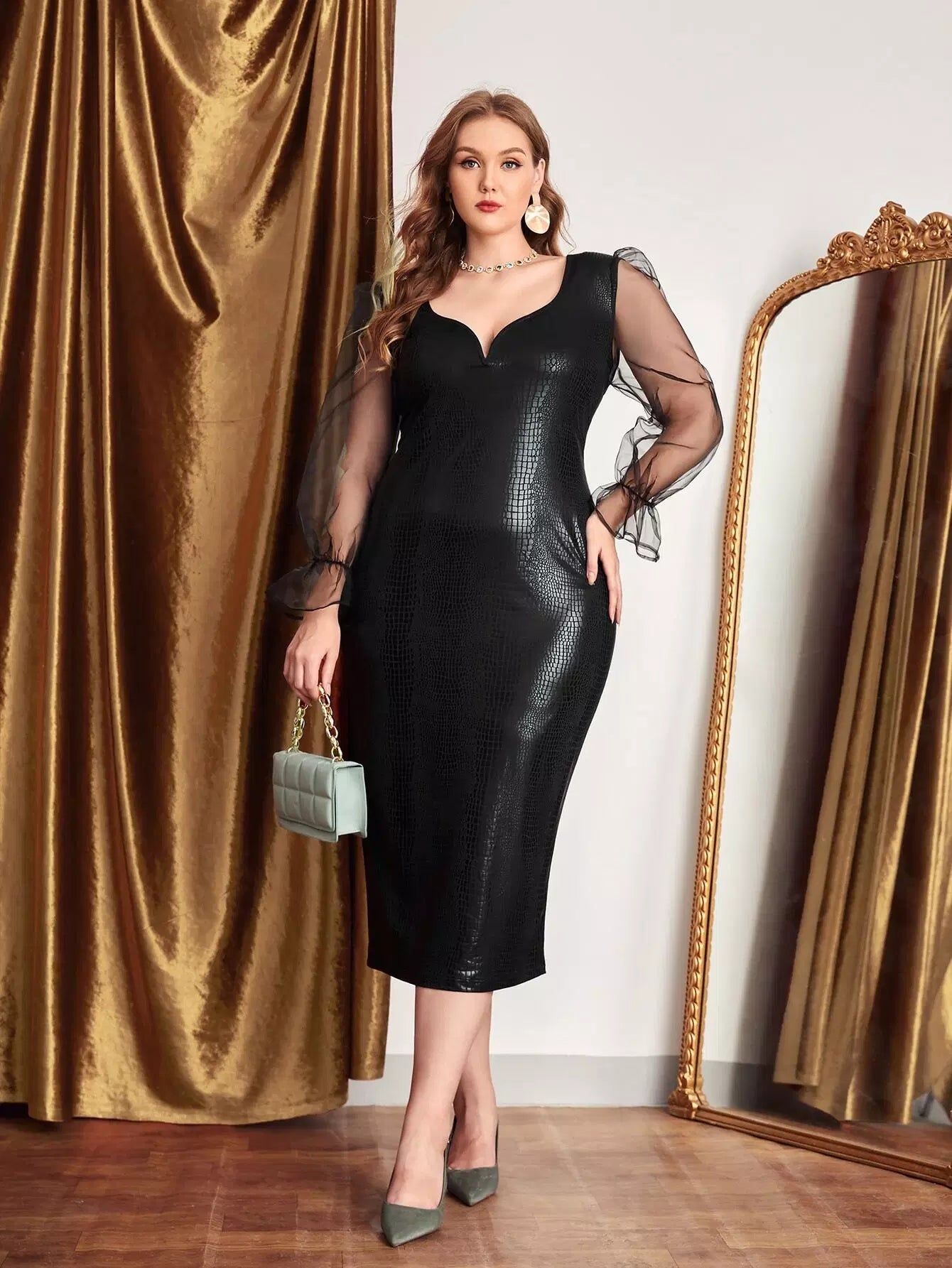 فستان بأكمام شبكية بلون مغاير بأكمام تمساح بلون مغاير