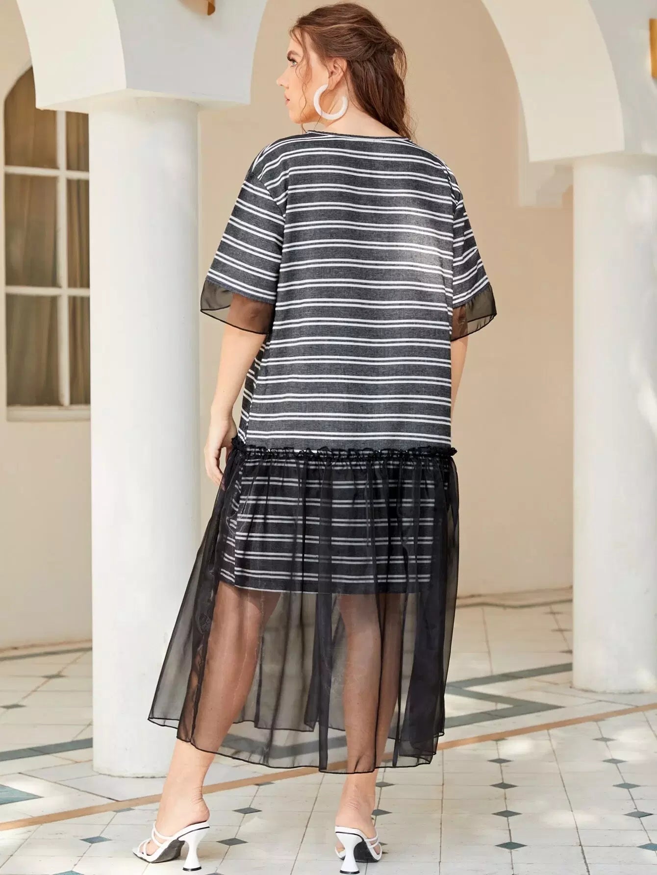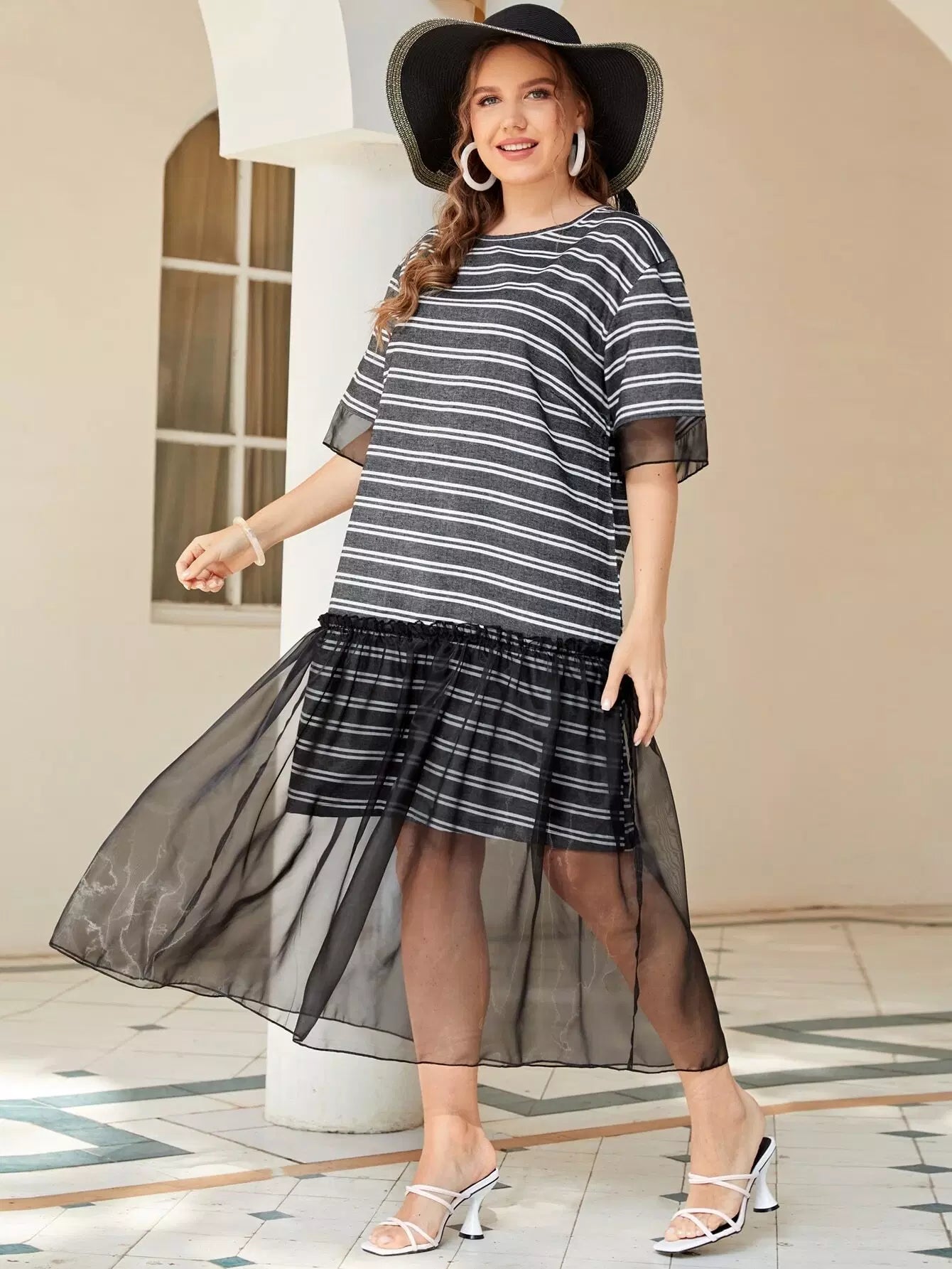 فستان مخطط شبكي مخطط بلون بلون مغاير