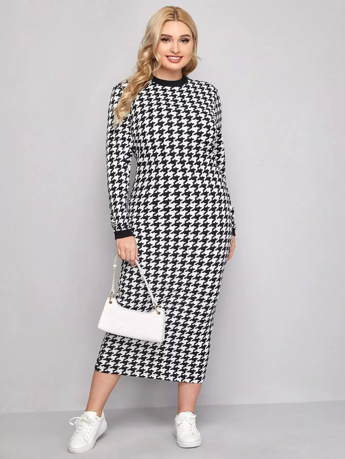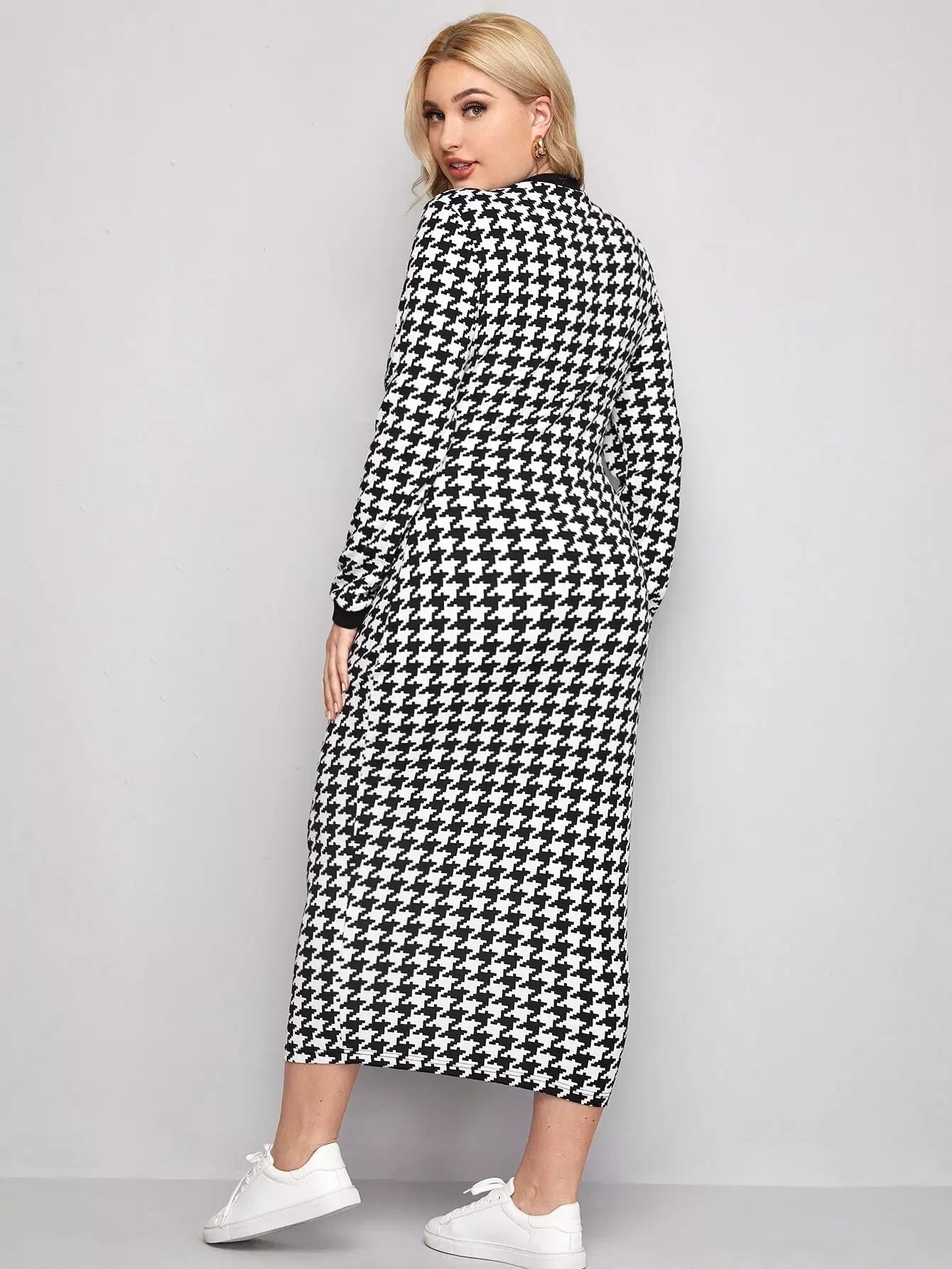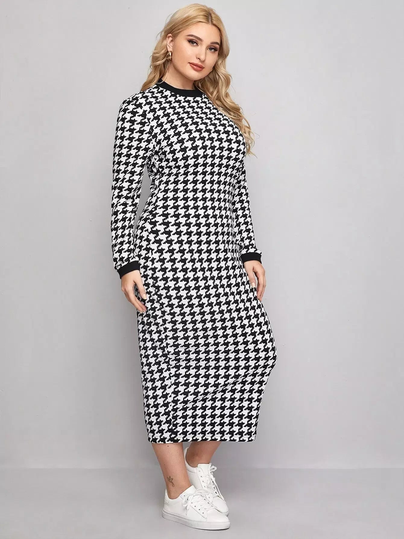 فستان ذو حواف بلون مغاير بلون مغاير