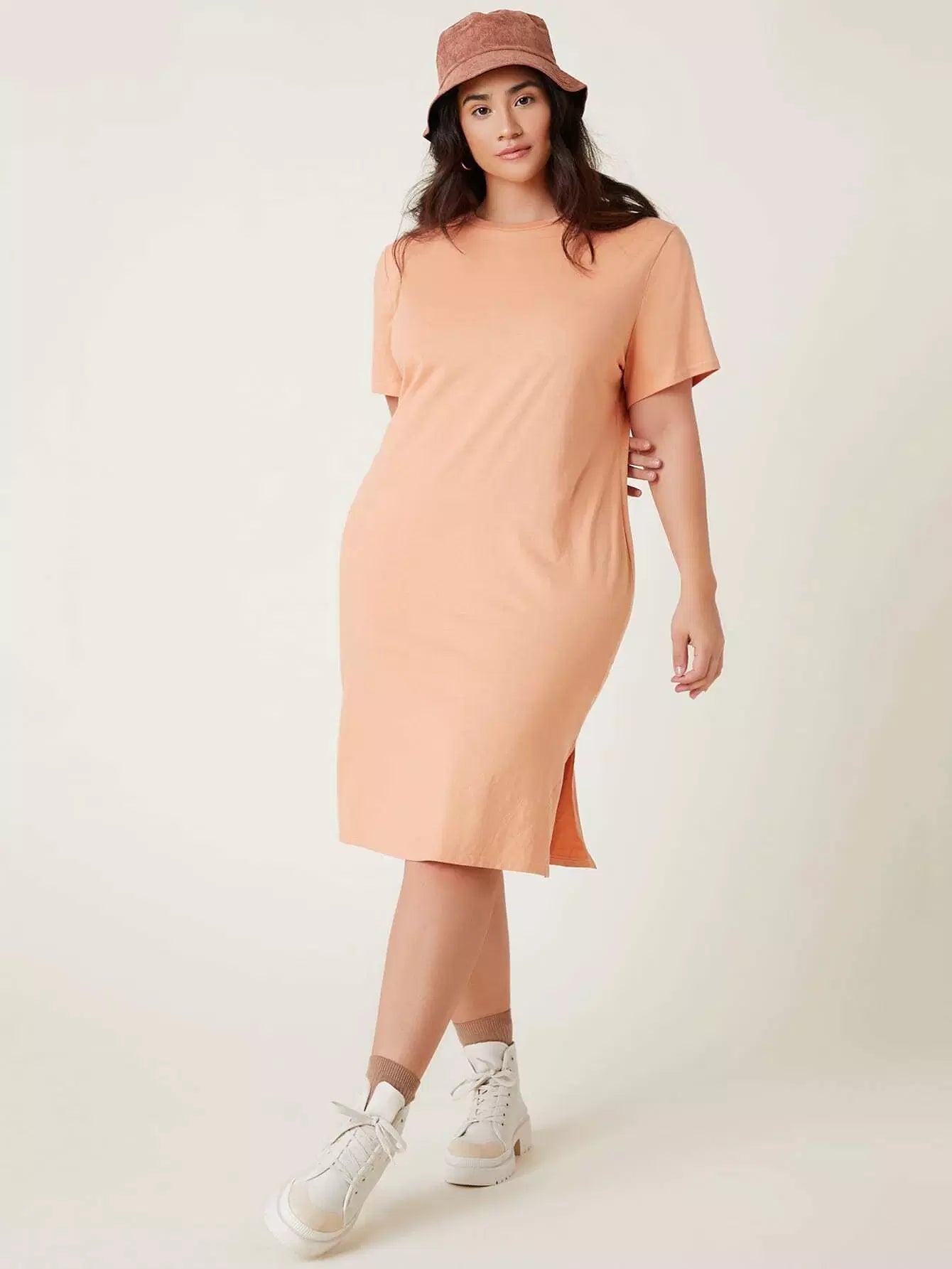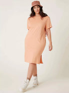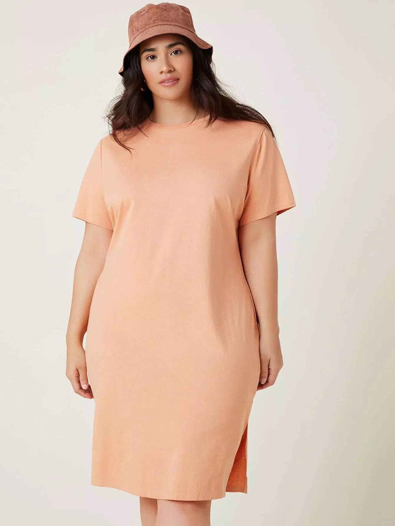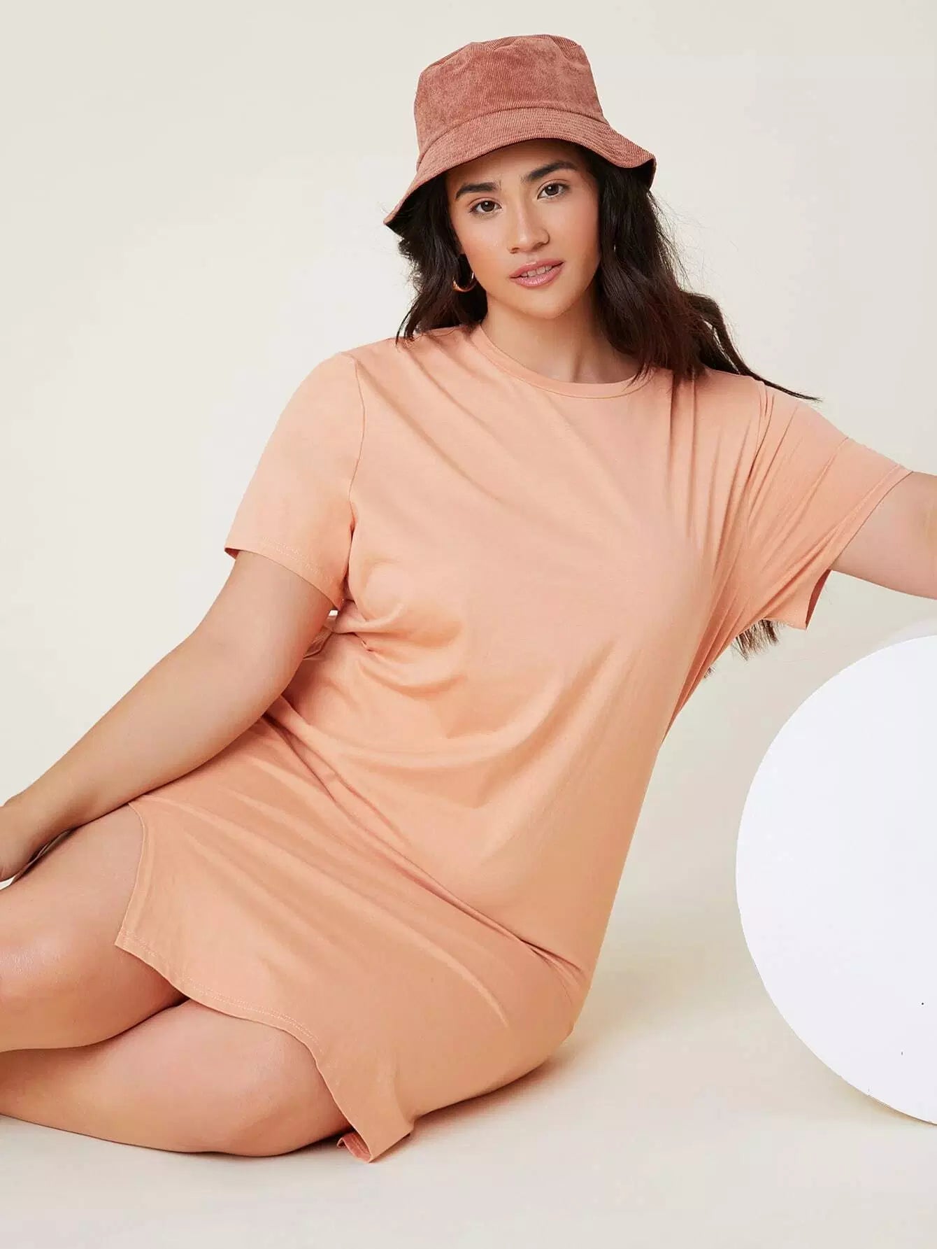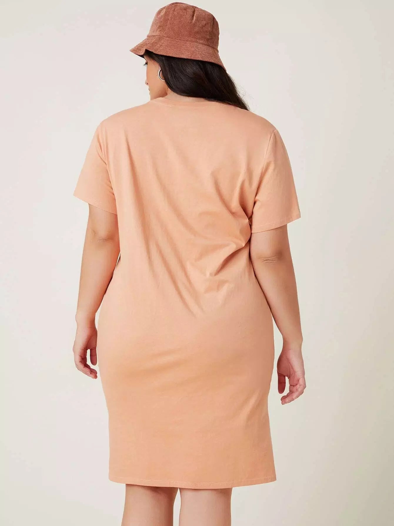 فستان قميص قطني سادة بحافة منقسمة زائد