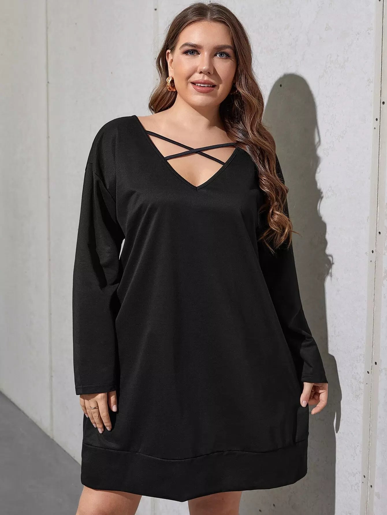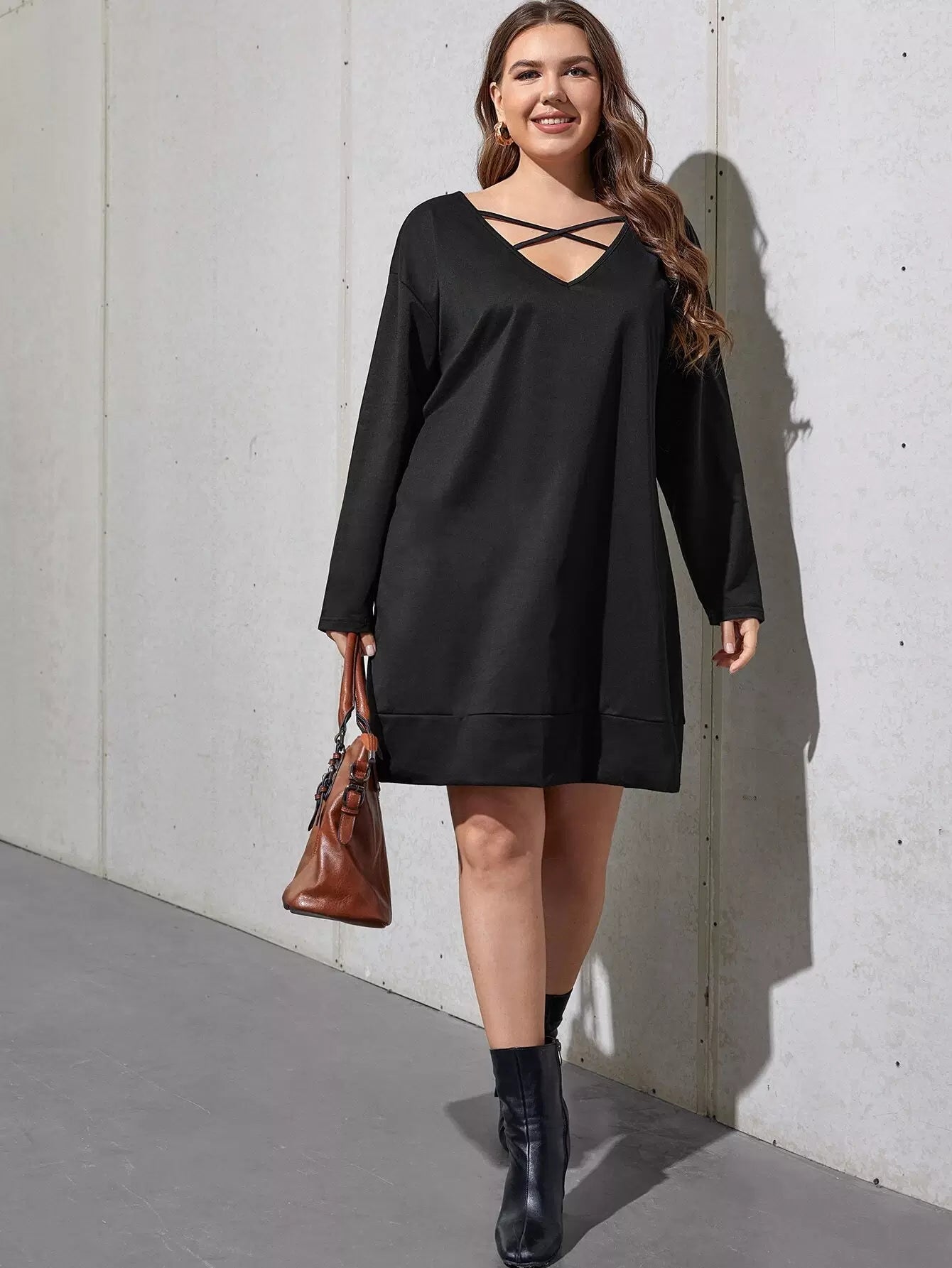 فستان بدون أكتاف منسدل الأكتاف متقاطع زائد