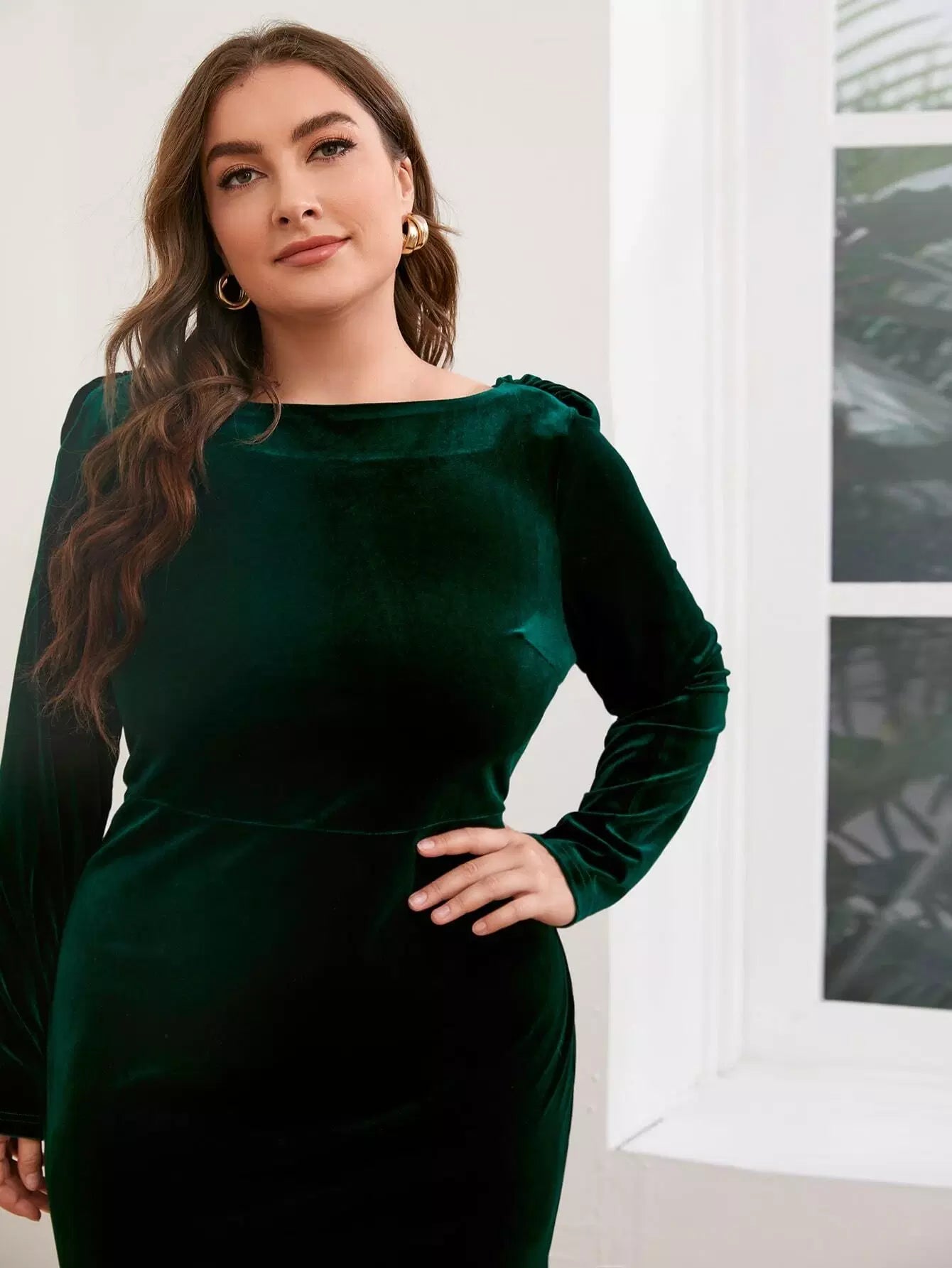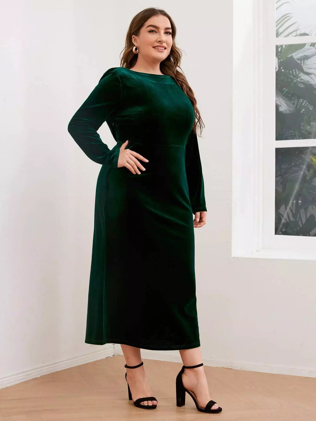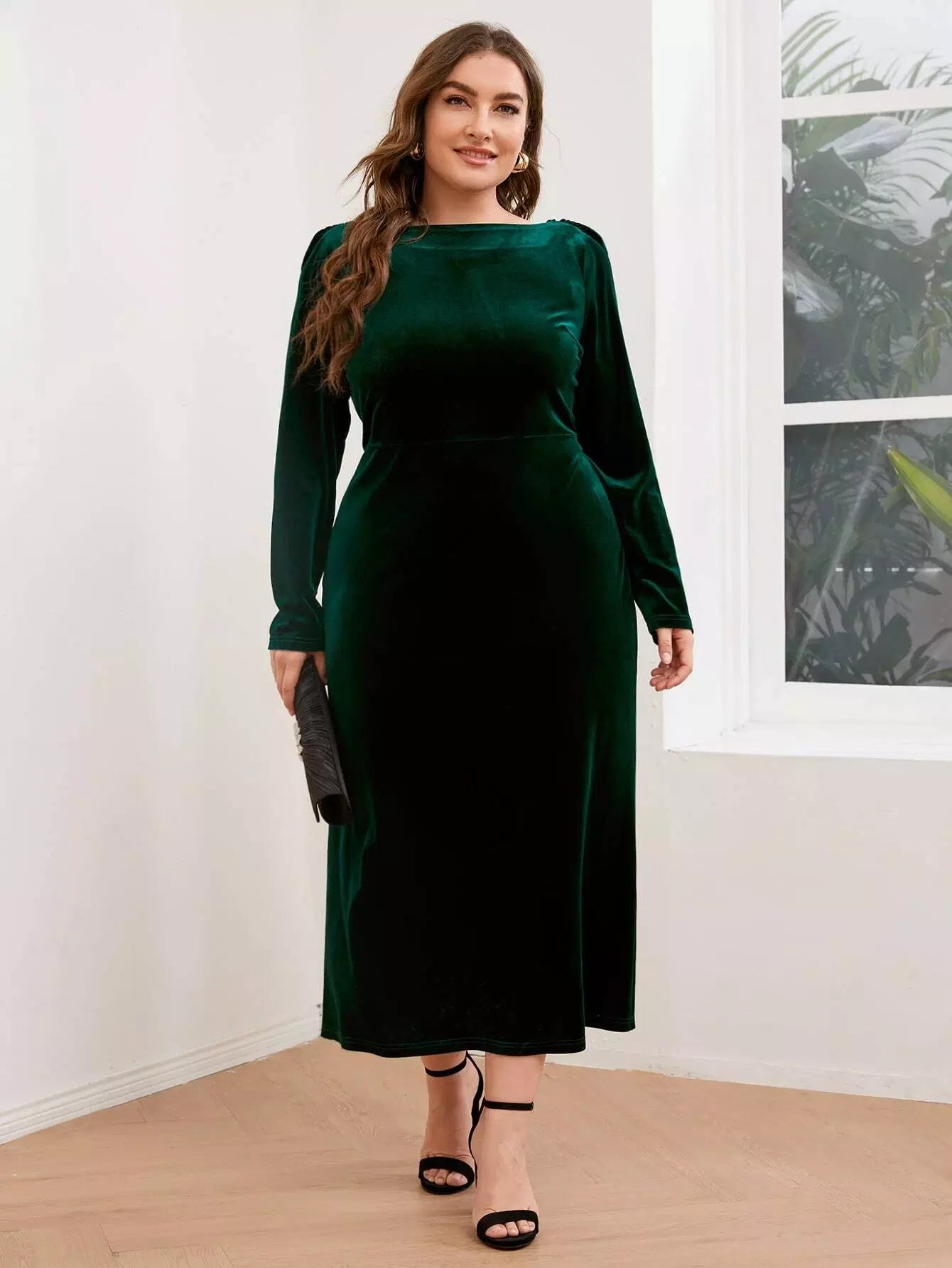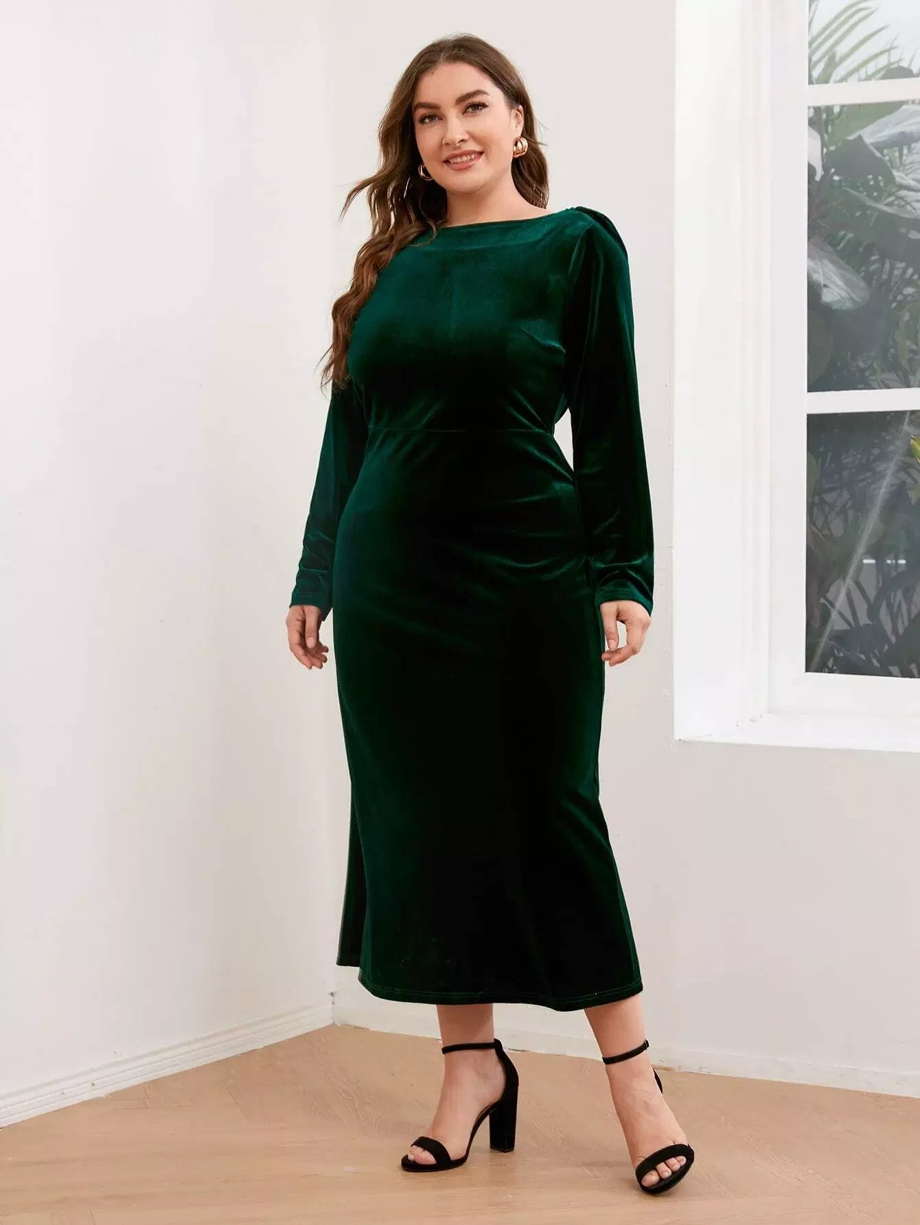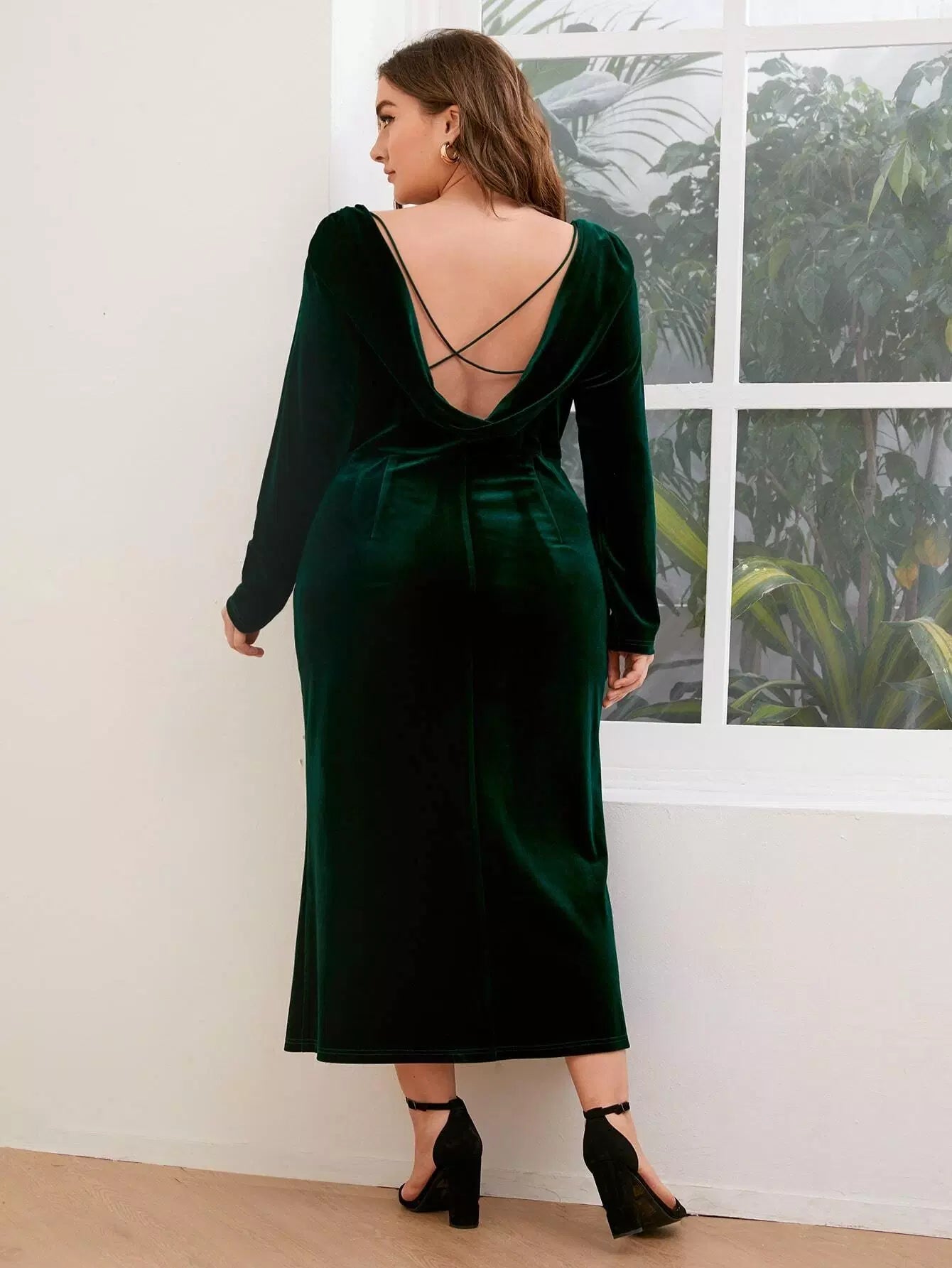 فستان مخملي عاري الظهر بلا أكمام متقاطع زائد