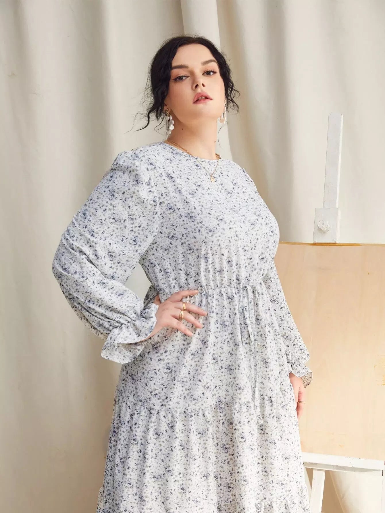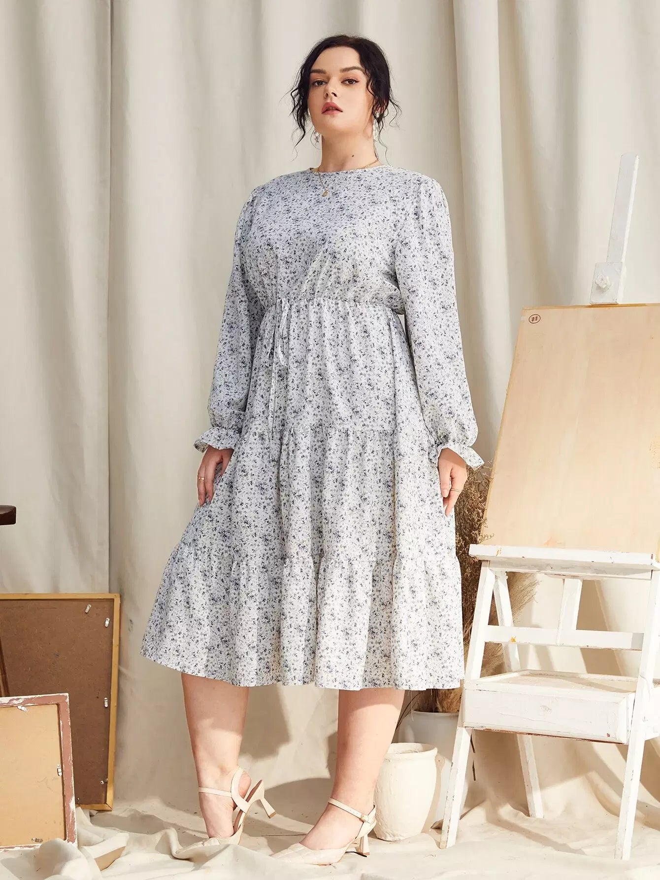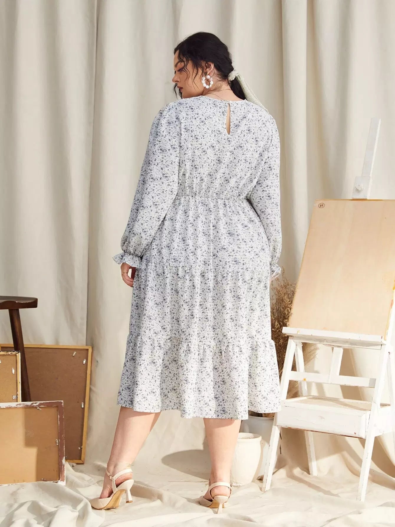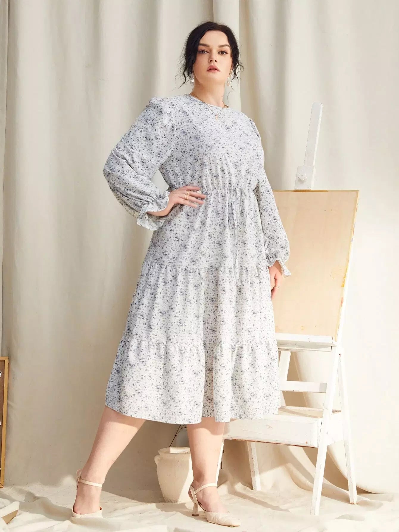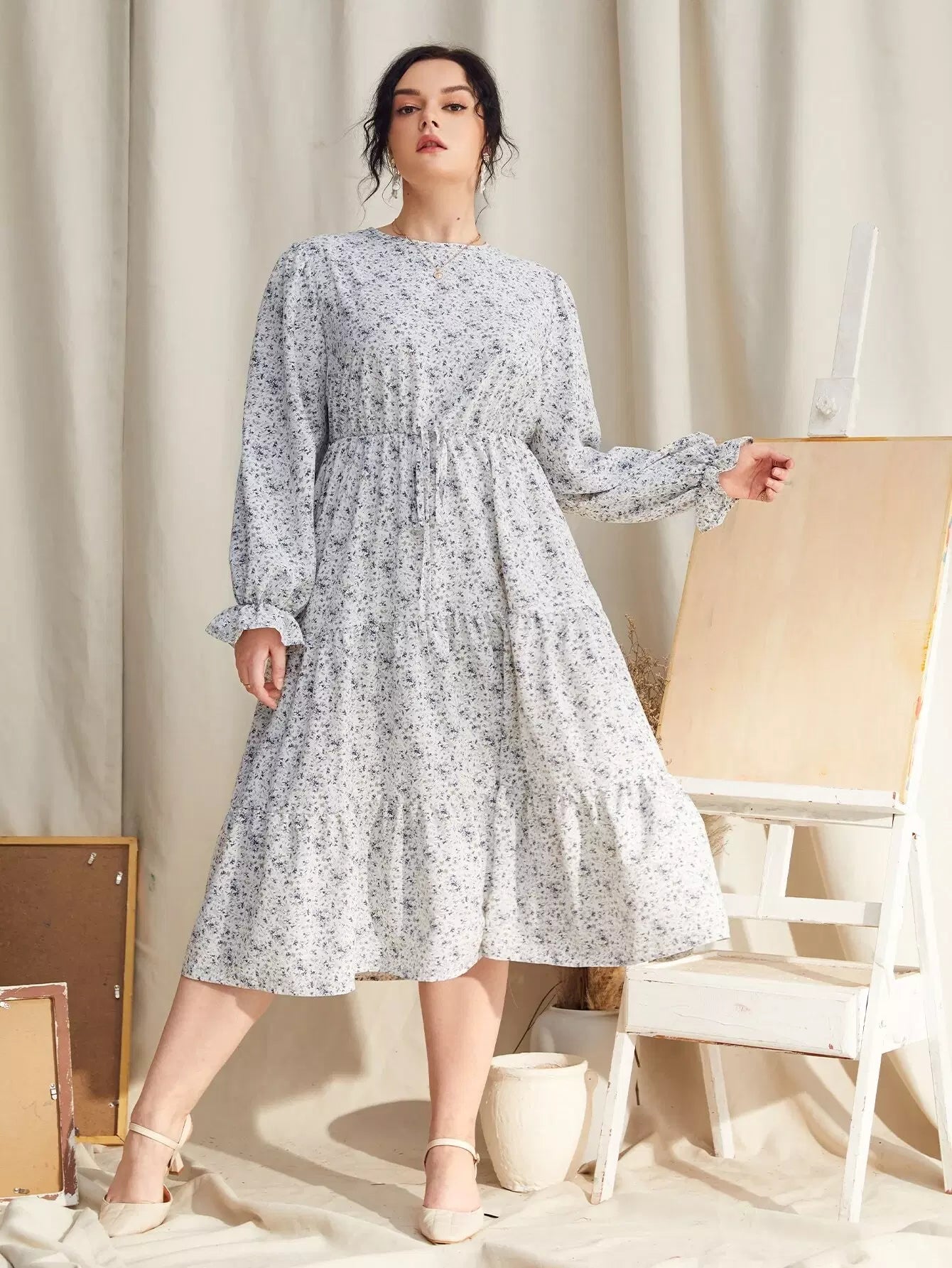 فستان بأكمام كشكش على شكل حرف A بأكمام زهرية مكشكشة على شكل حرف A