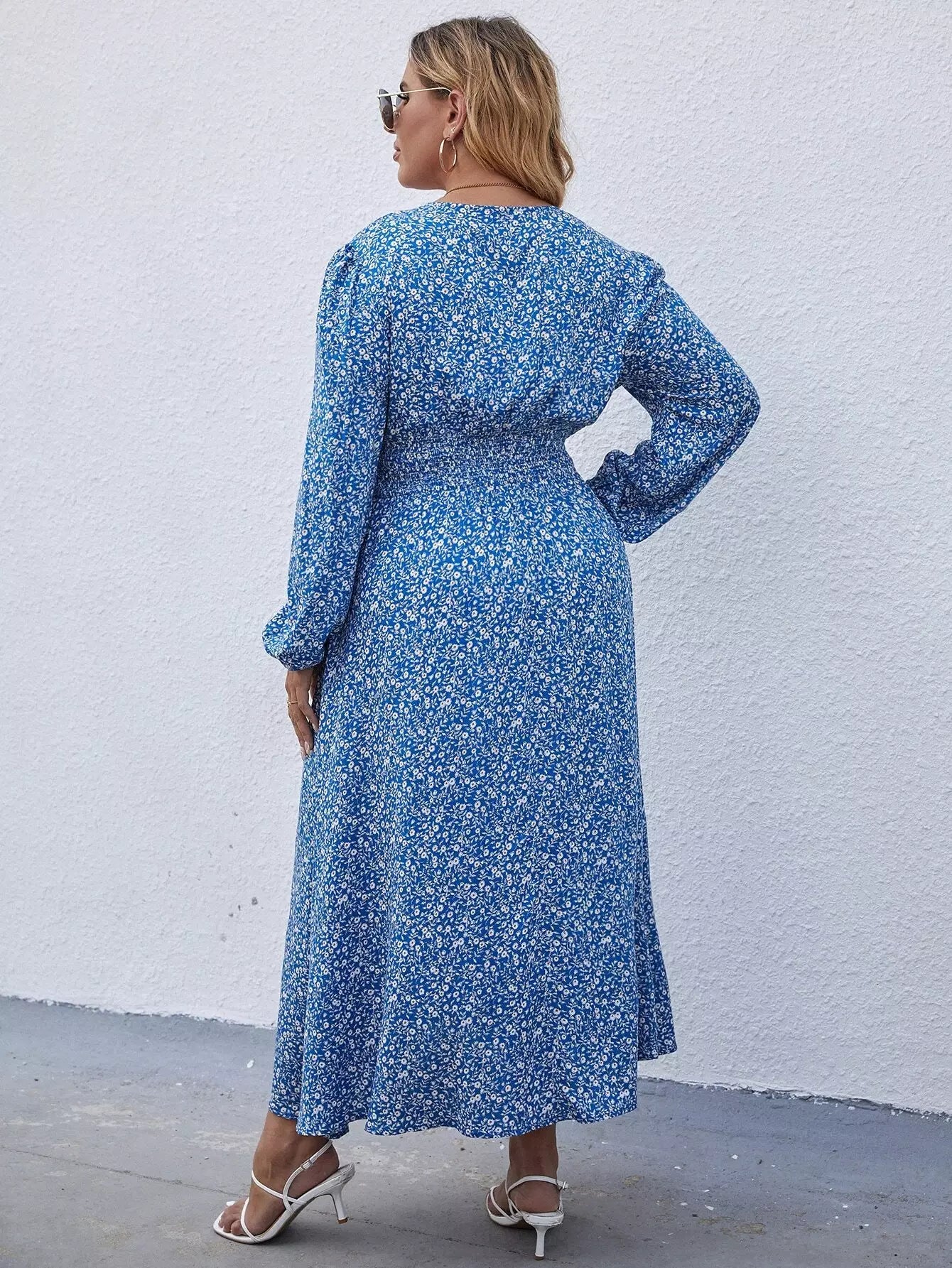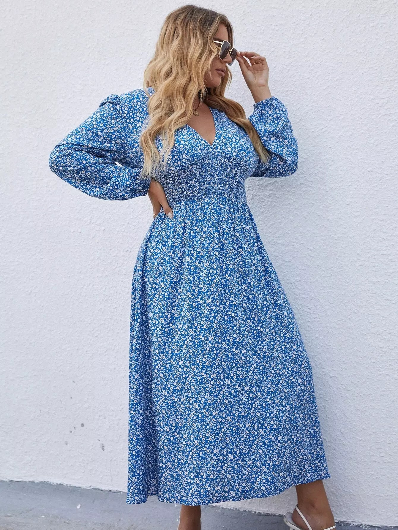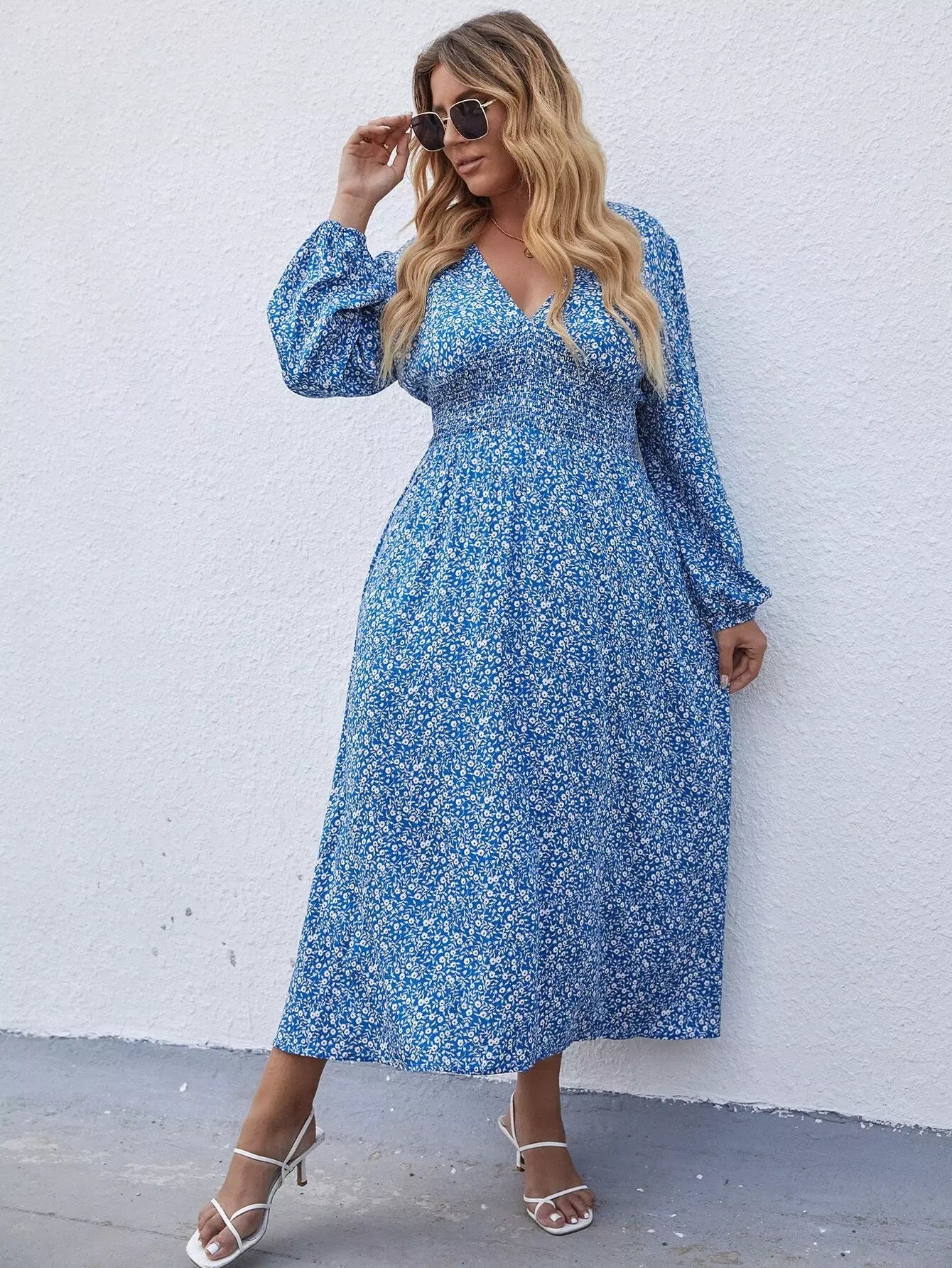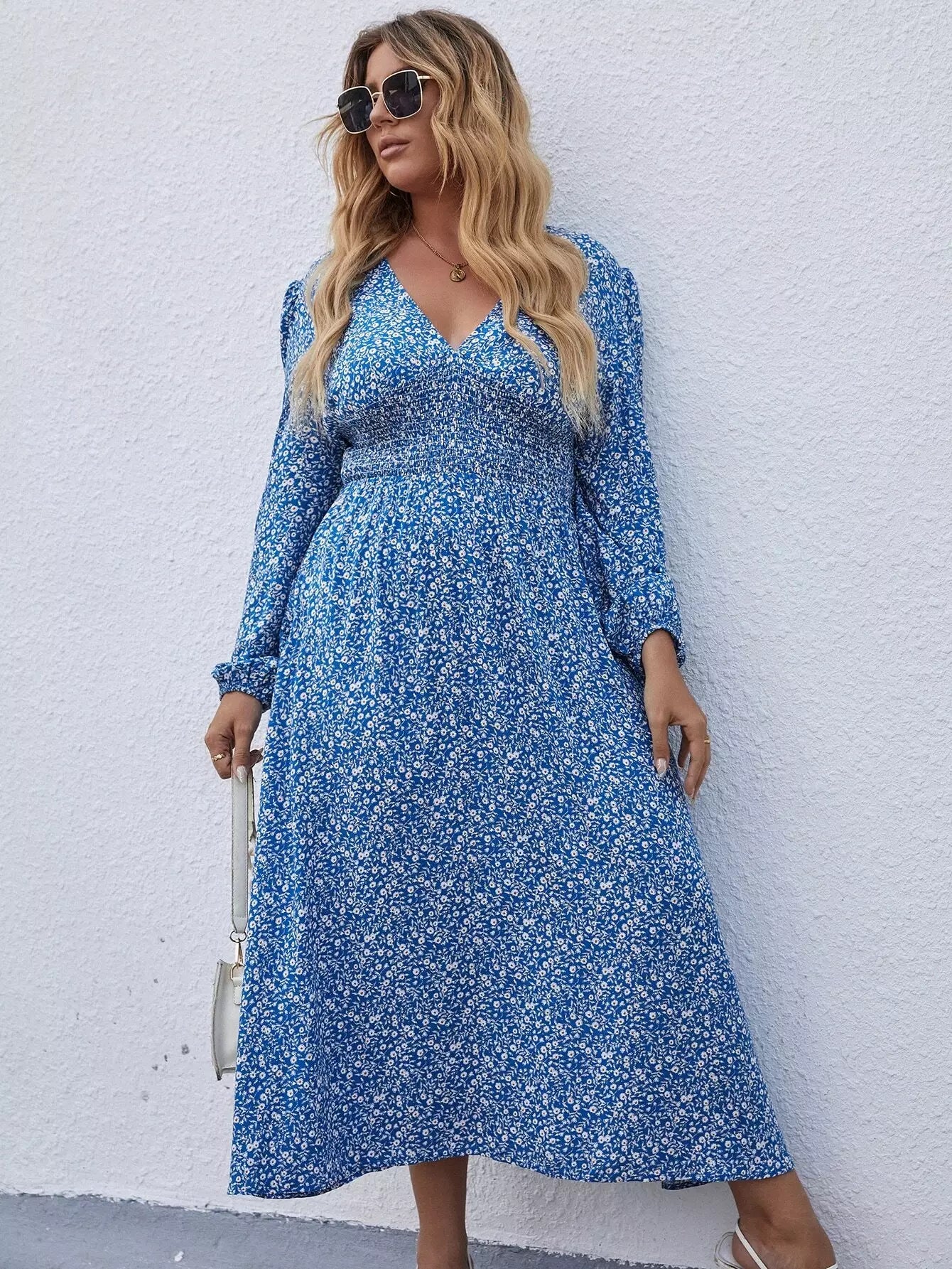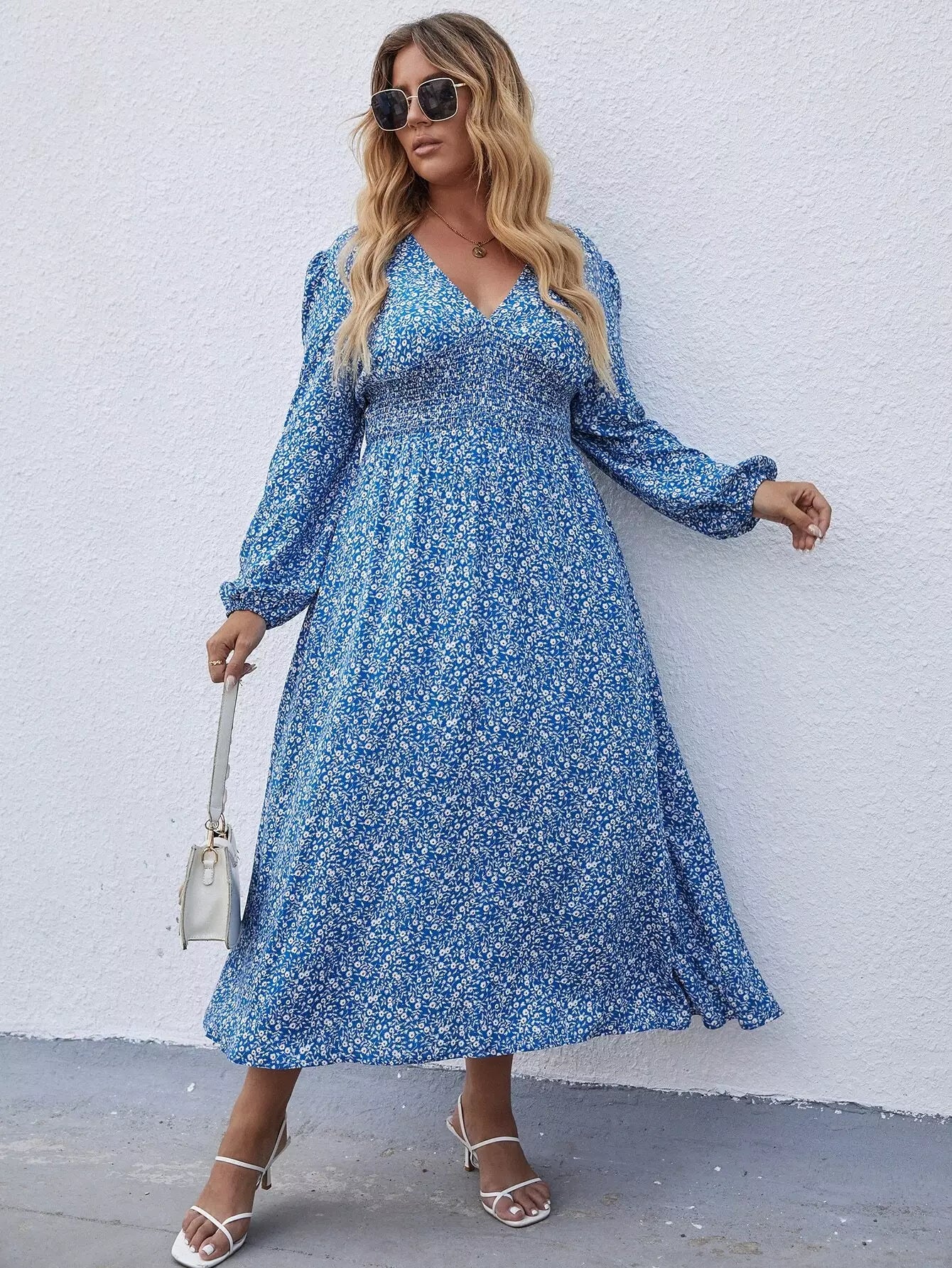 فستان مزين بطبعات زهور مزركشة على شكل حرف A زائد