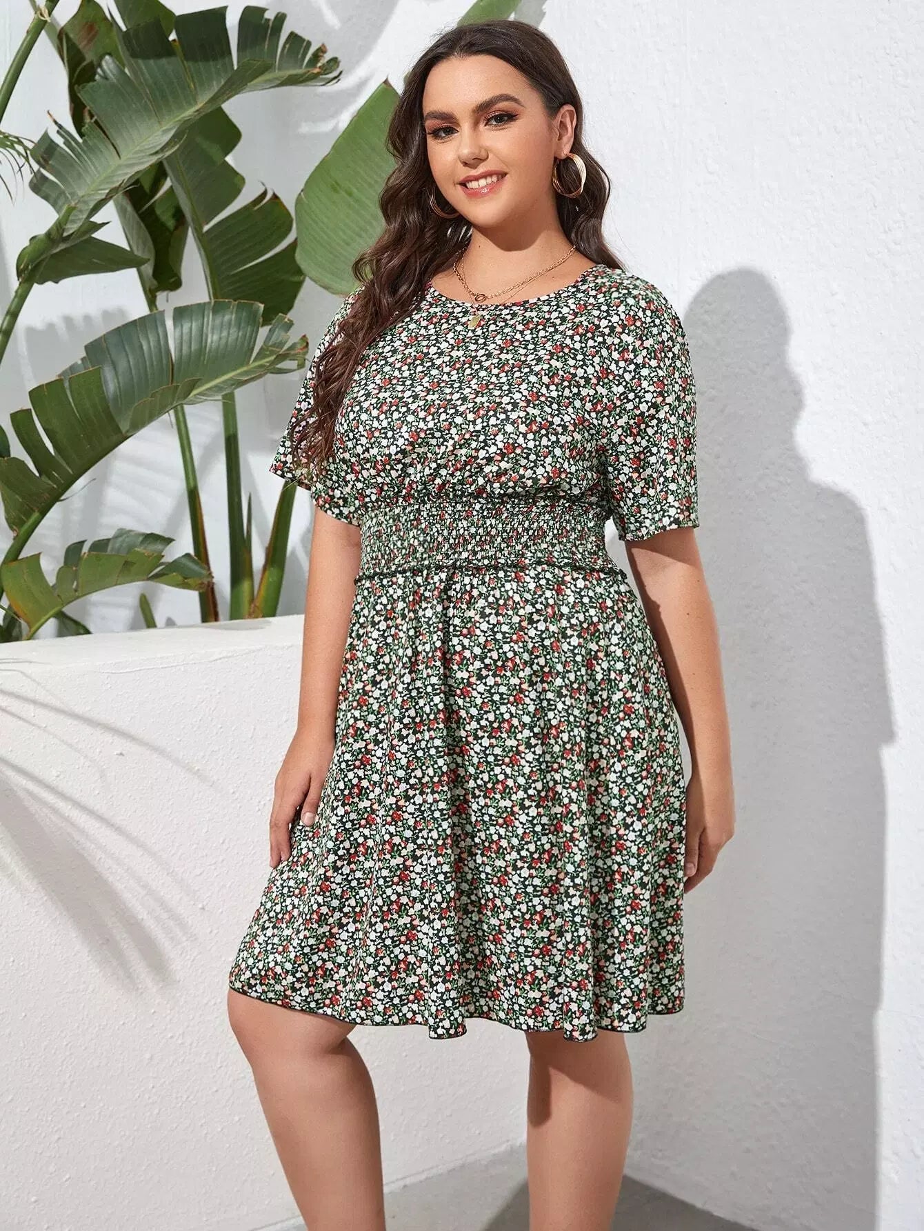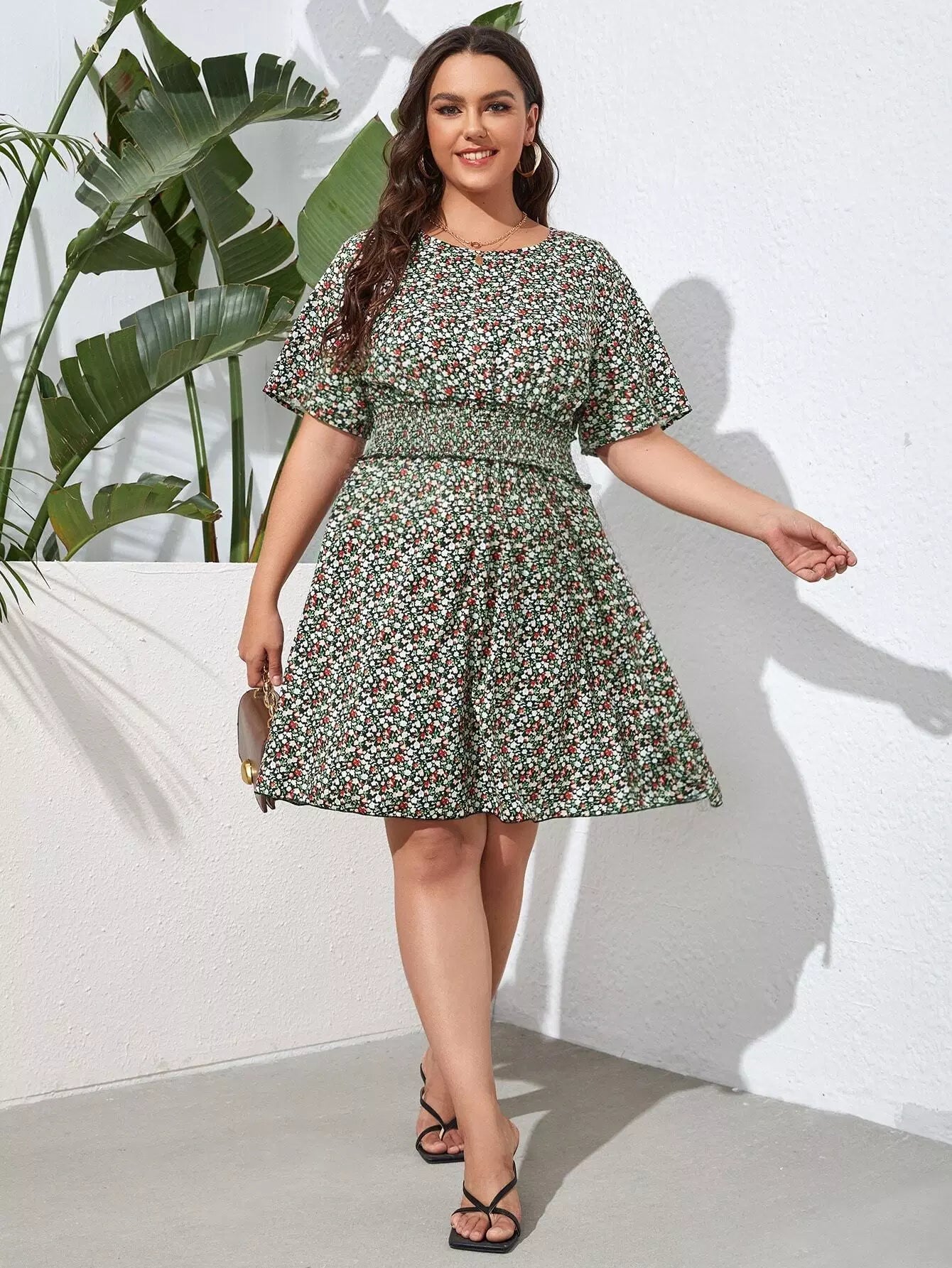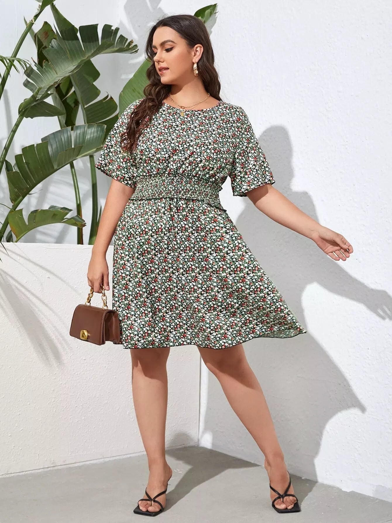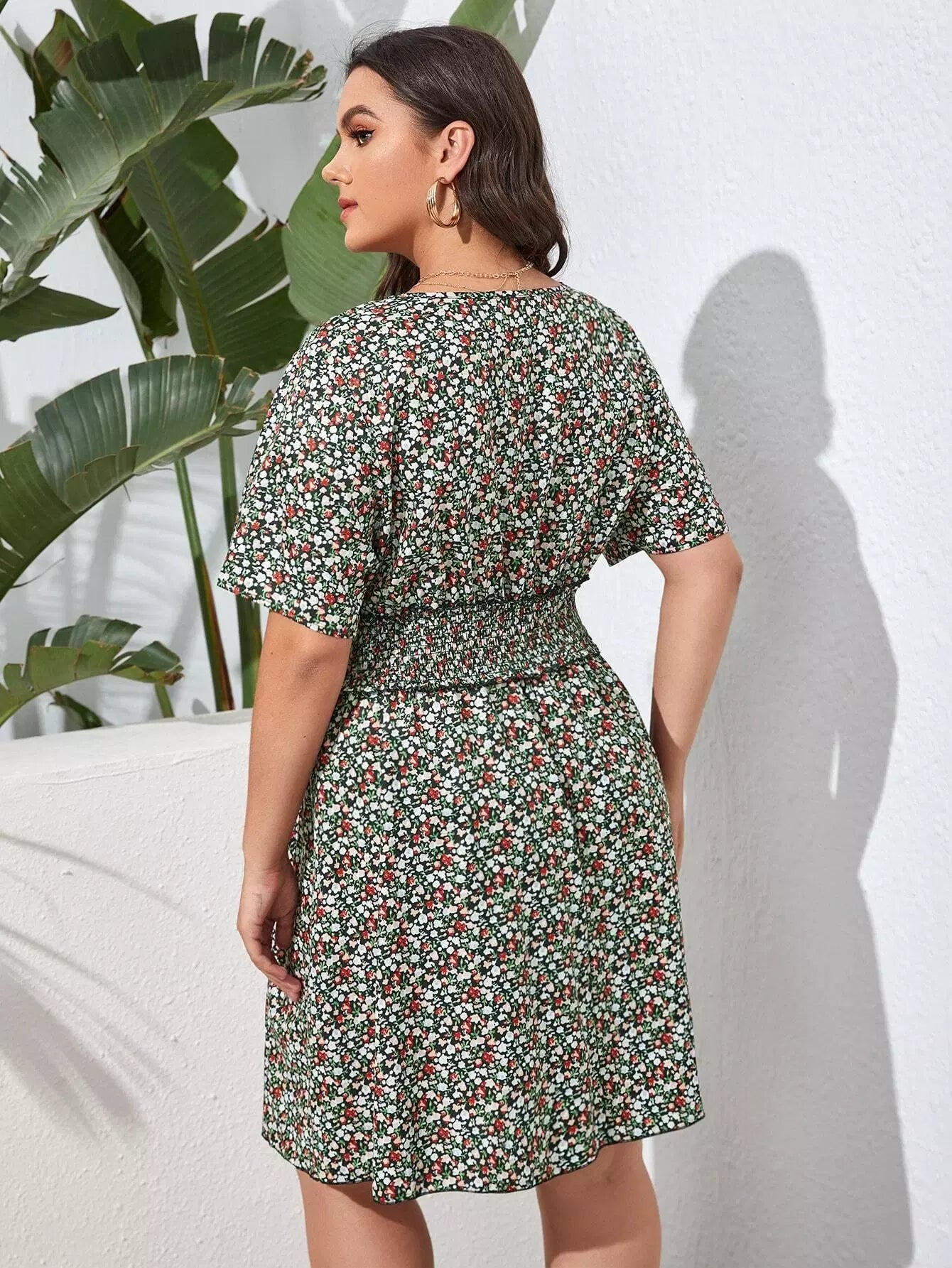 فستان مزين بطبعات زهور مزركشة على الخصر