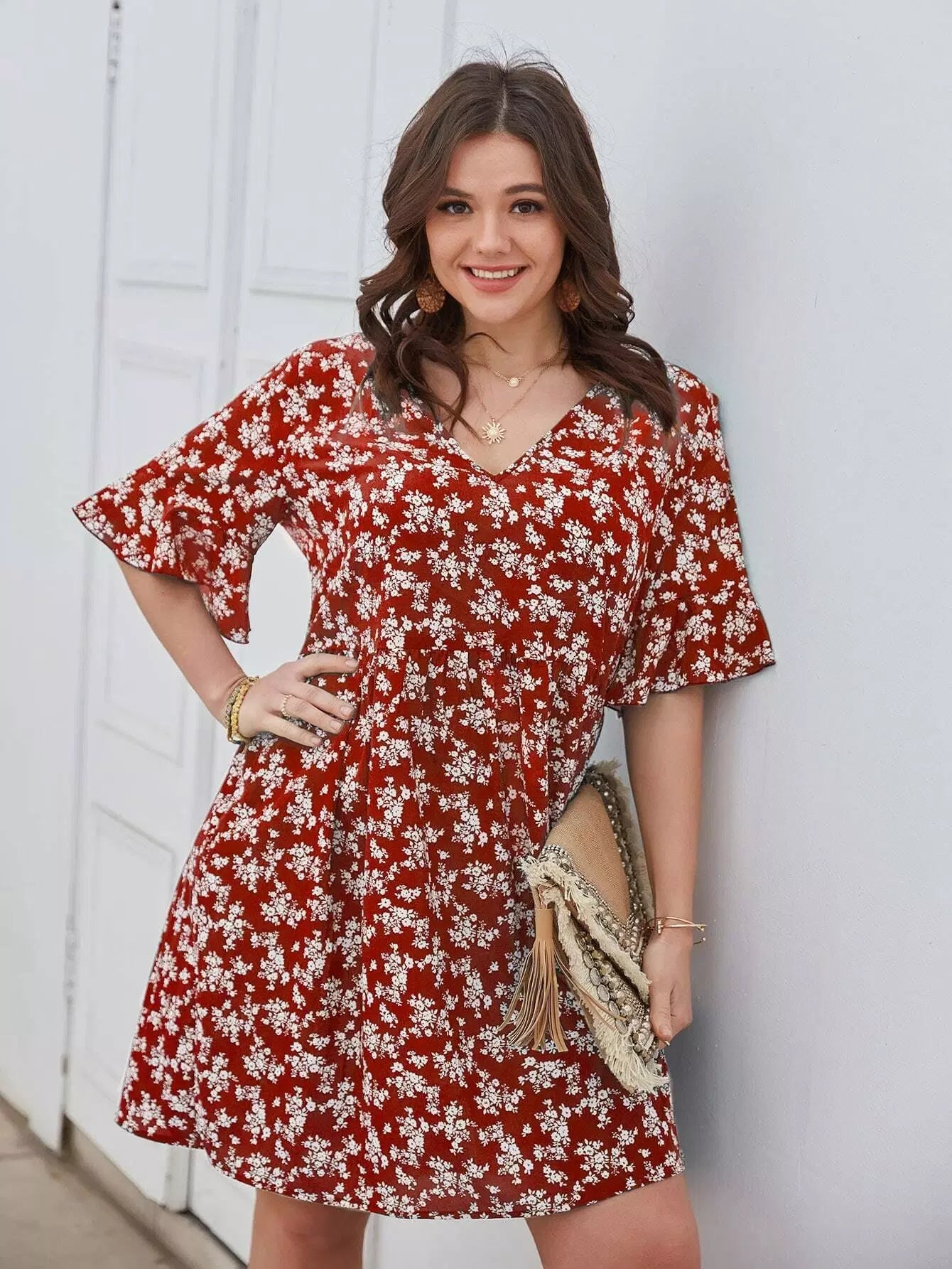فستان بلس ديتسي ديتسي سموك مزين بالورود
