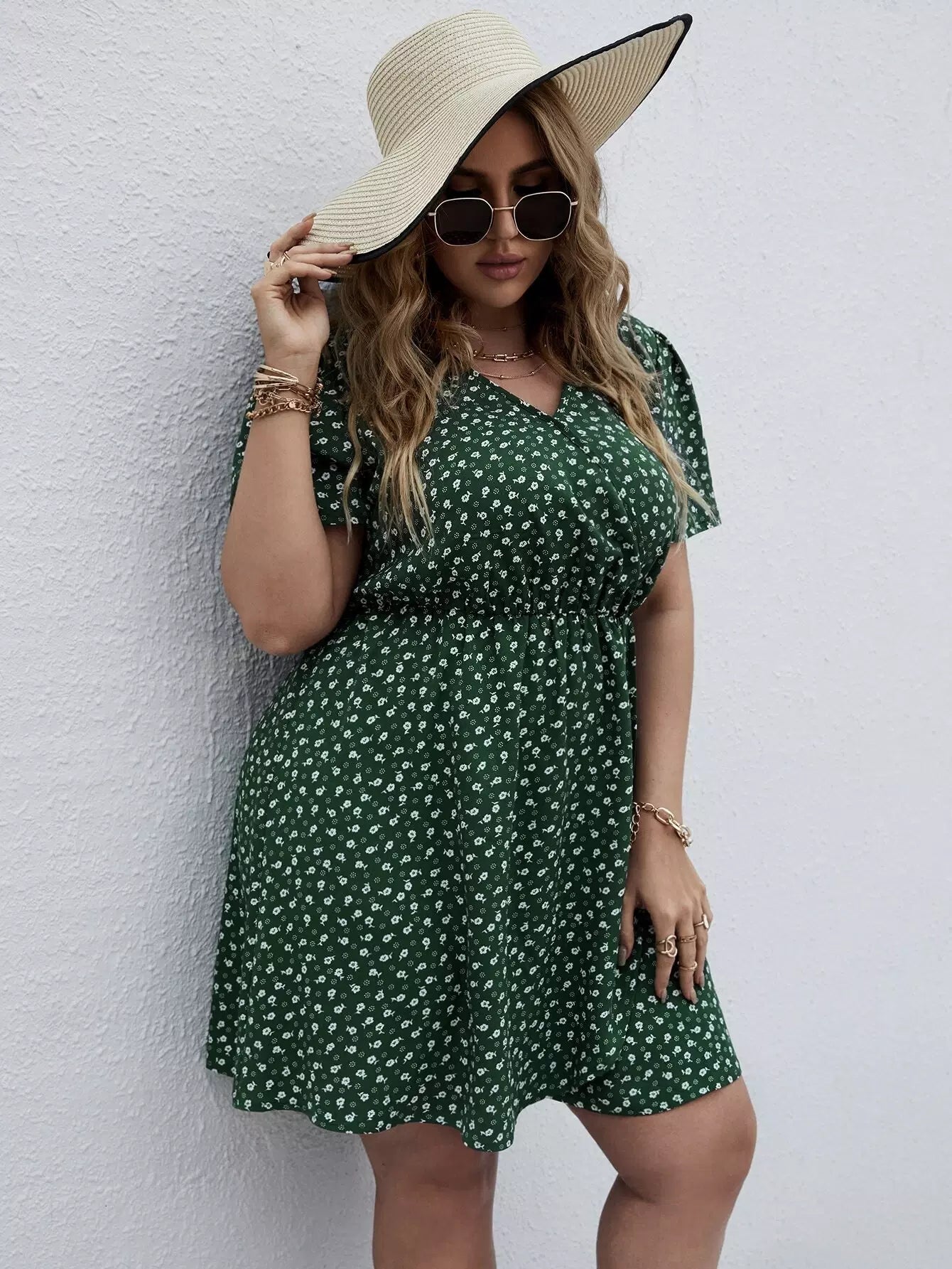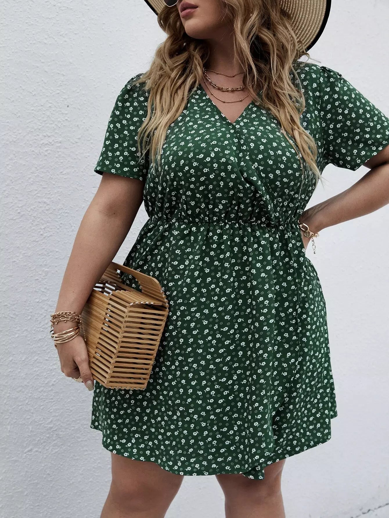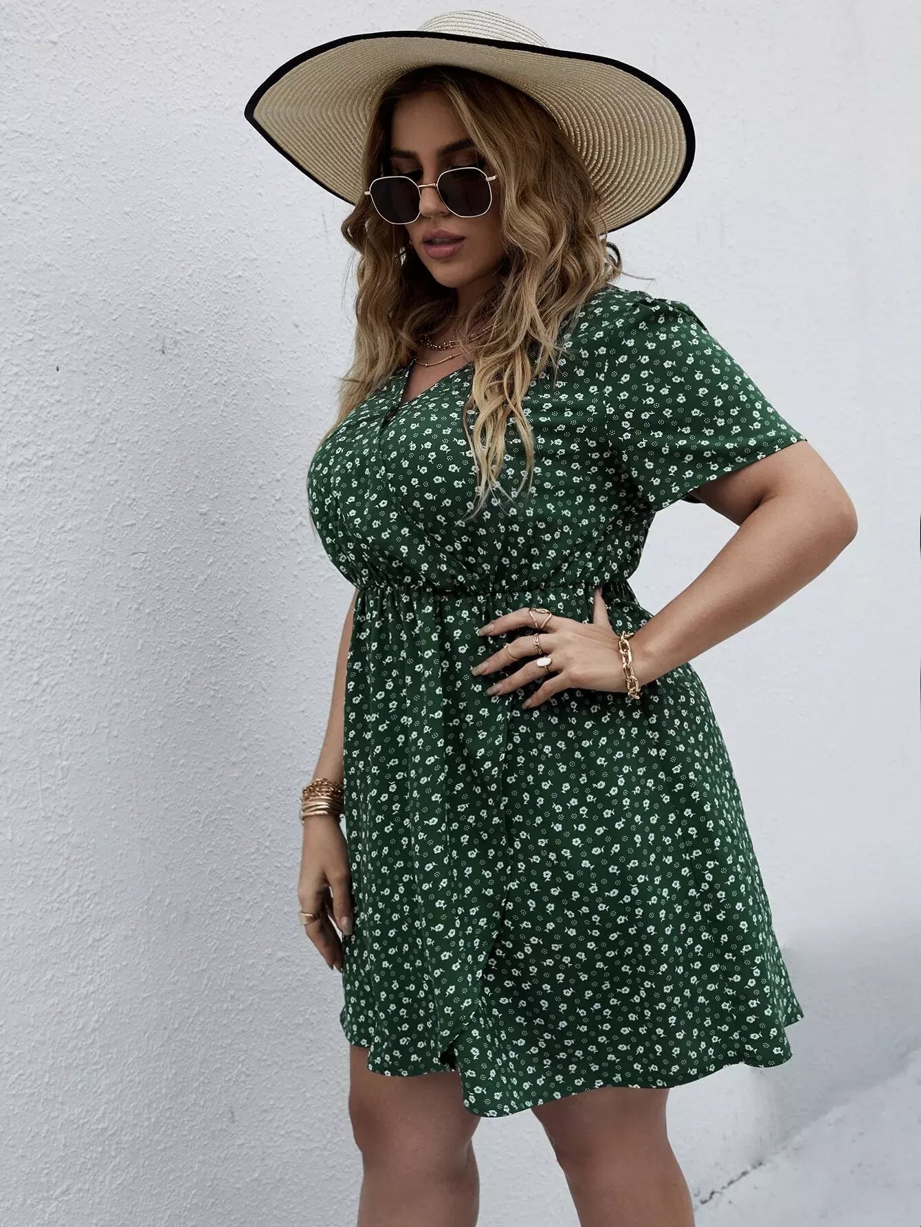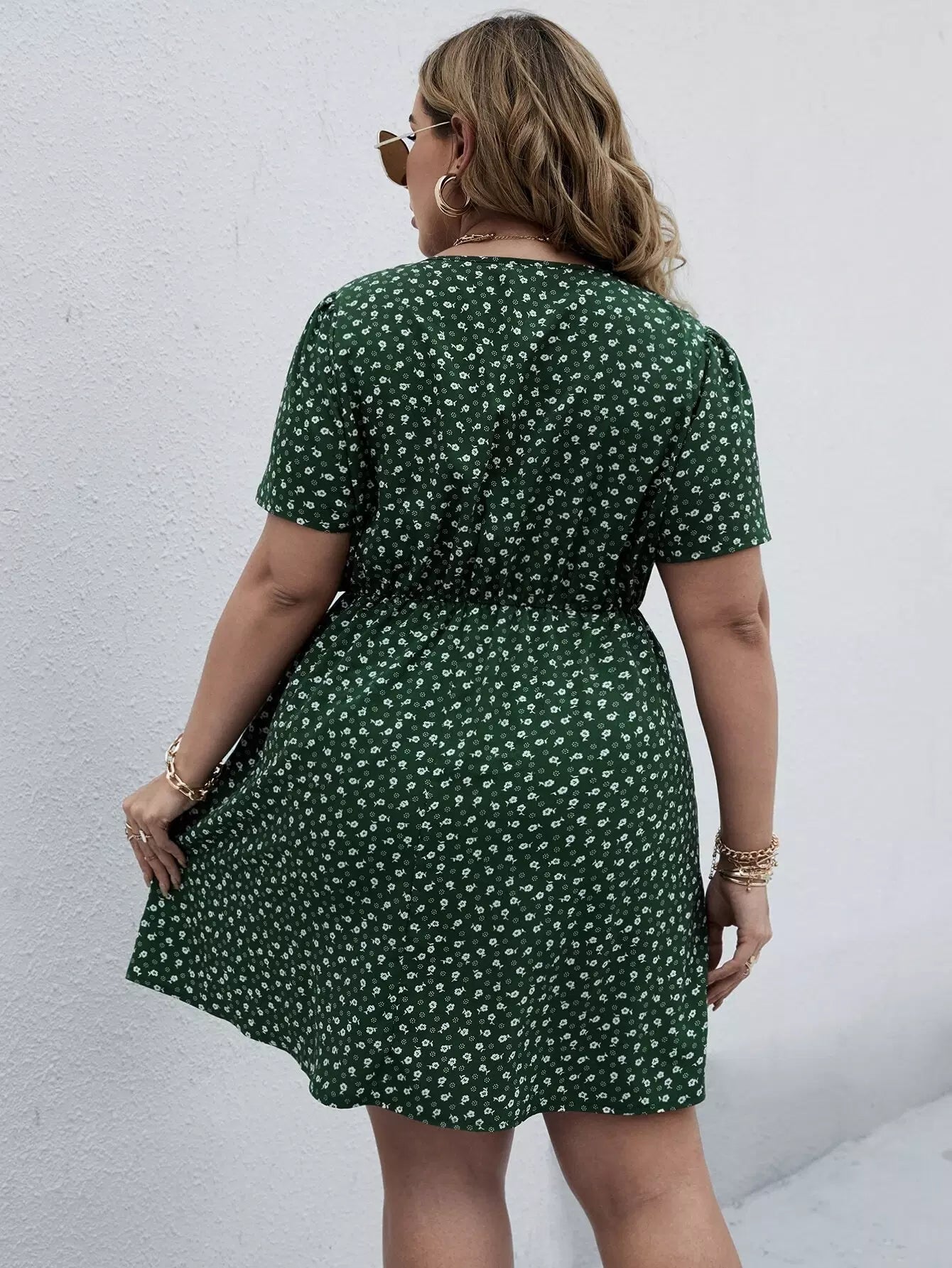 نحيف - مقاس كبير فستان على شكل حرف A ملفوف بنقشة الزهور من Ditsy