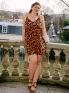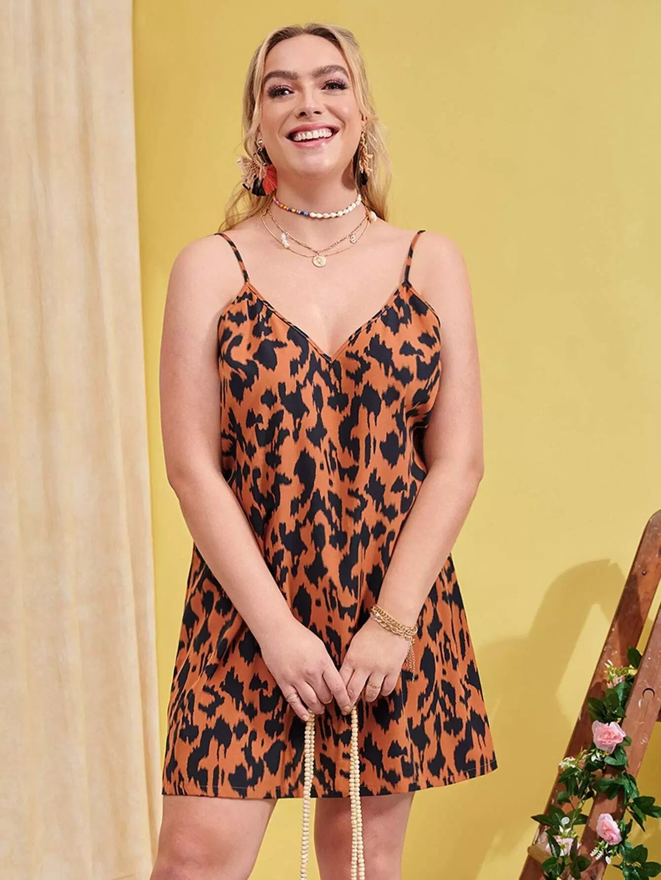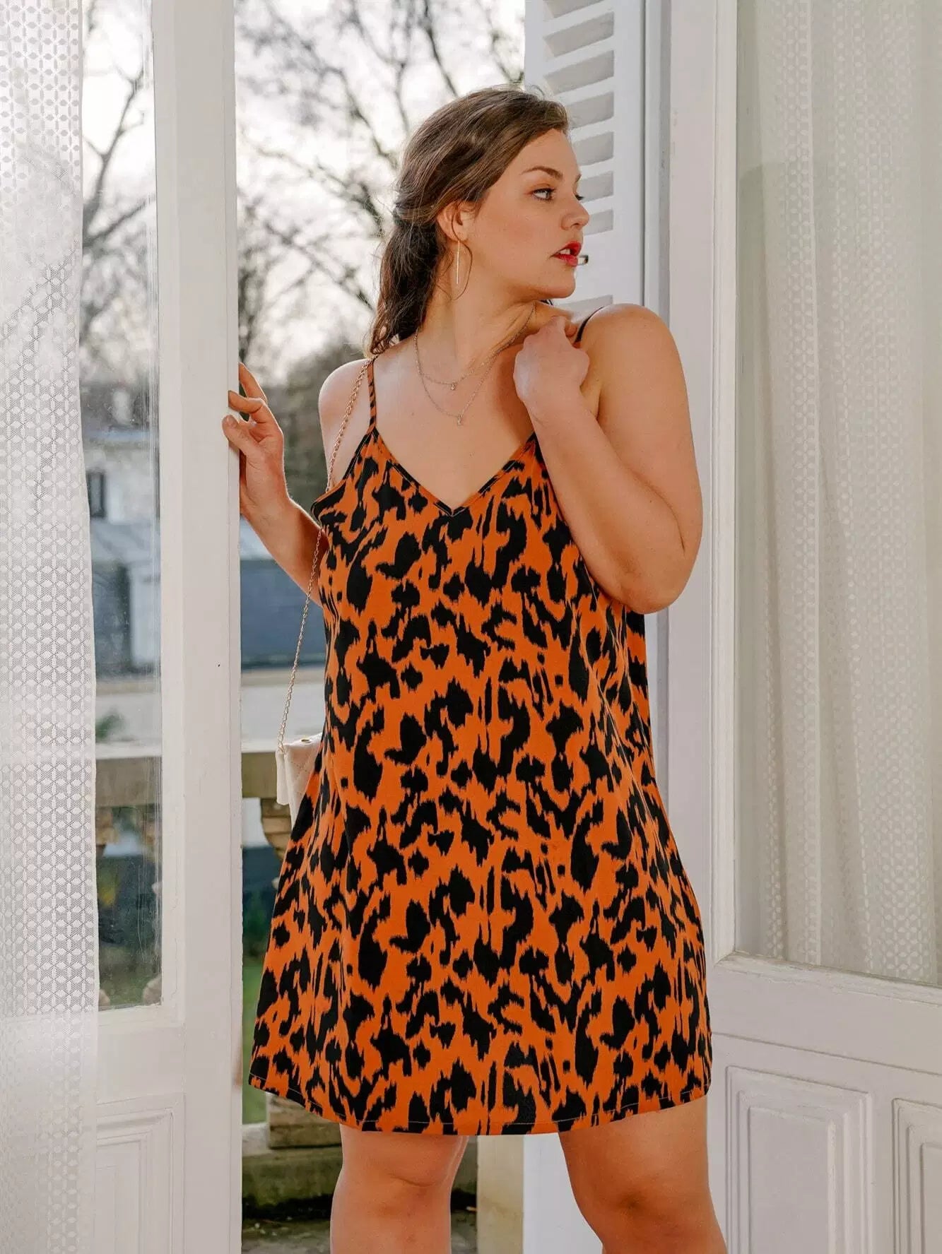فستان برقبة مزدوجة على شكل حرف V مطبوع بالكامل