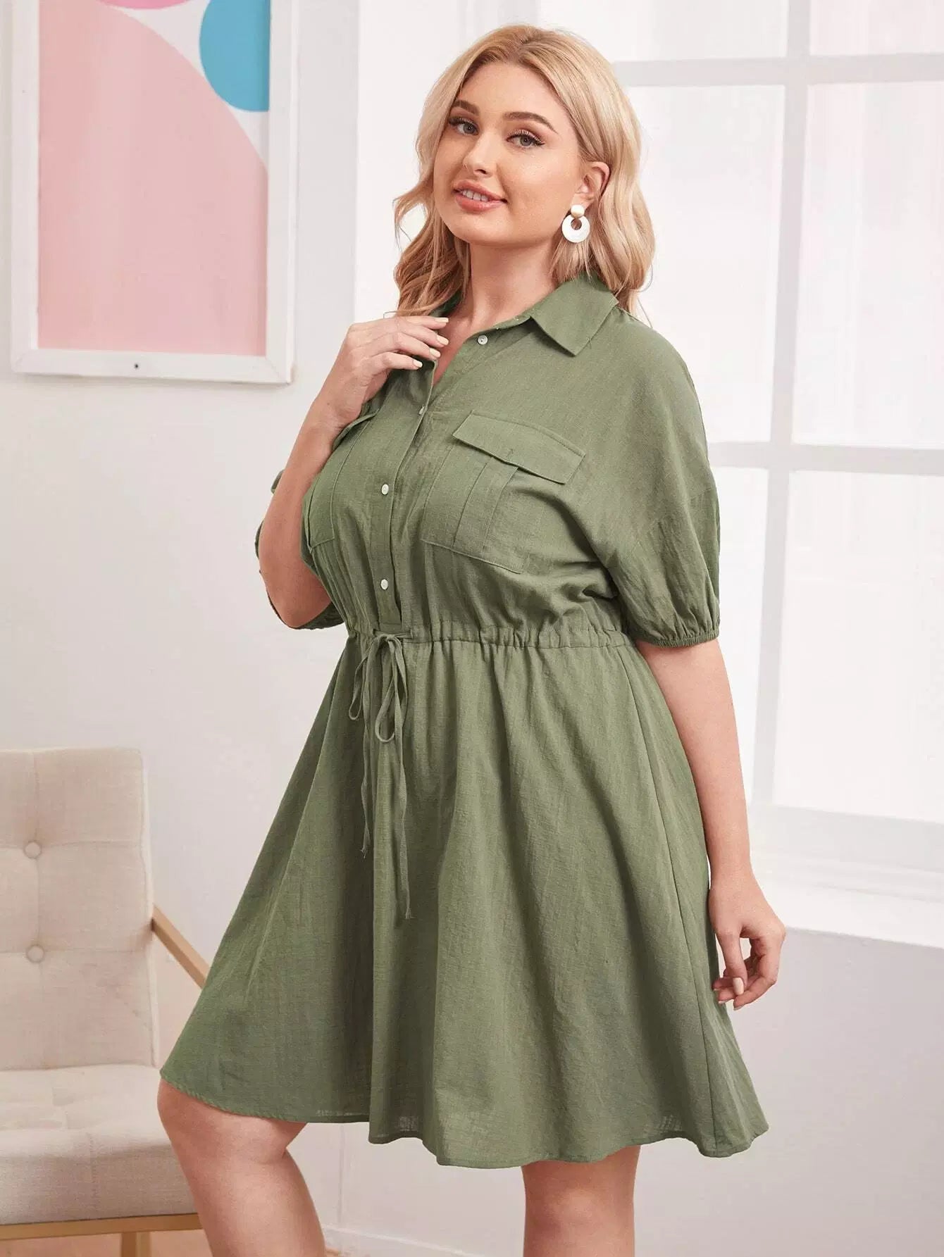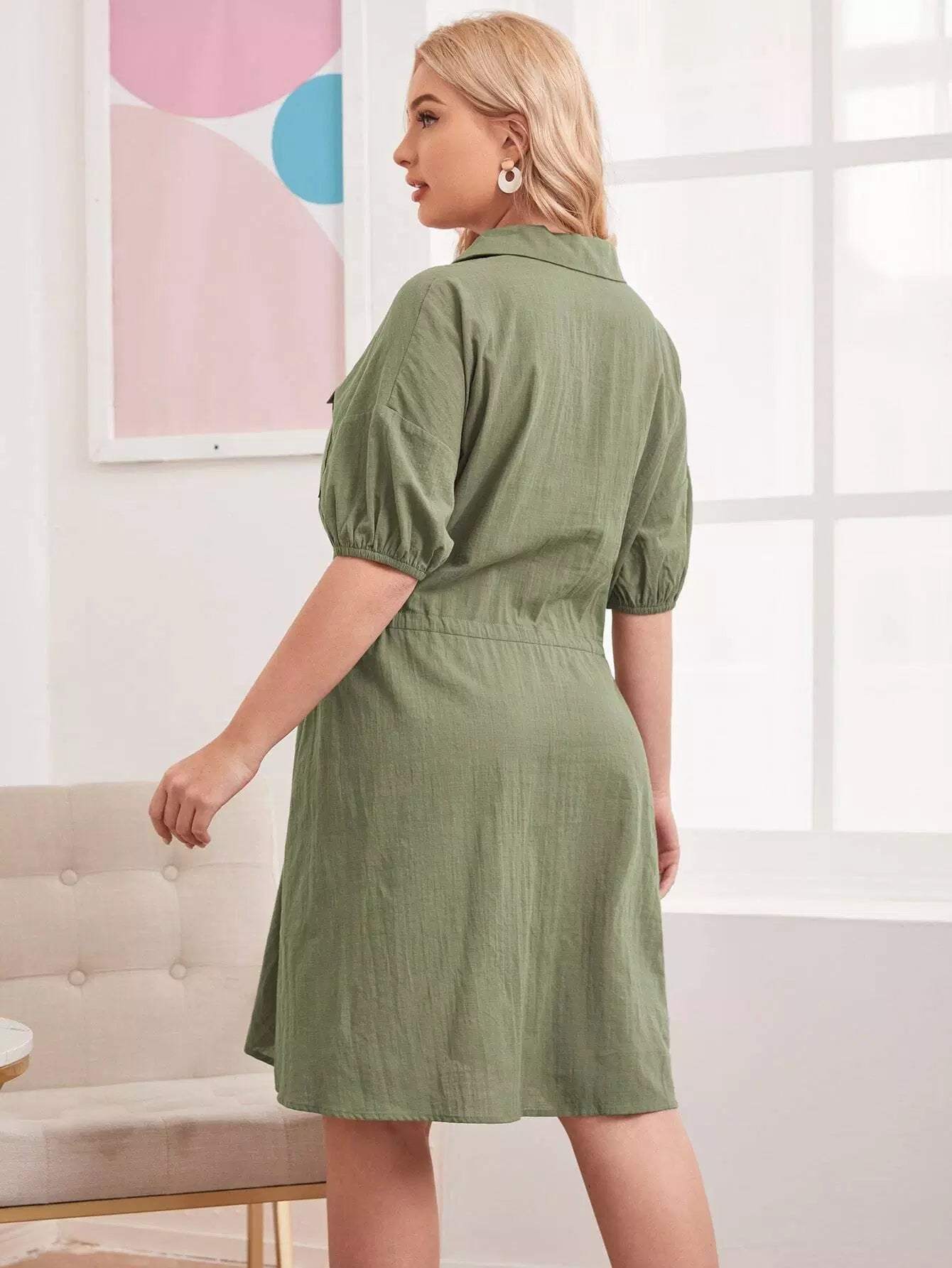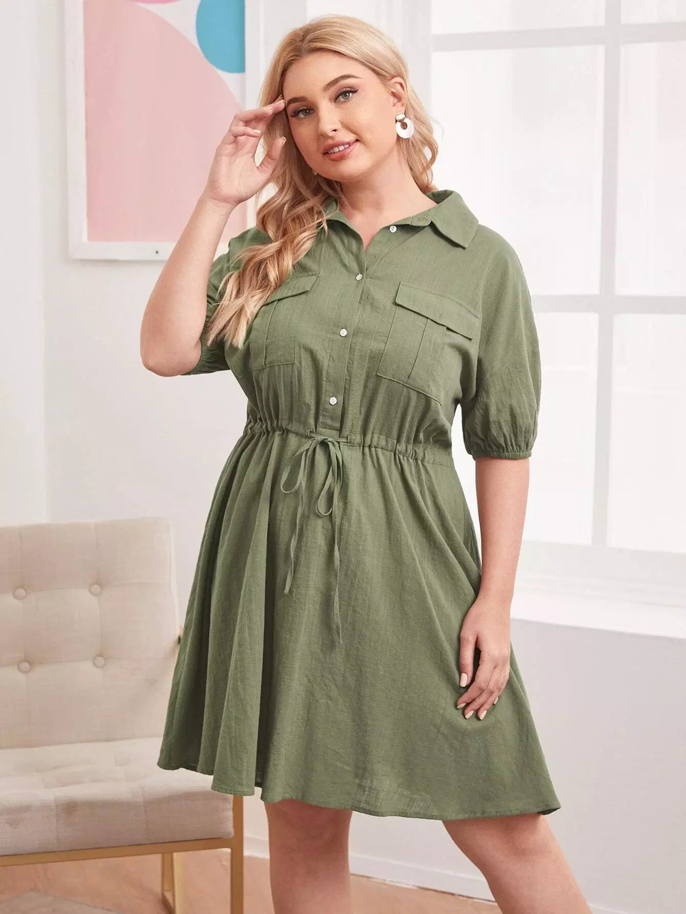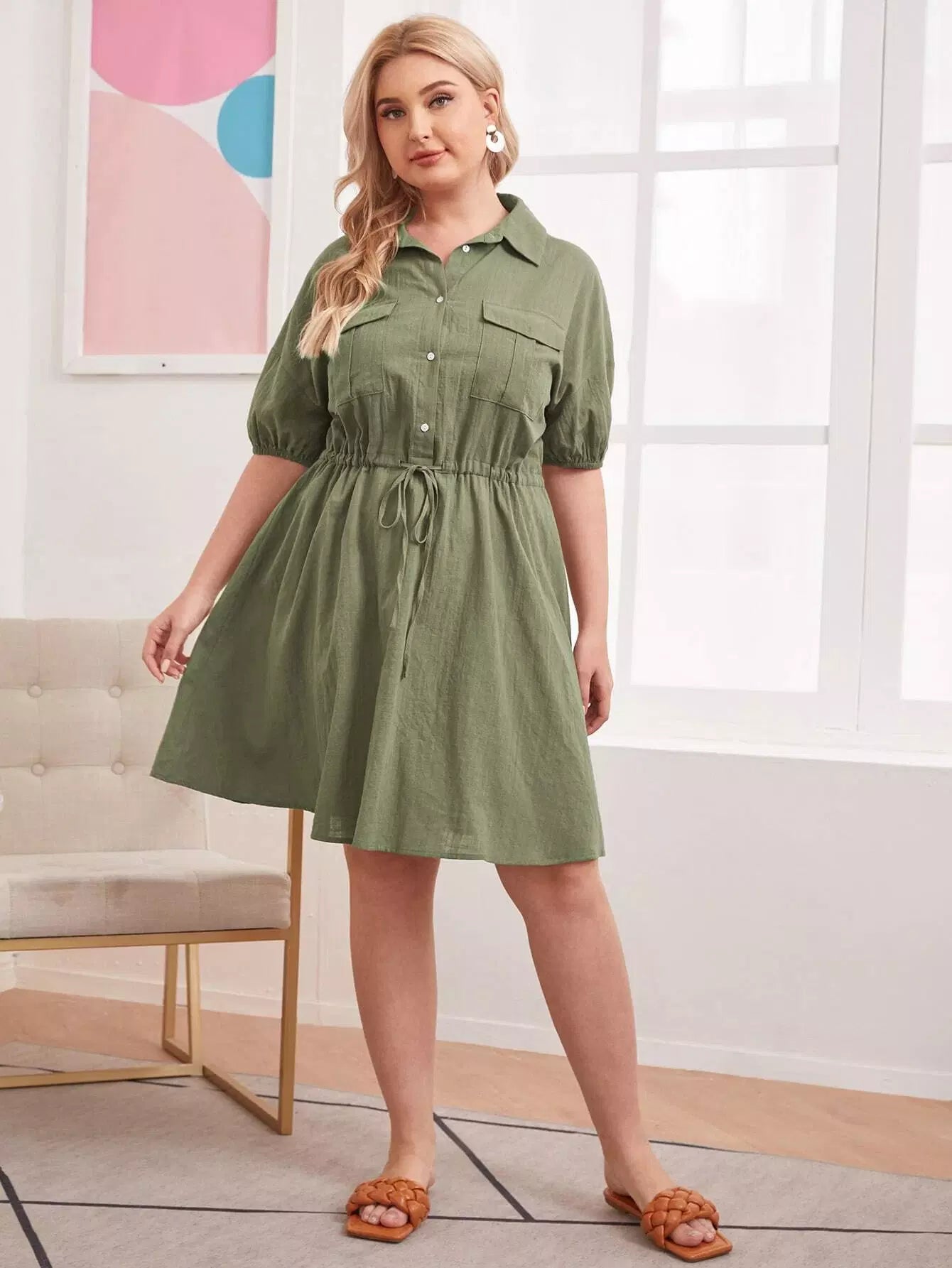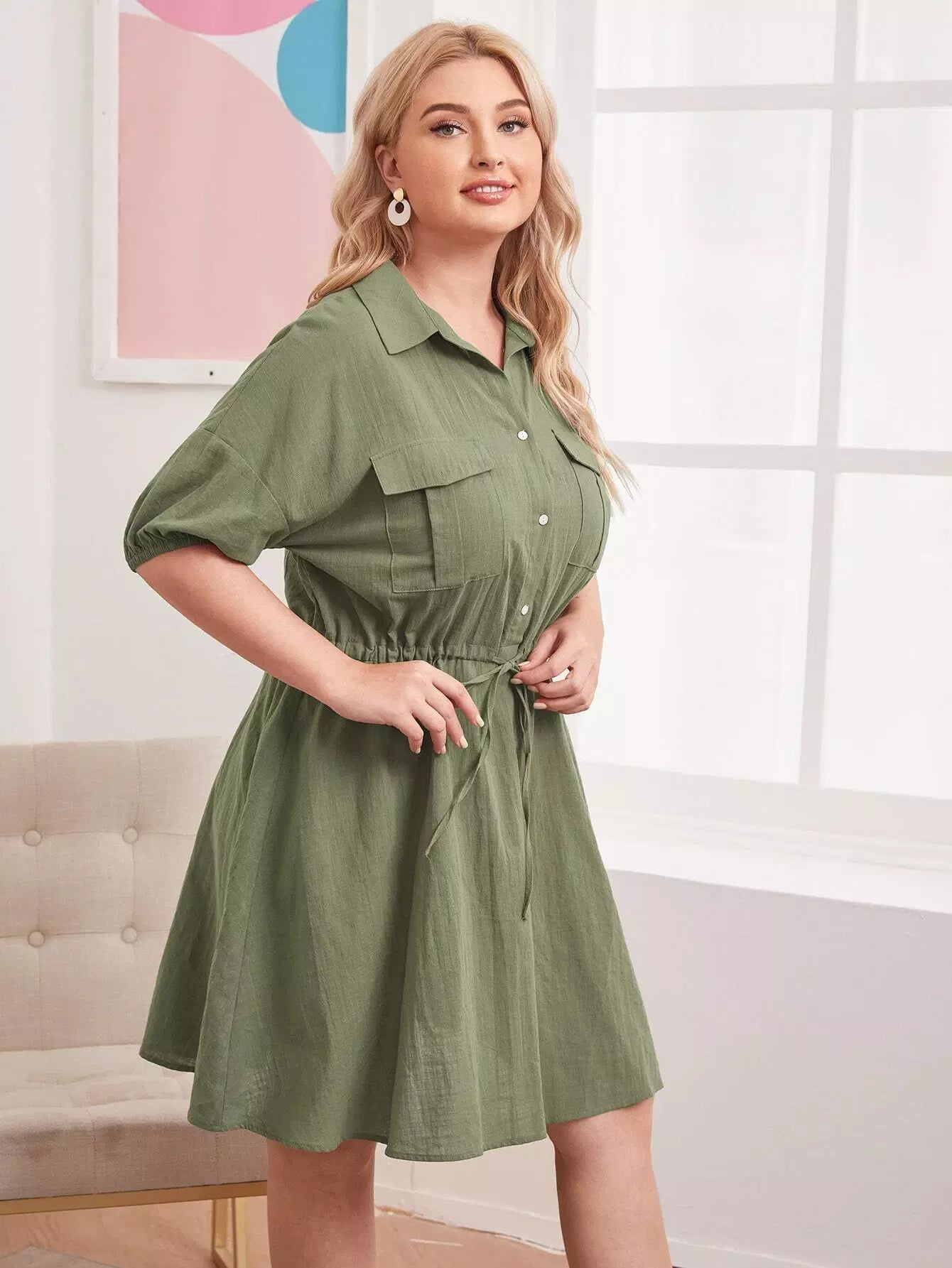 فستان قميص سادة بجيب برباط برباط بلاس سادة