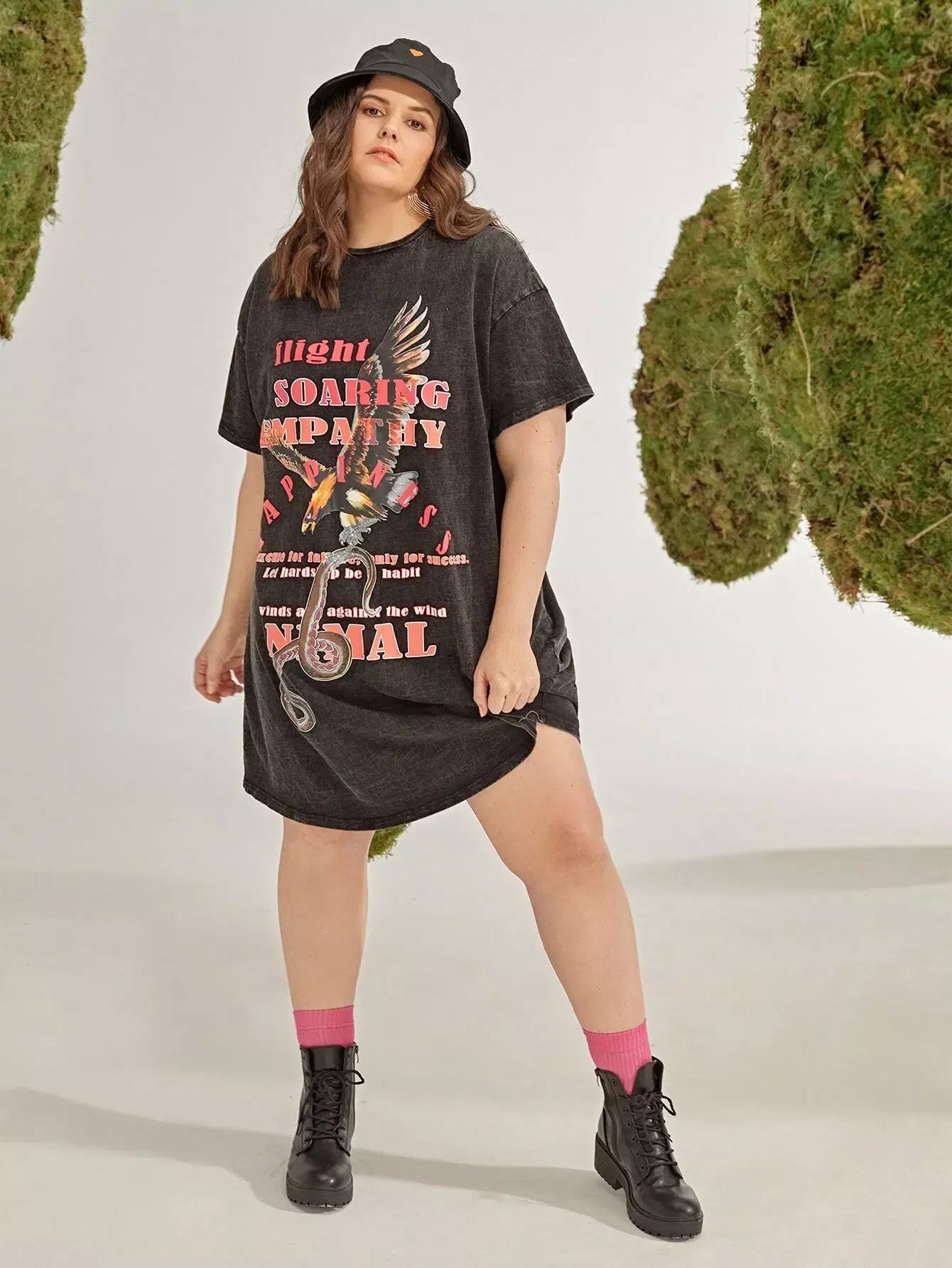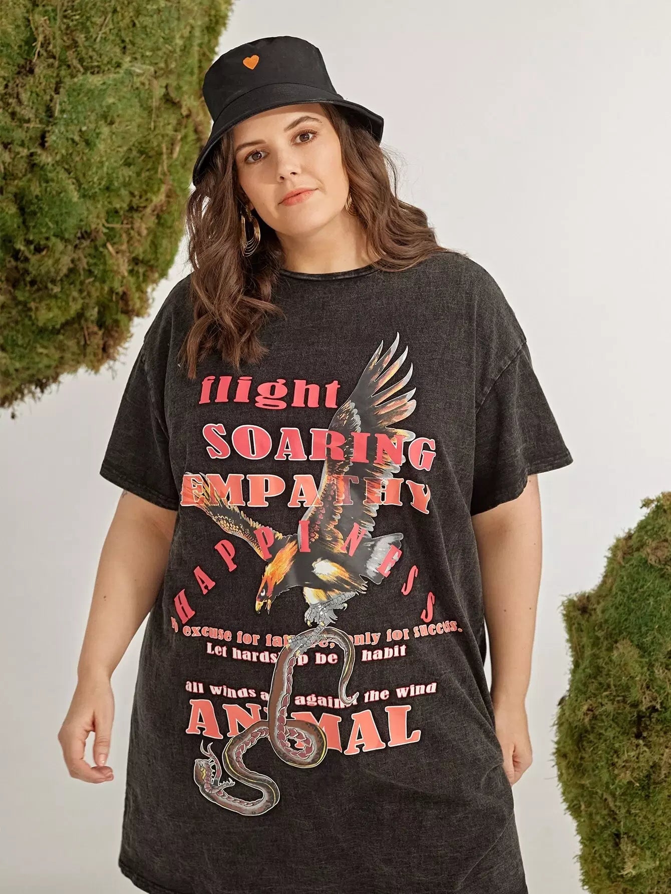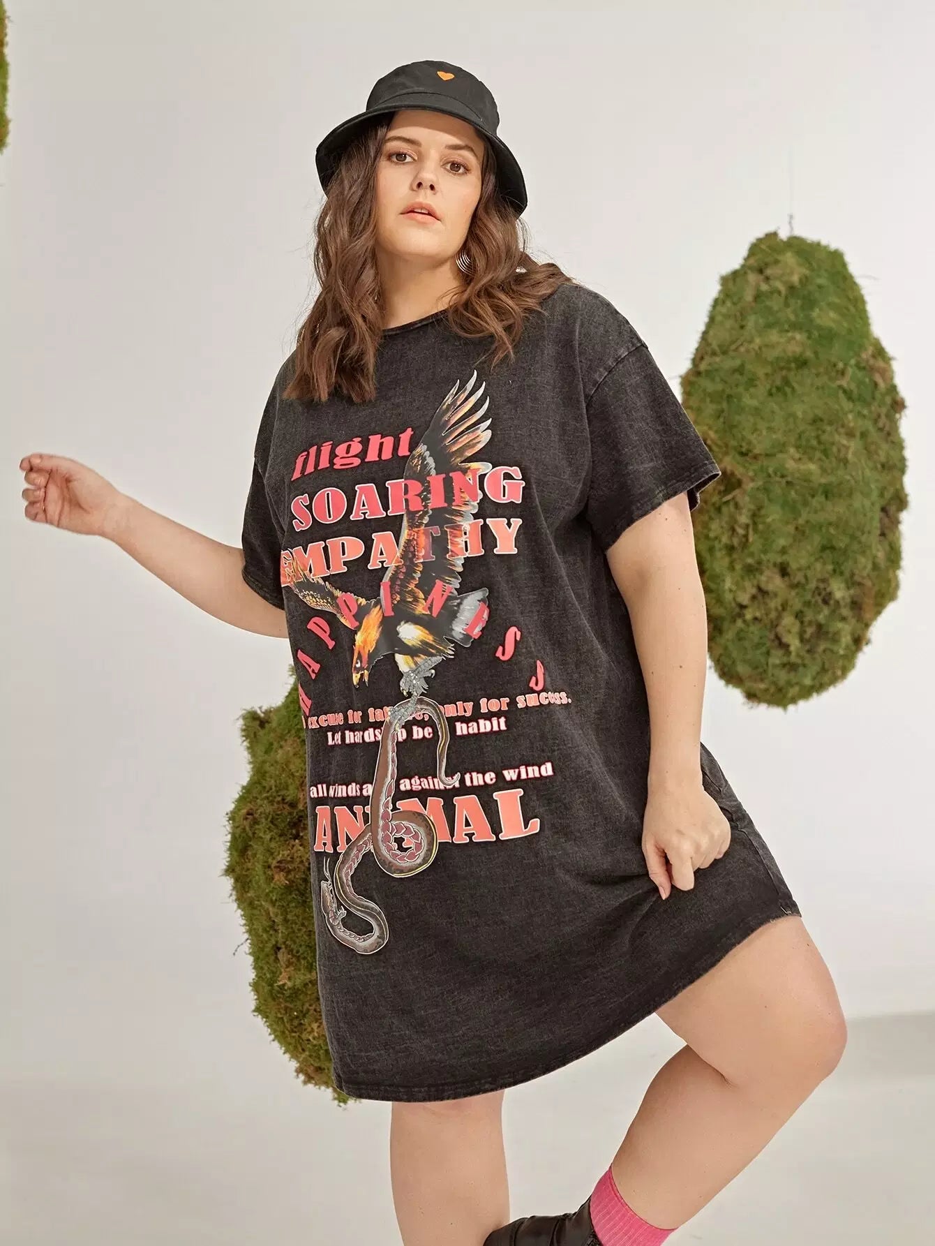 فستان بقصّة منسدل الأكتاف بطبعة حيوانات وشعارات