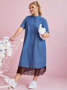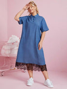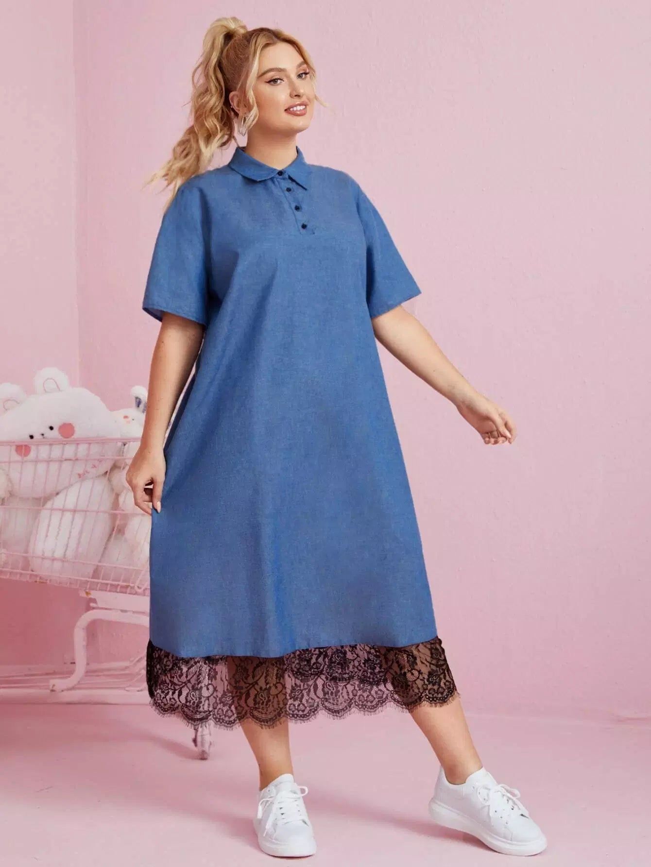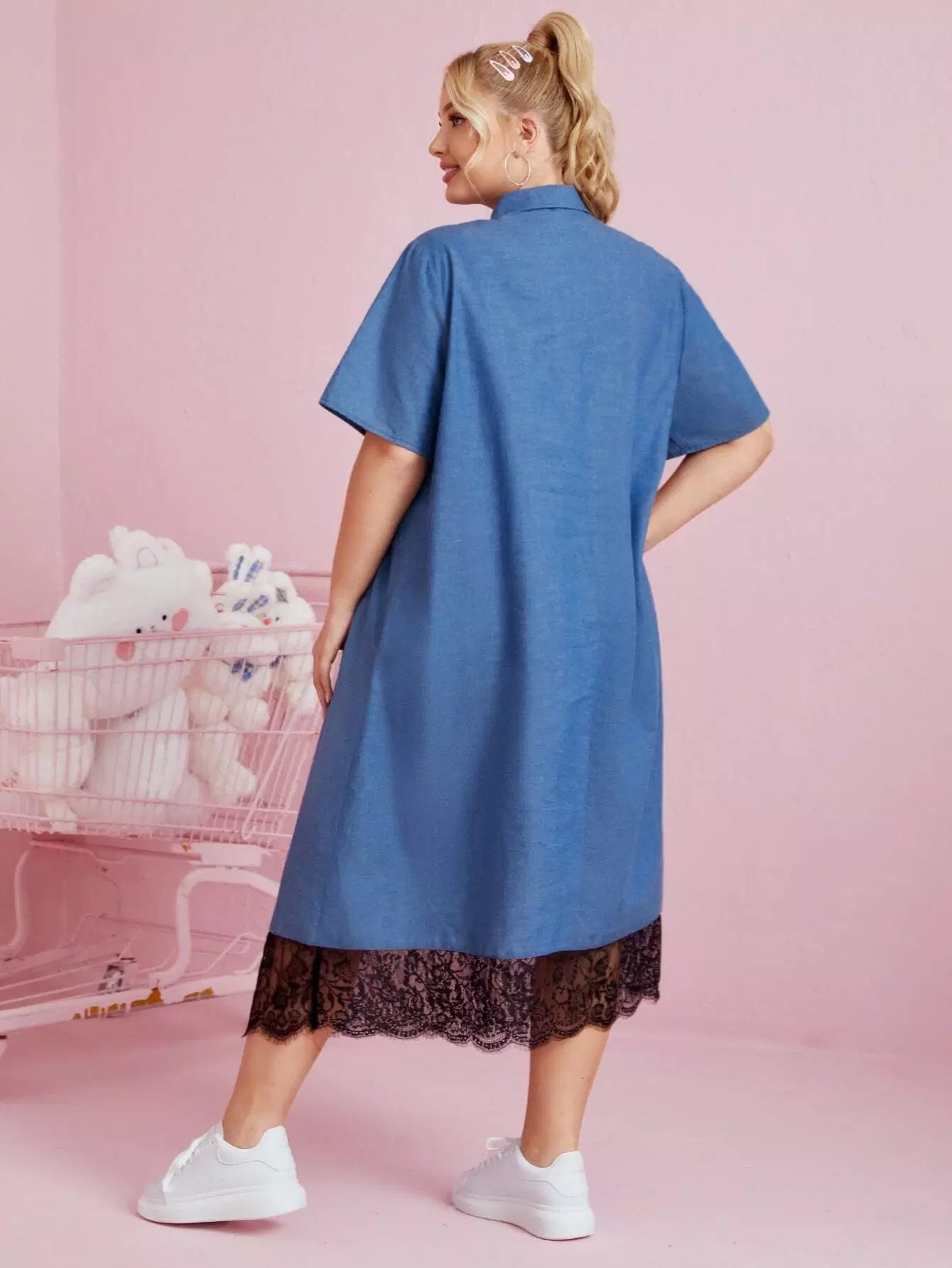 فستان قميص بحاشية من الدانتيل زائد رمش زائد