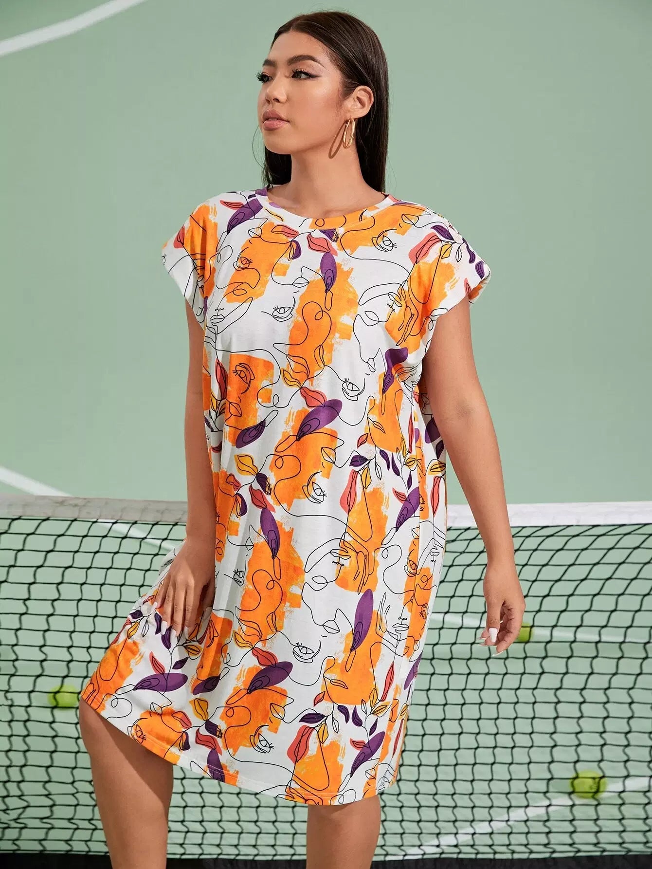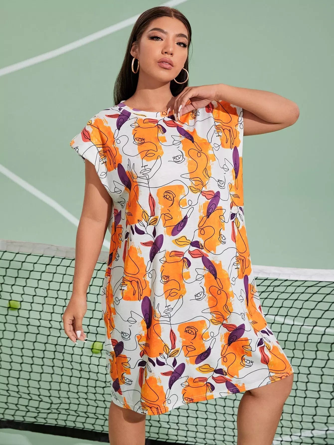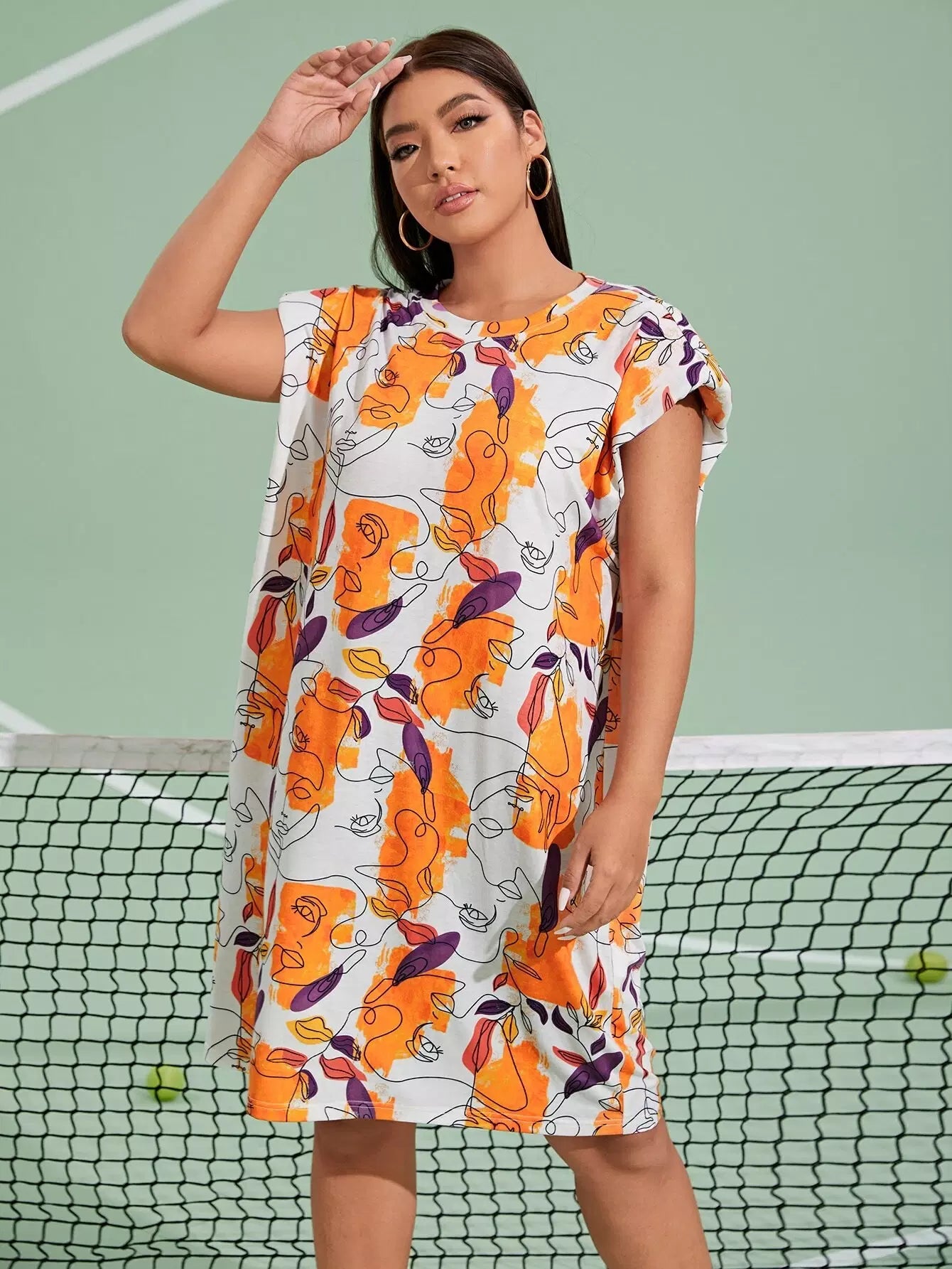 فستان ذو أكتاف جرافيك جرافيك زائد الشكل زائد الكتف