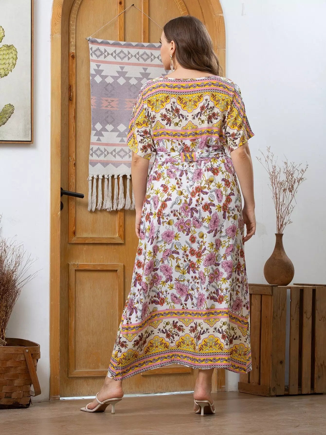 بالإضافة إلى فستان بأكمام تشبه جناح الخفاش بدون حزام