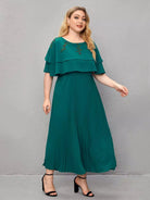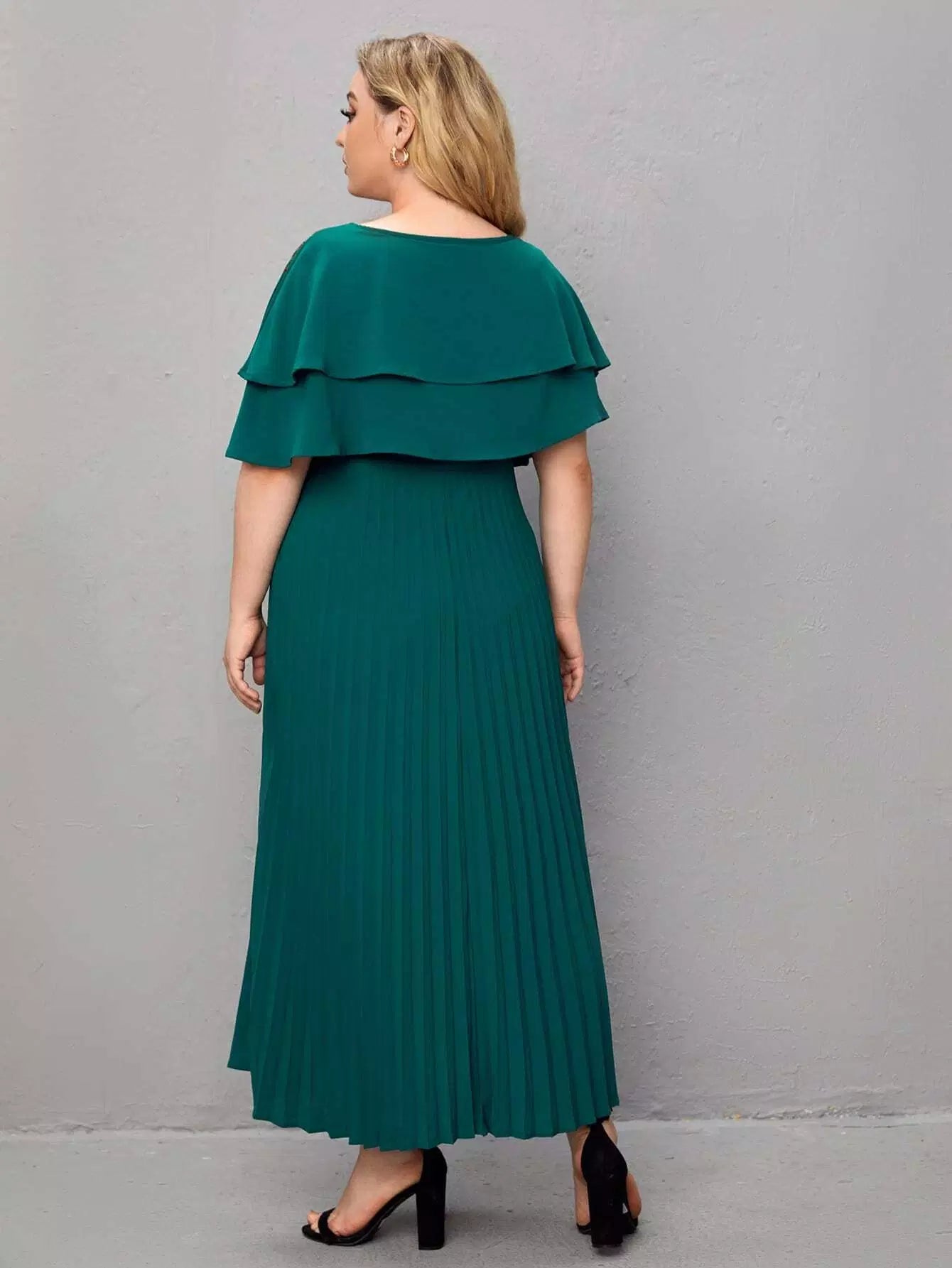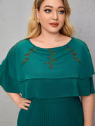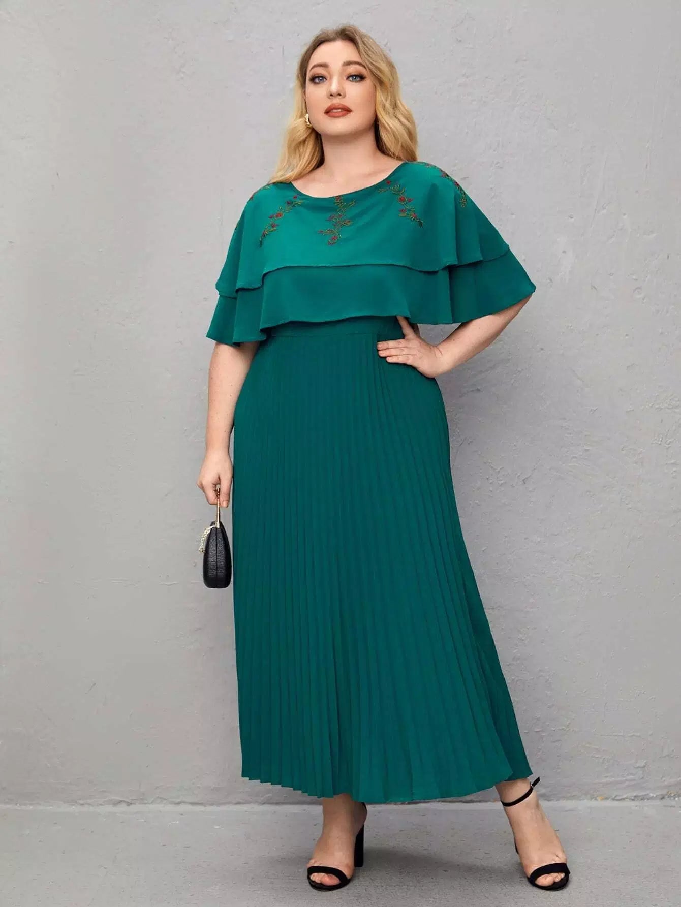 فستان مزين بتطريزات زهرية مطرزة بكشكش مطوي
