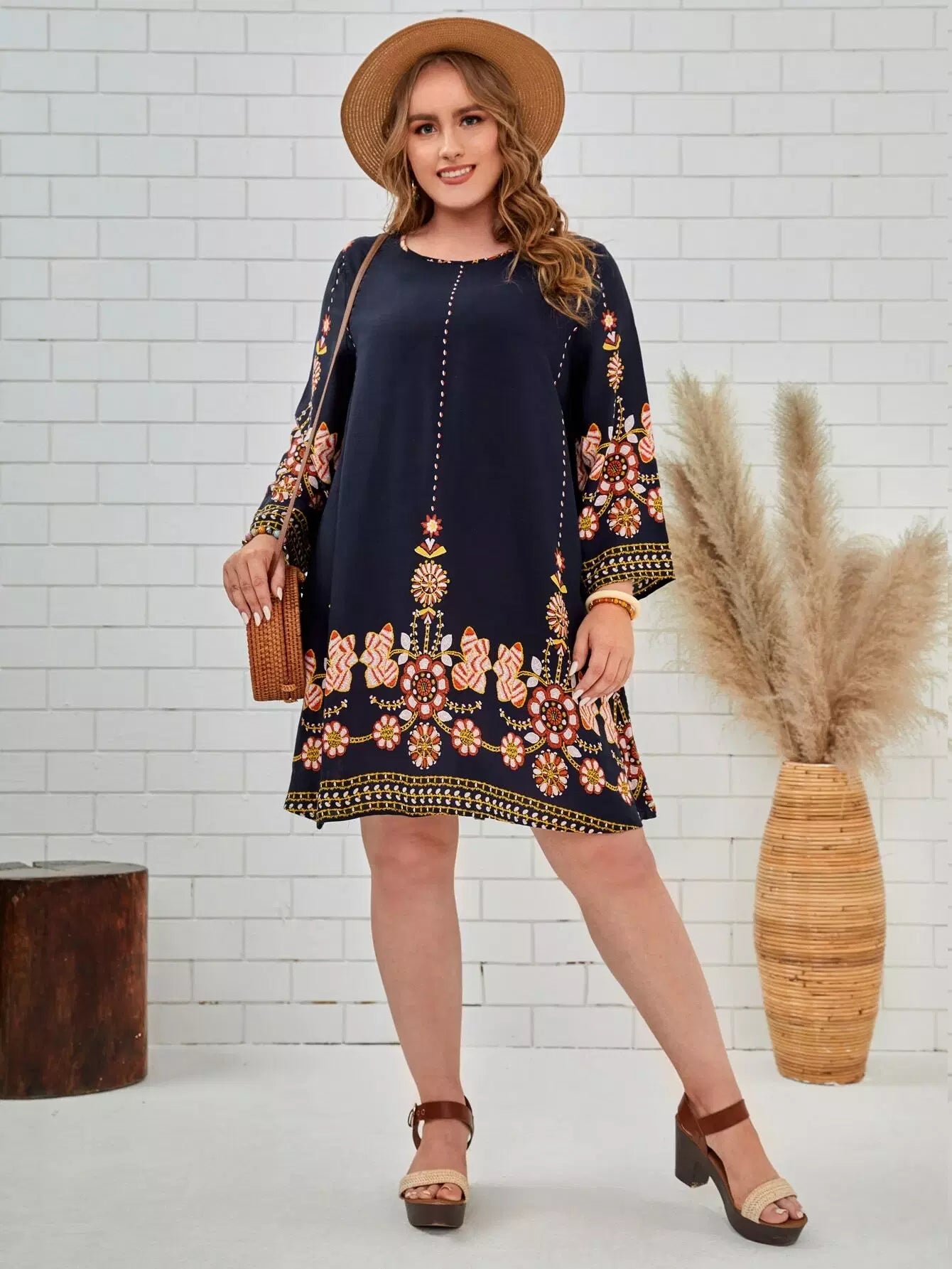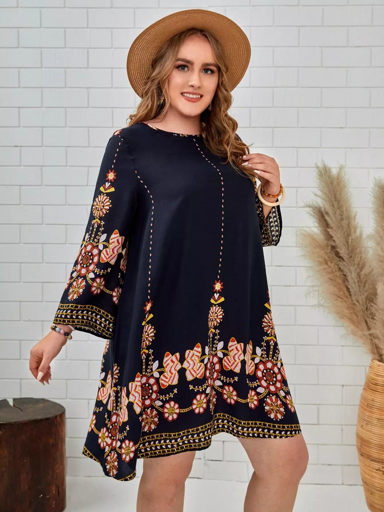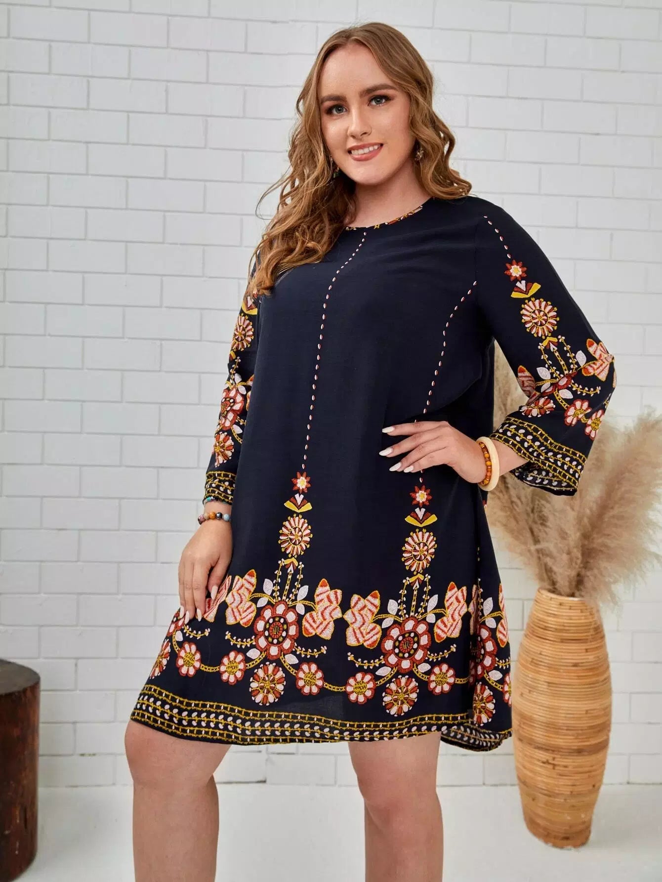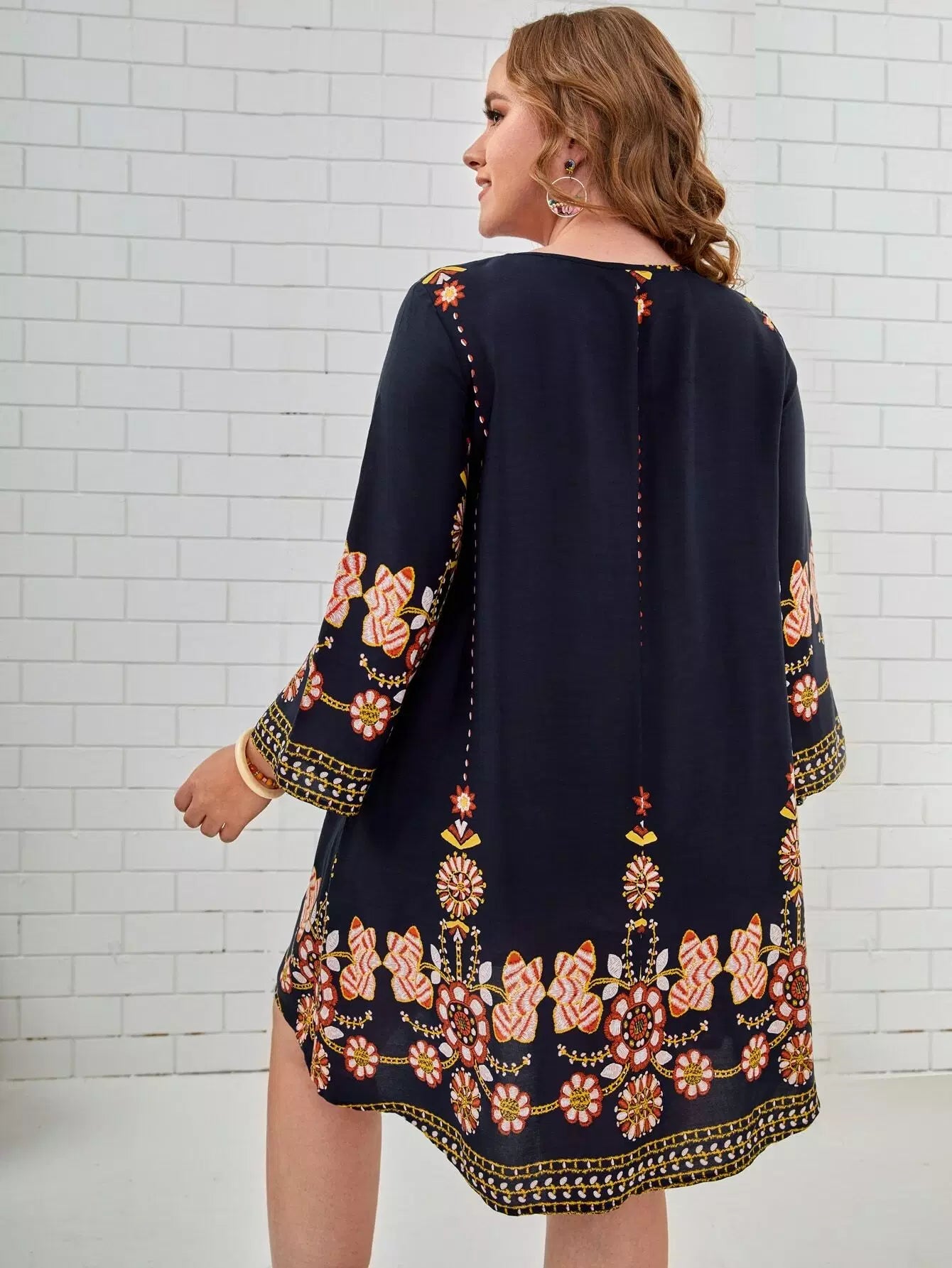 فستان تونيك بتطريز زهور زائد