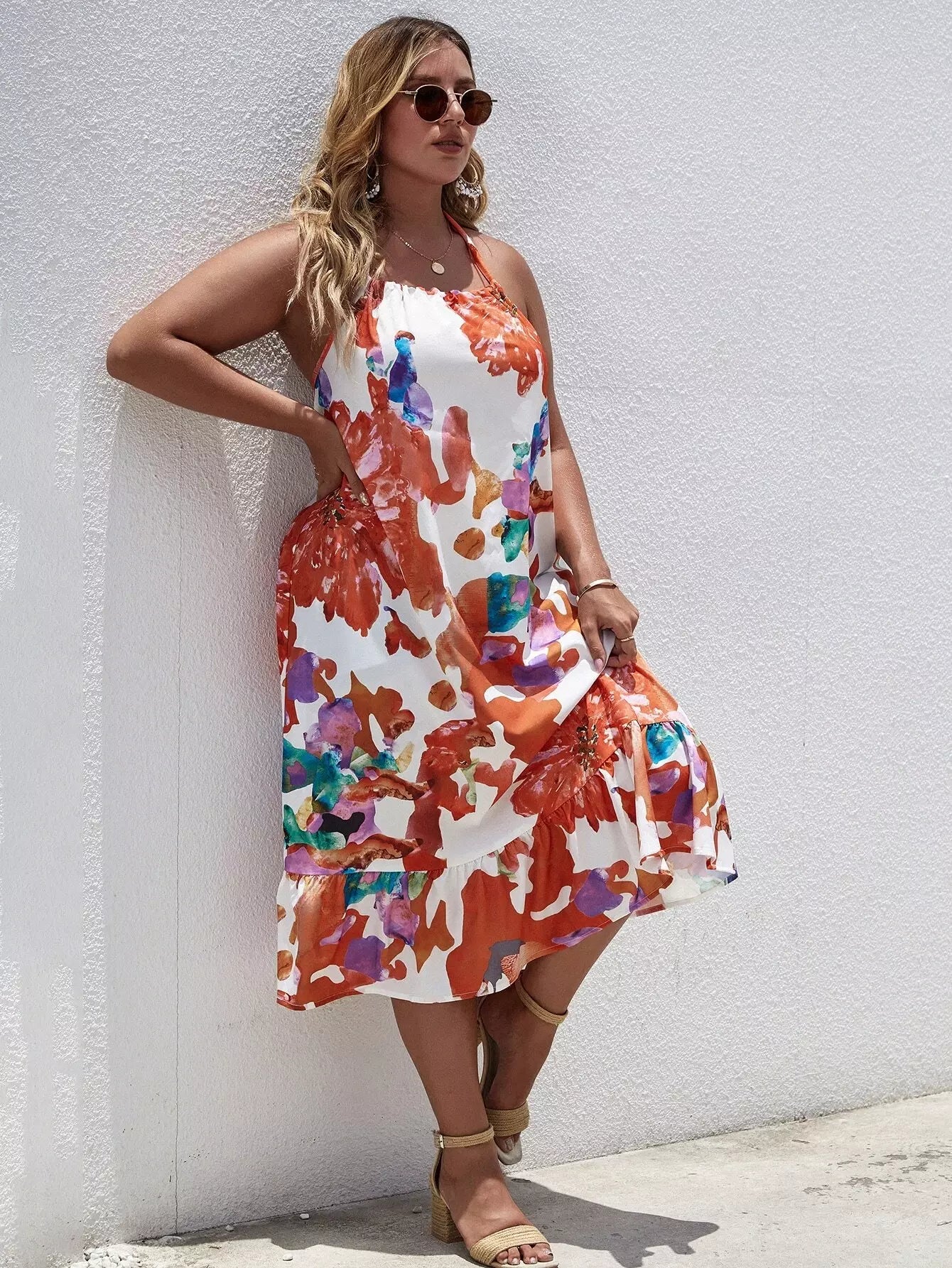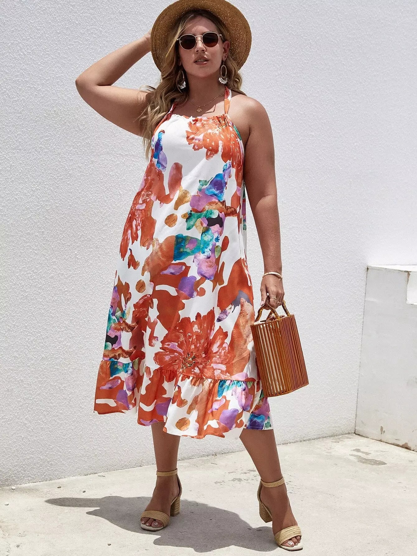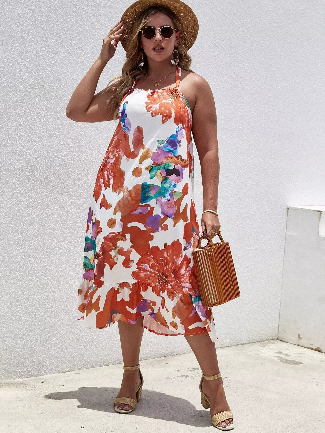 فستان بطبعة زهور مطبوع على الظهر بدون رسن
