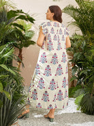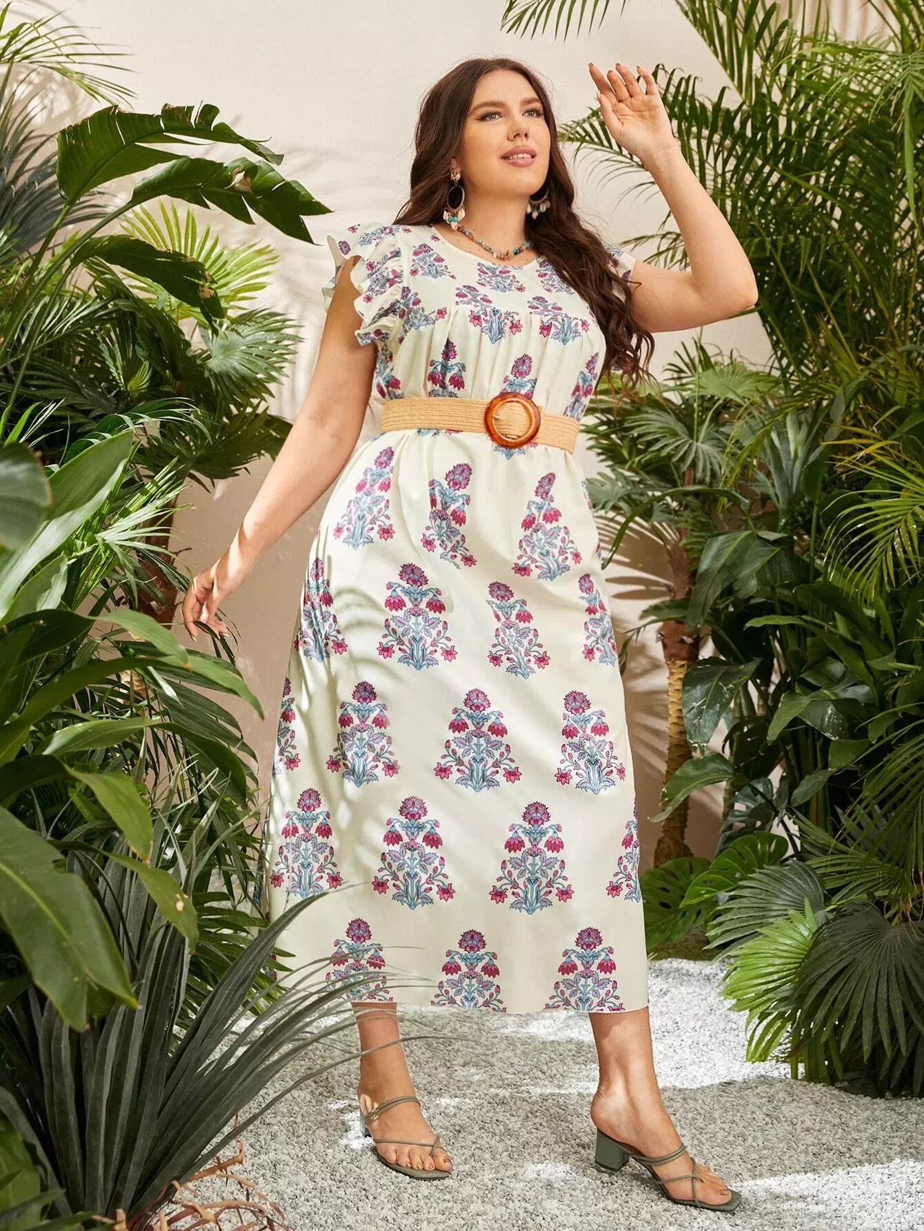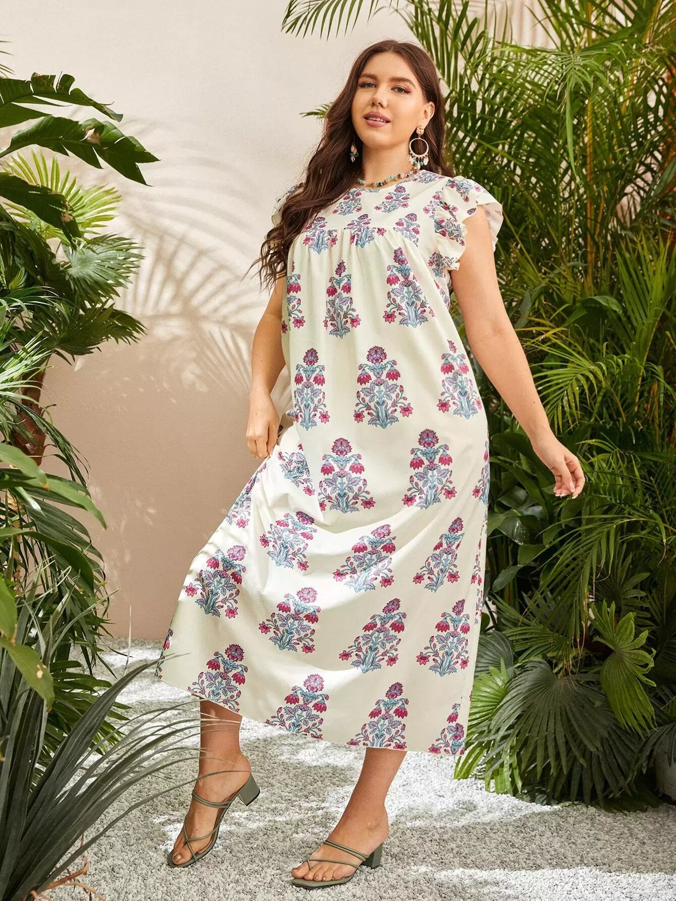 فستان بأكمام فراشة مطبوع بالزهور بدون حزام