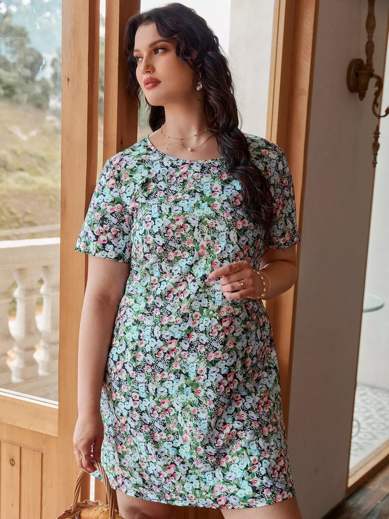 فستان بطبعة زهور مطبوع بقصّة زائدة وربطة عنق على الظهر