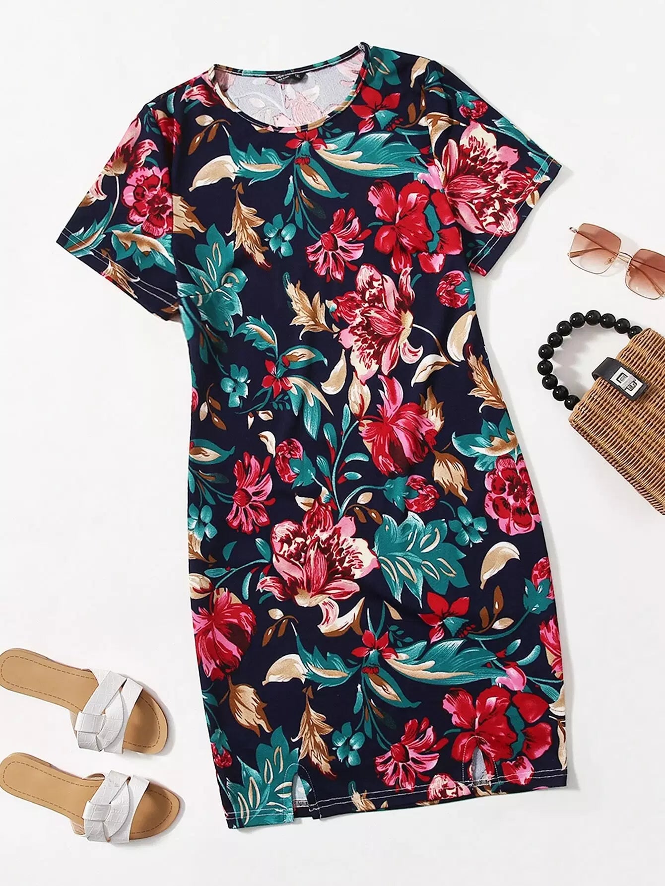 فستان بطبعة زهور زائد