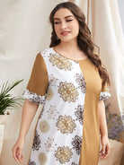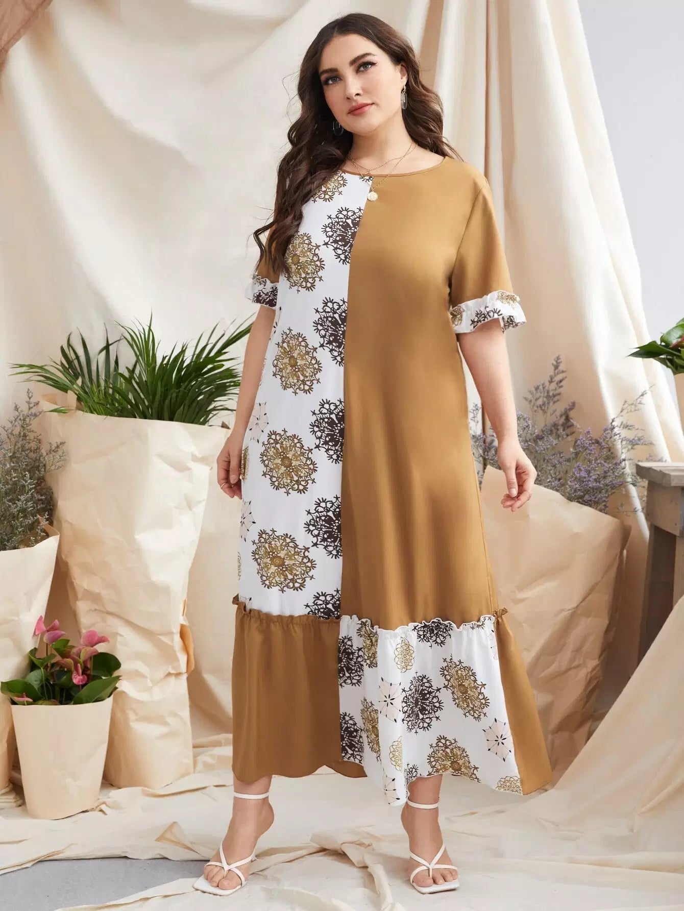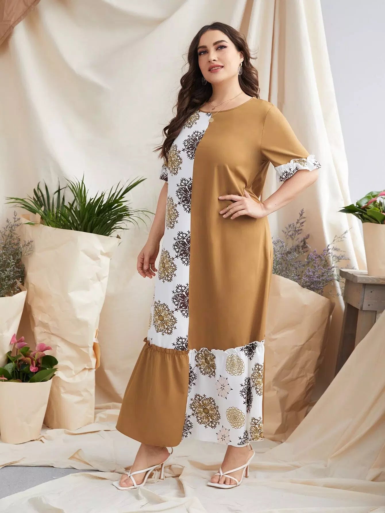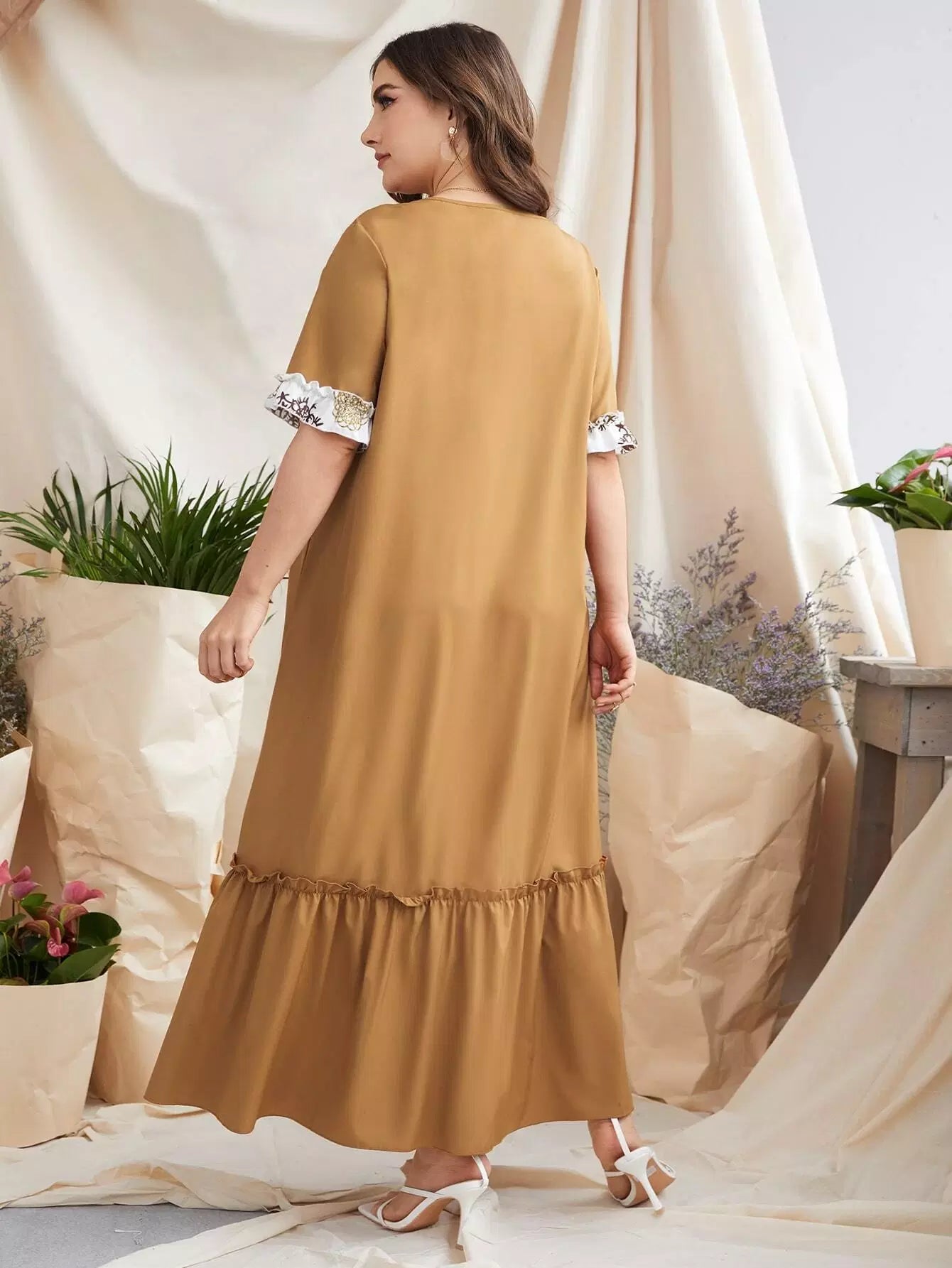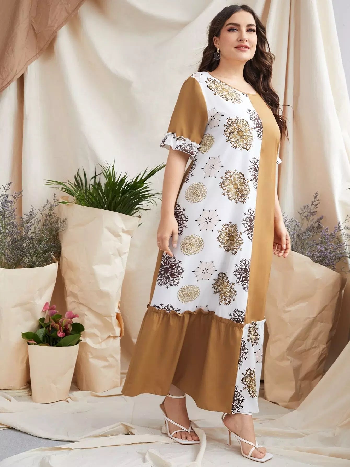 فستان بأكمام منفوشة بطبعة زهور زائد