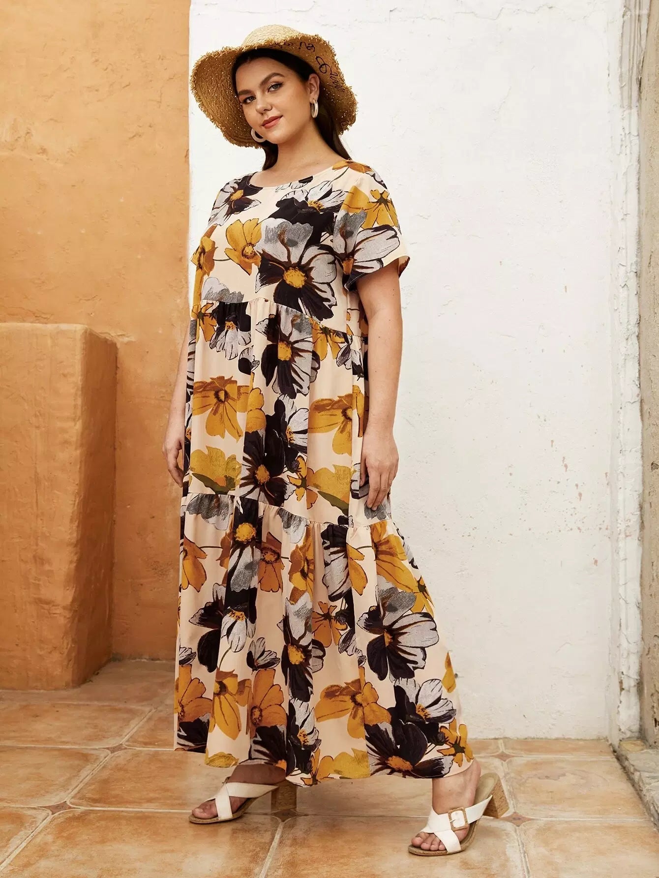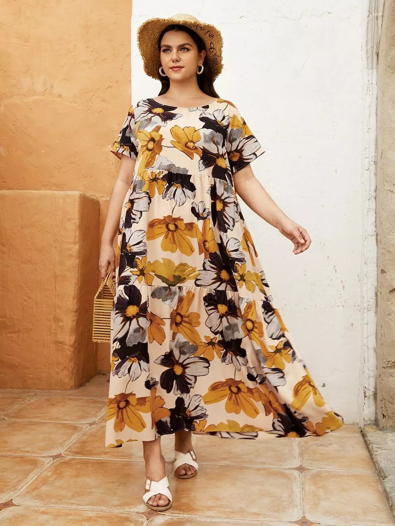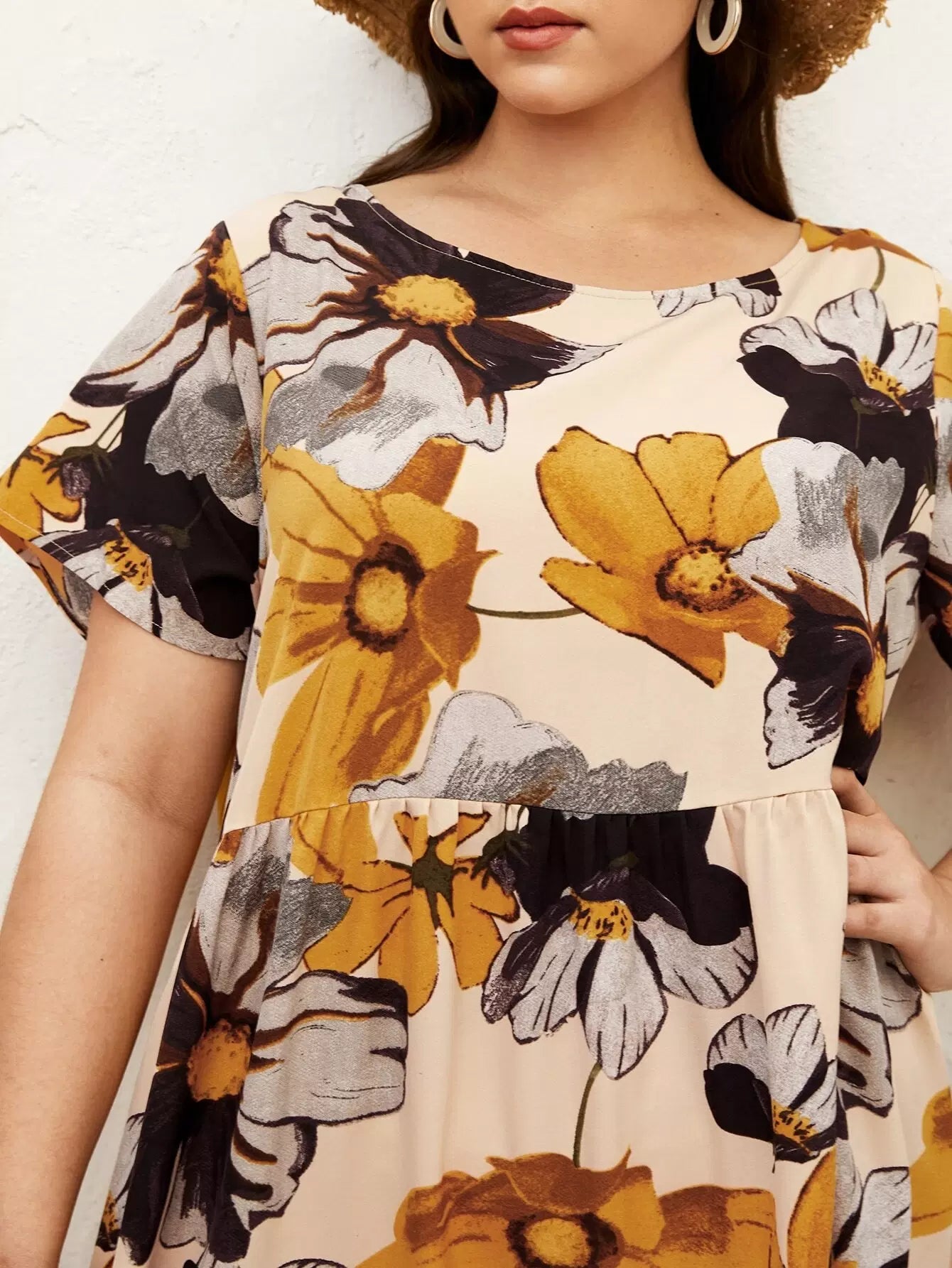 فستان بدون أكمام بطبعة زهور زائد سموك