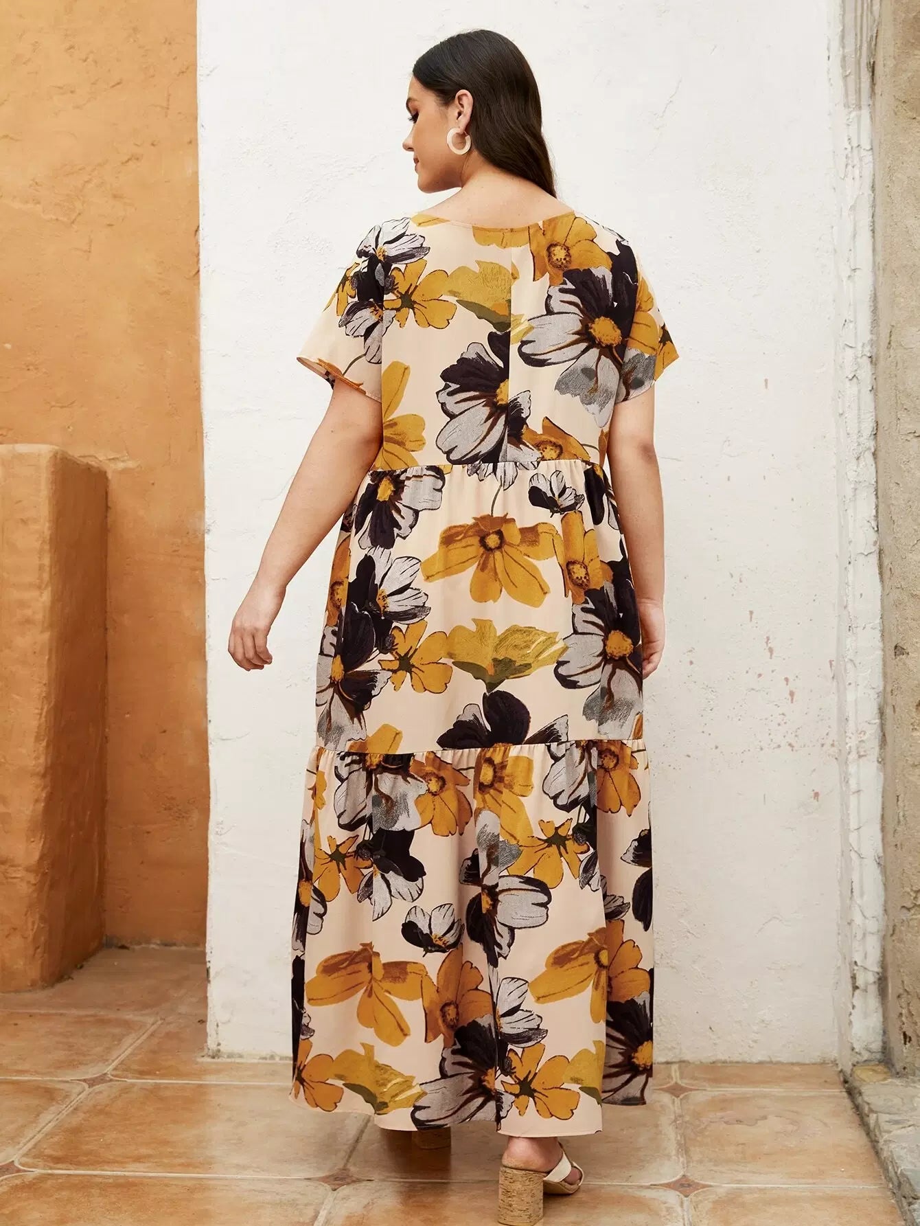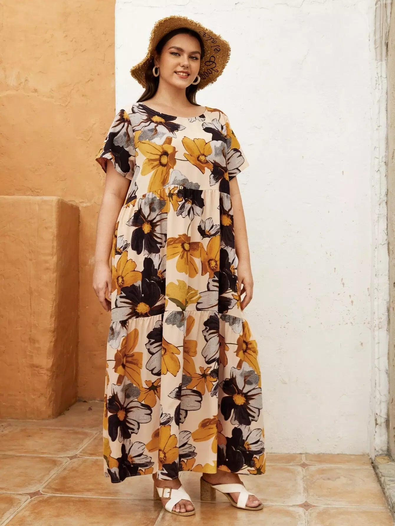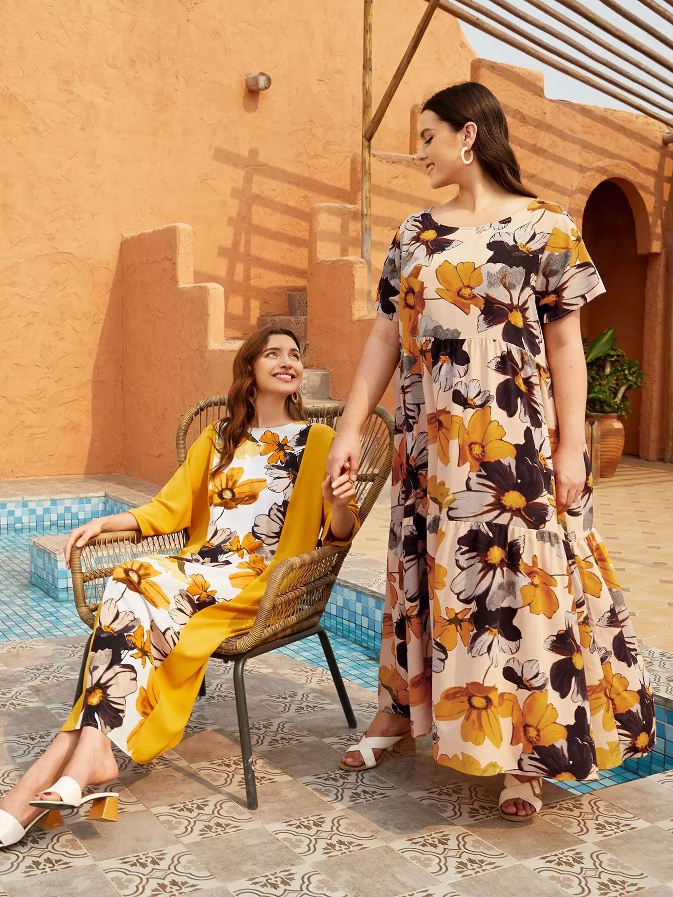 فستان بدون أكمام بطبعة زهور زائد سموك