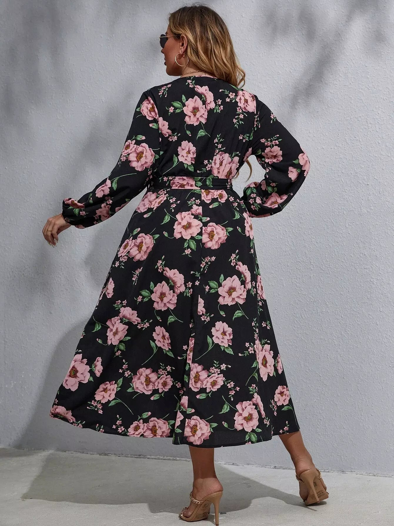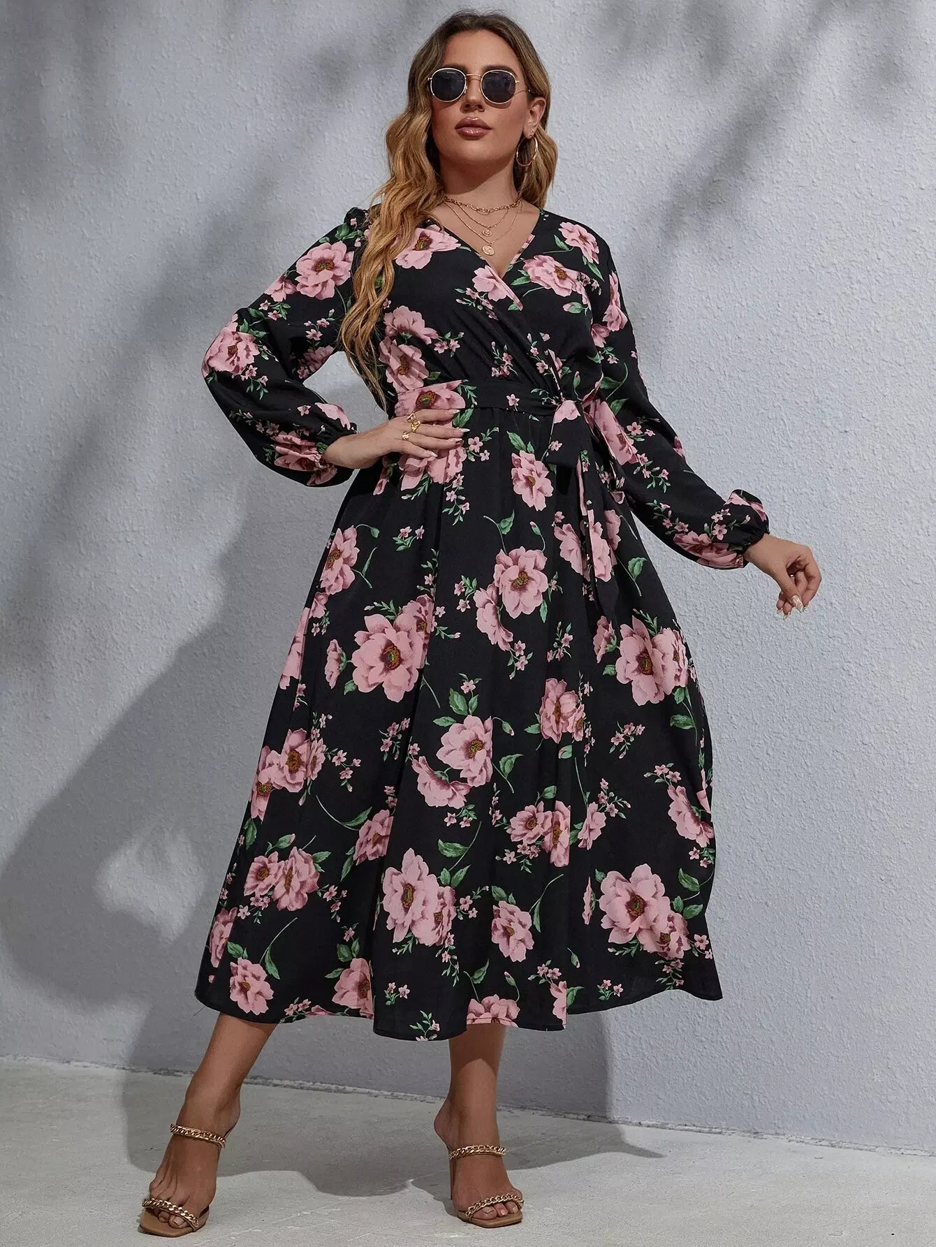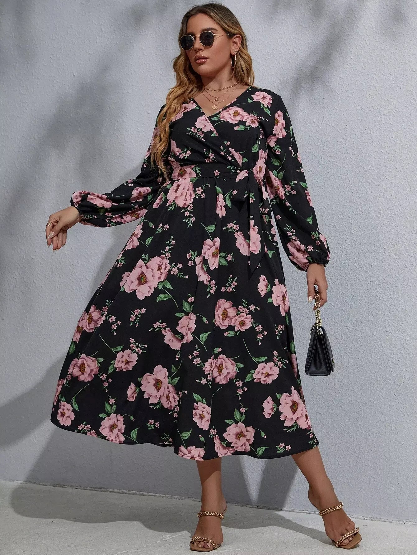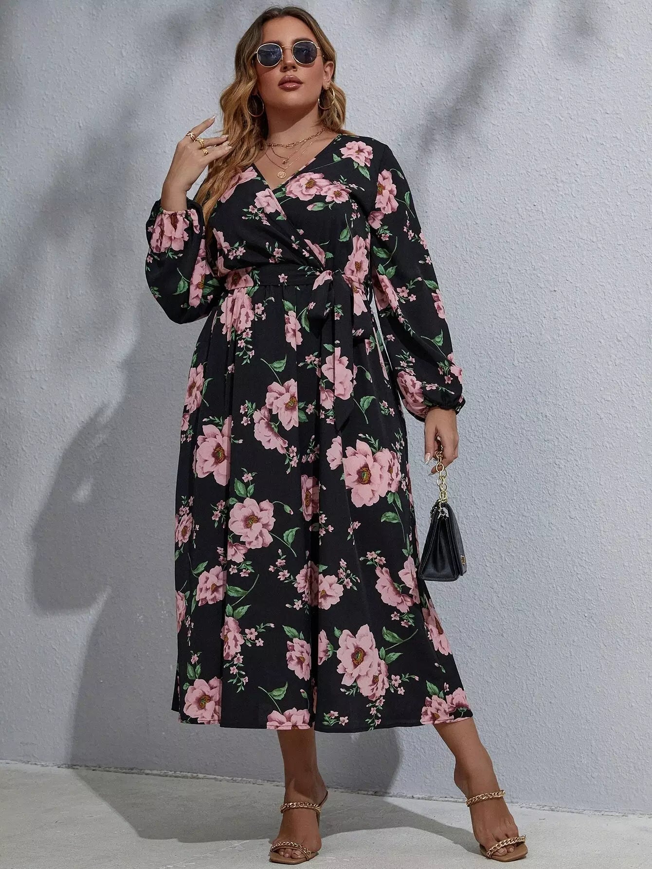 بالإضافة إلى فستان أمامي بطبعة زهور بدون حزام
