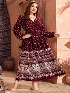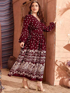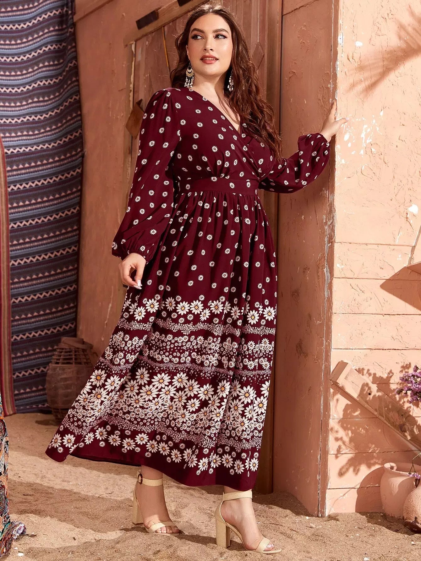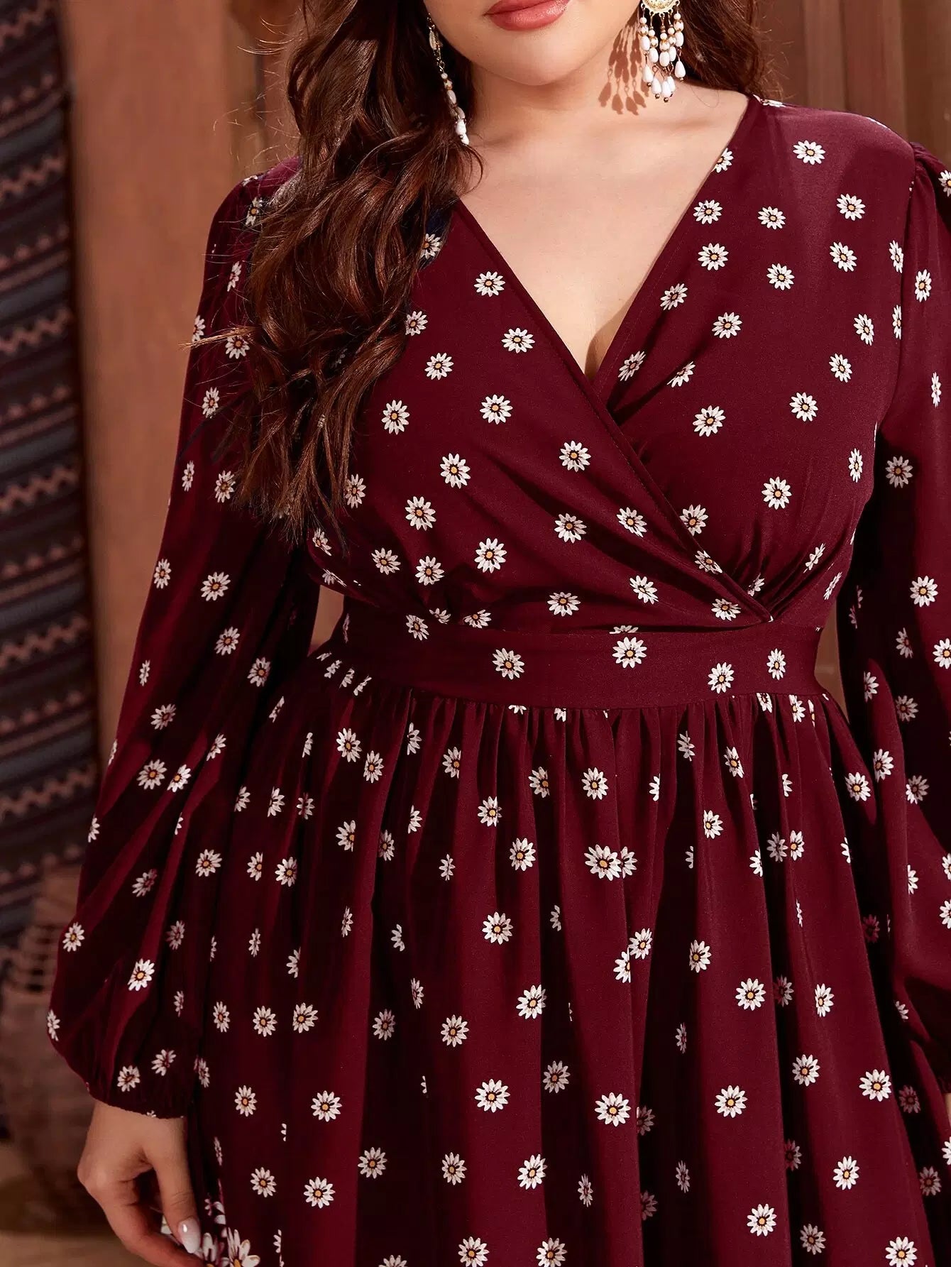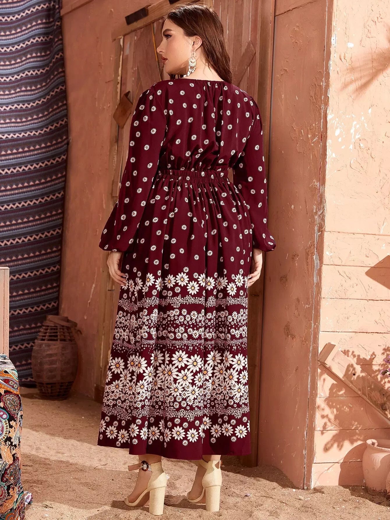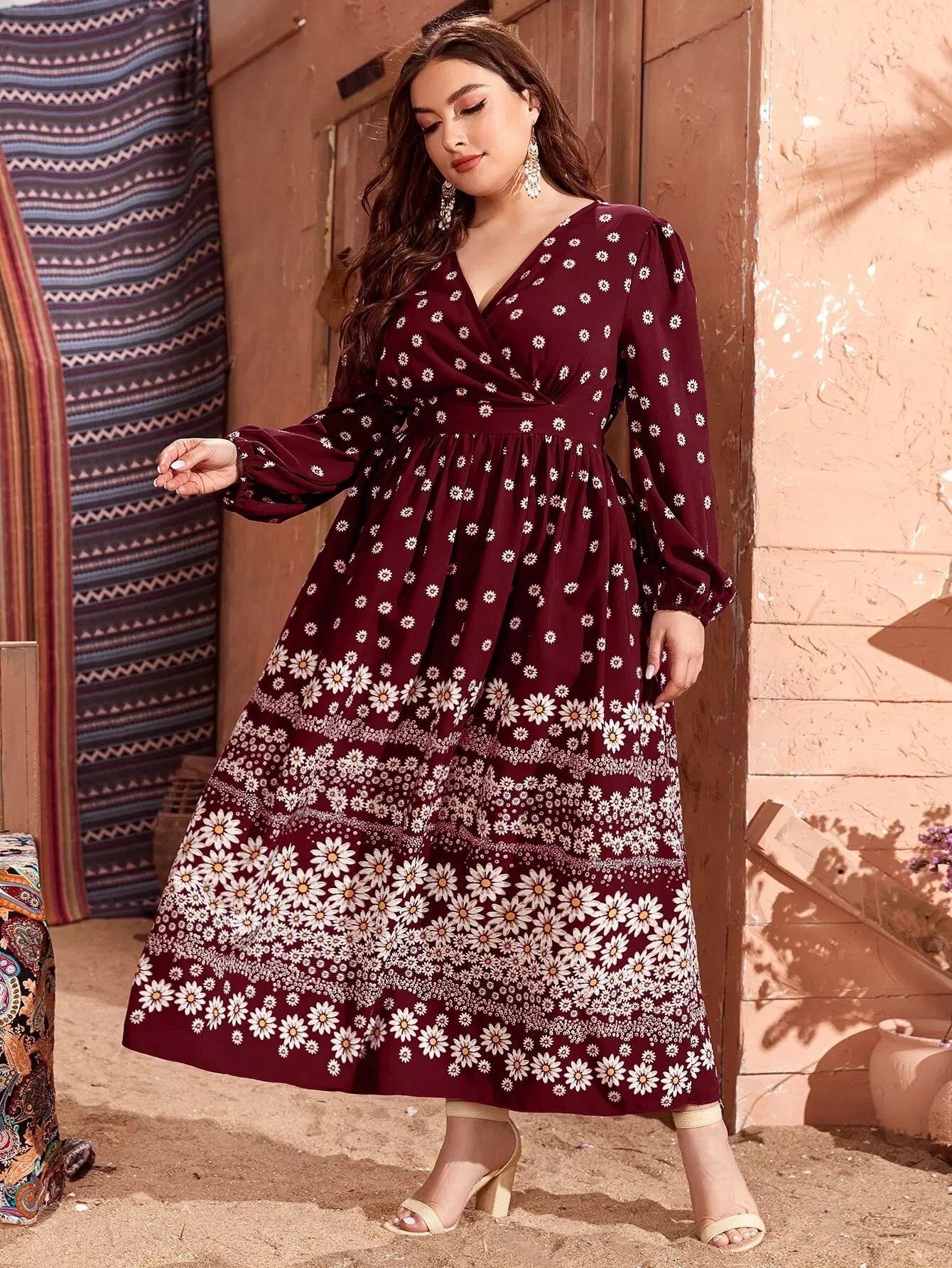 فستان بطبعة زهور زائد مطبوع من الأمام