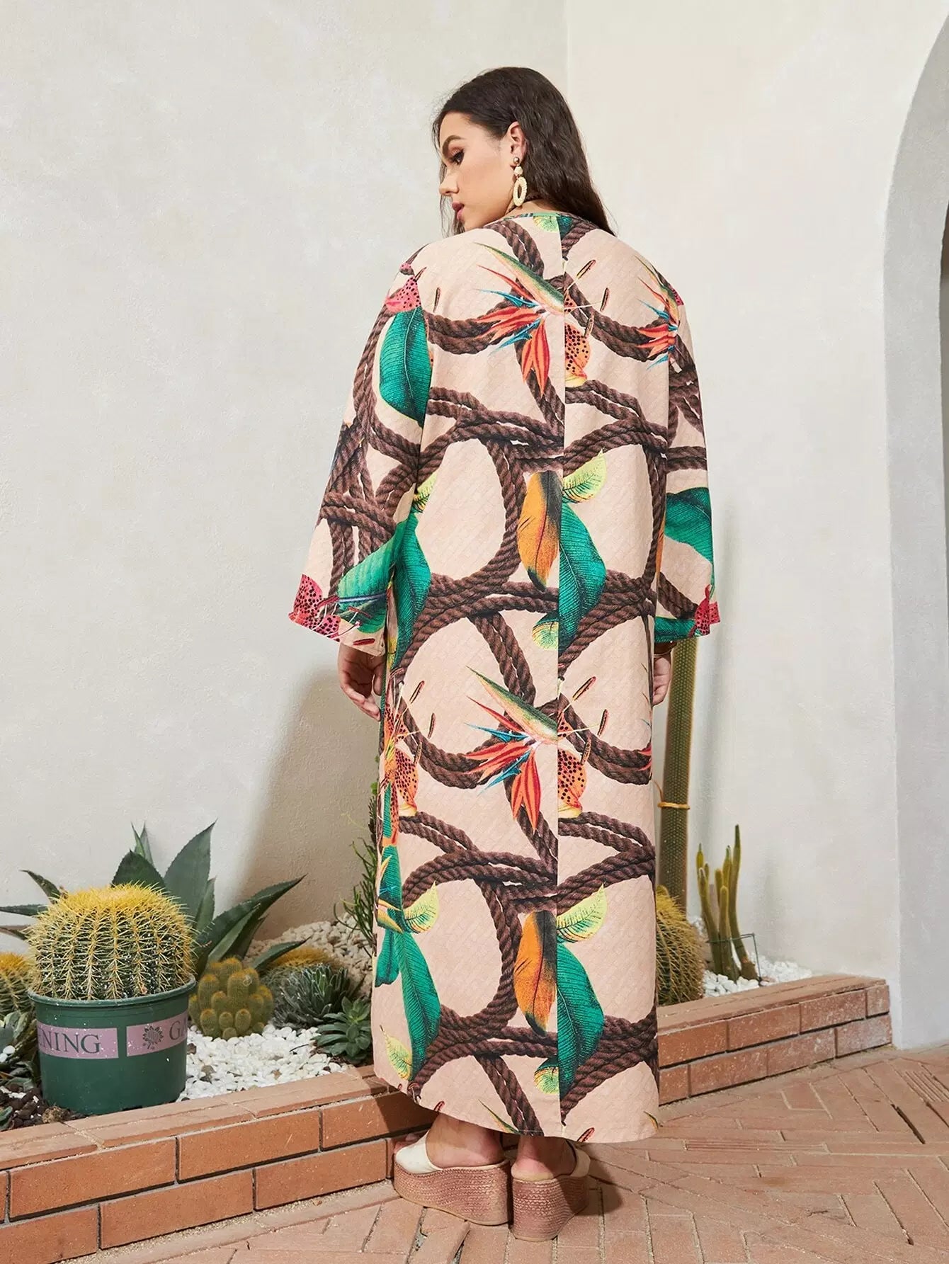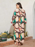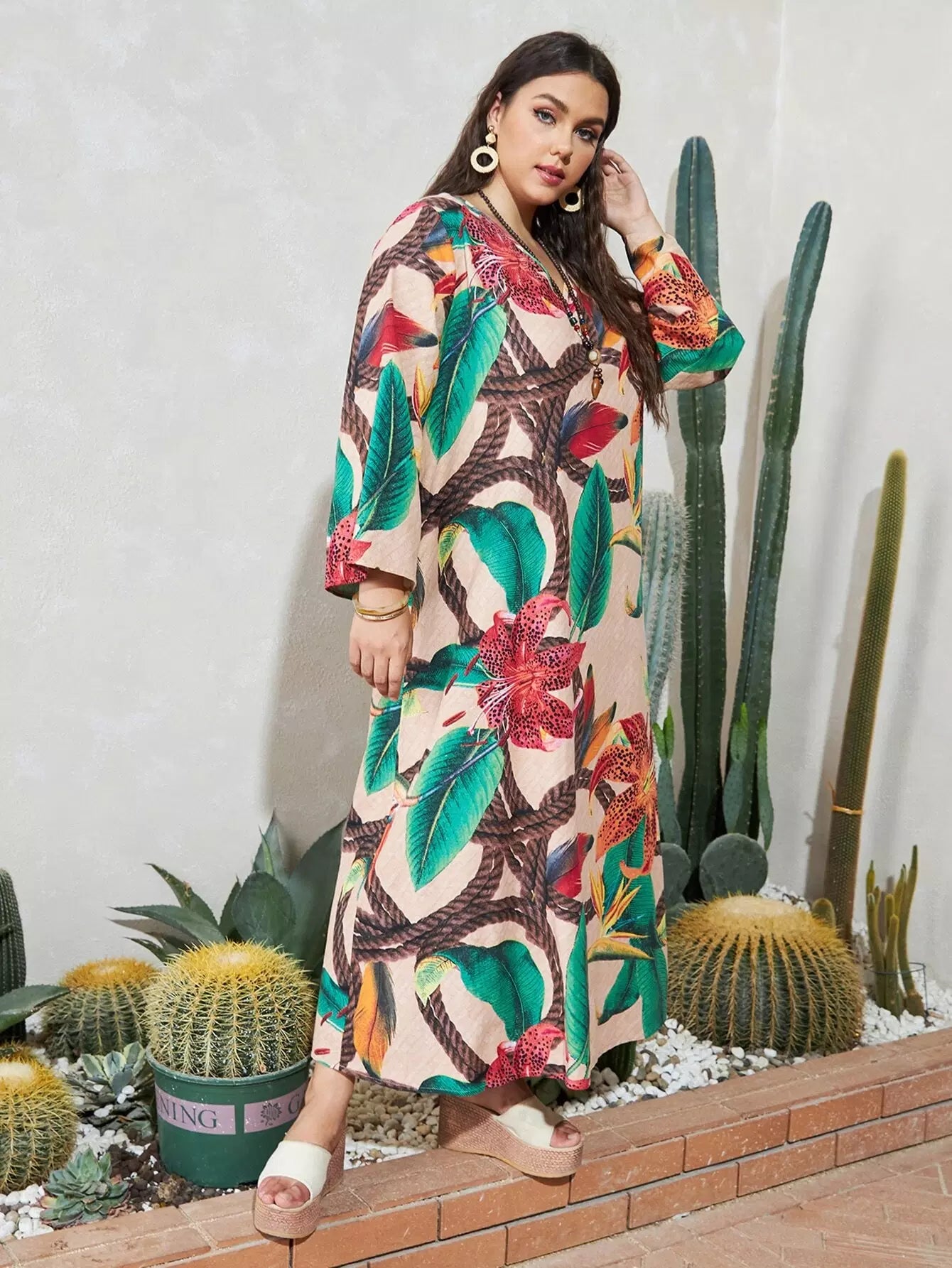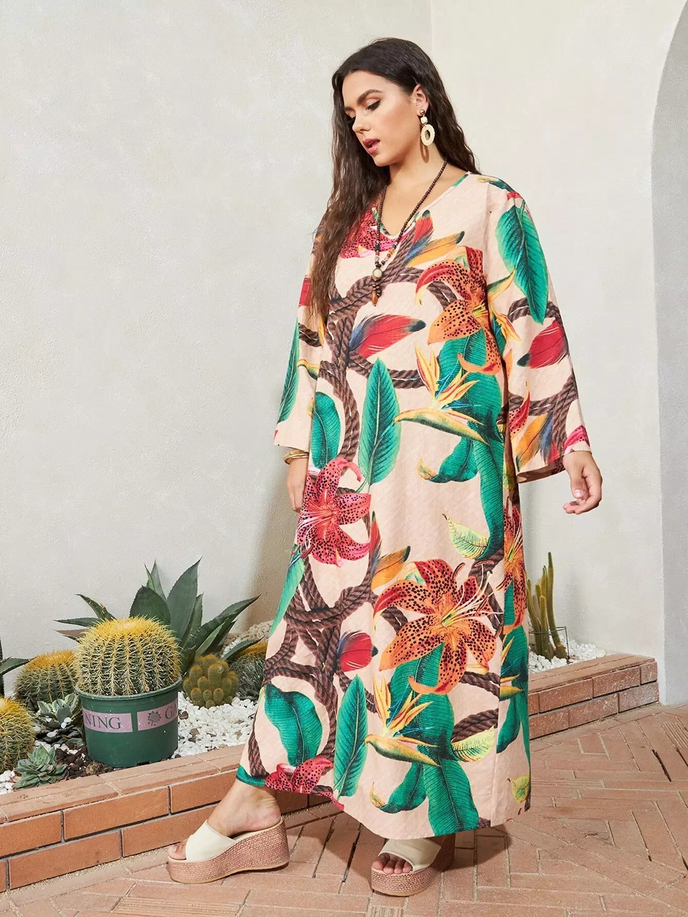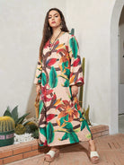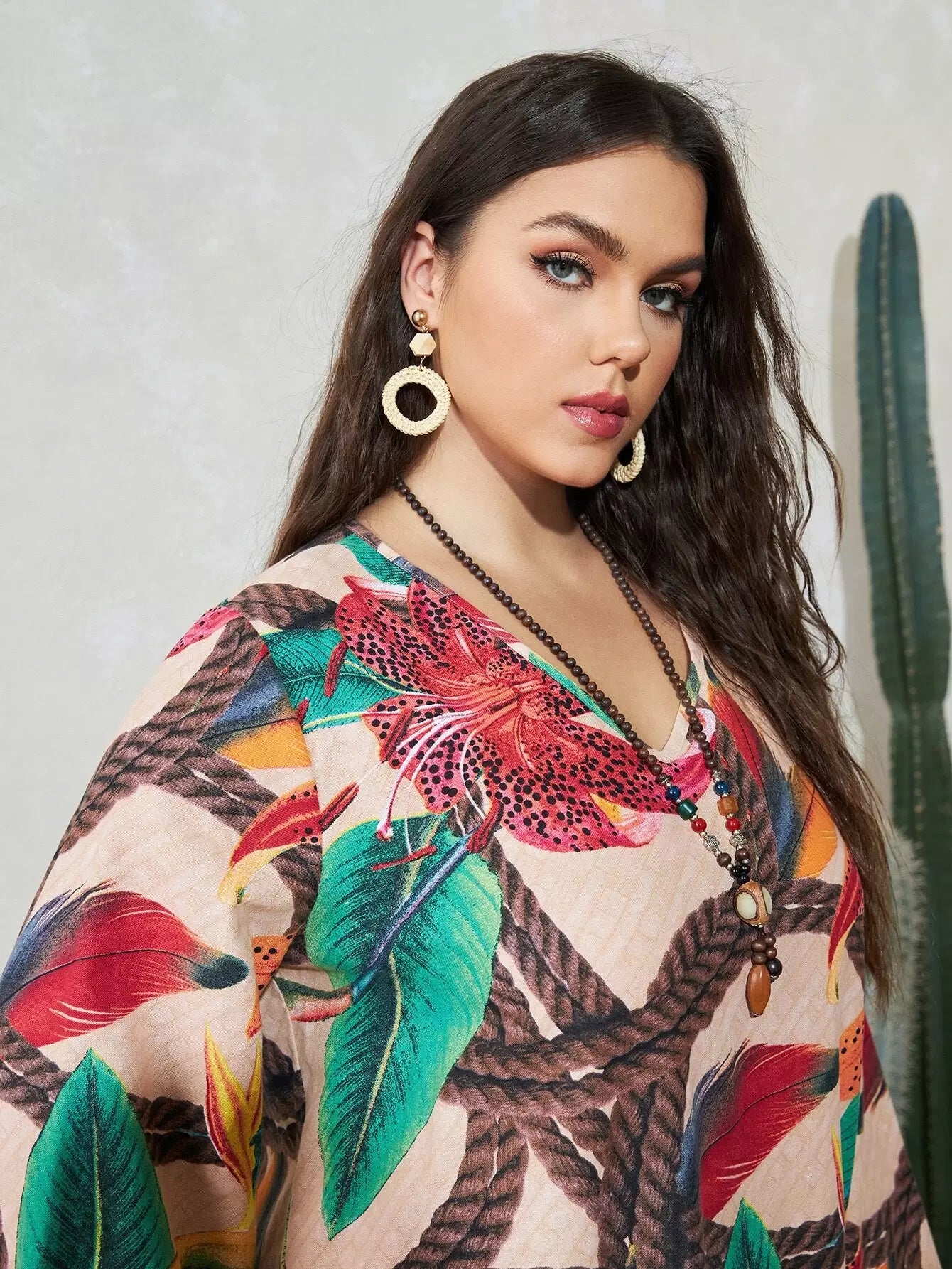 فستان تونك برقبة على شكل V مطبوع بالزهور