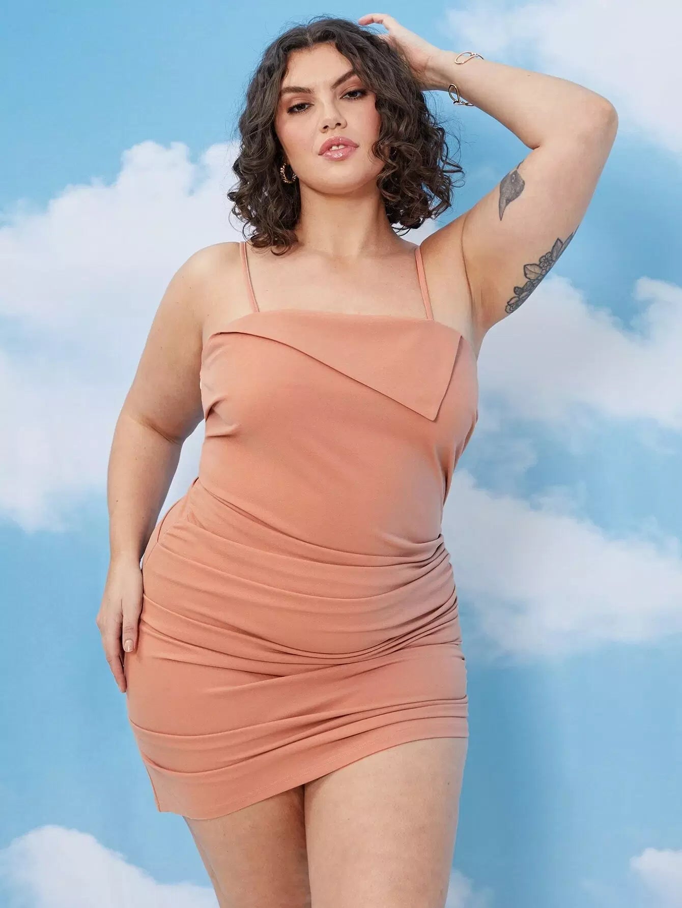 فستان مكشكش من الأمام مطوي بلاس بلس