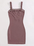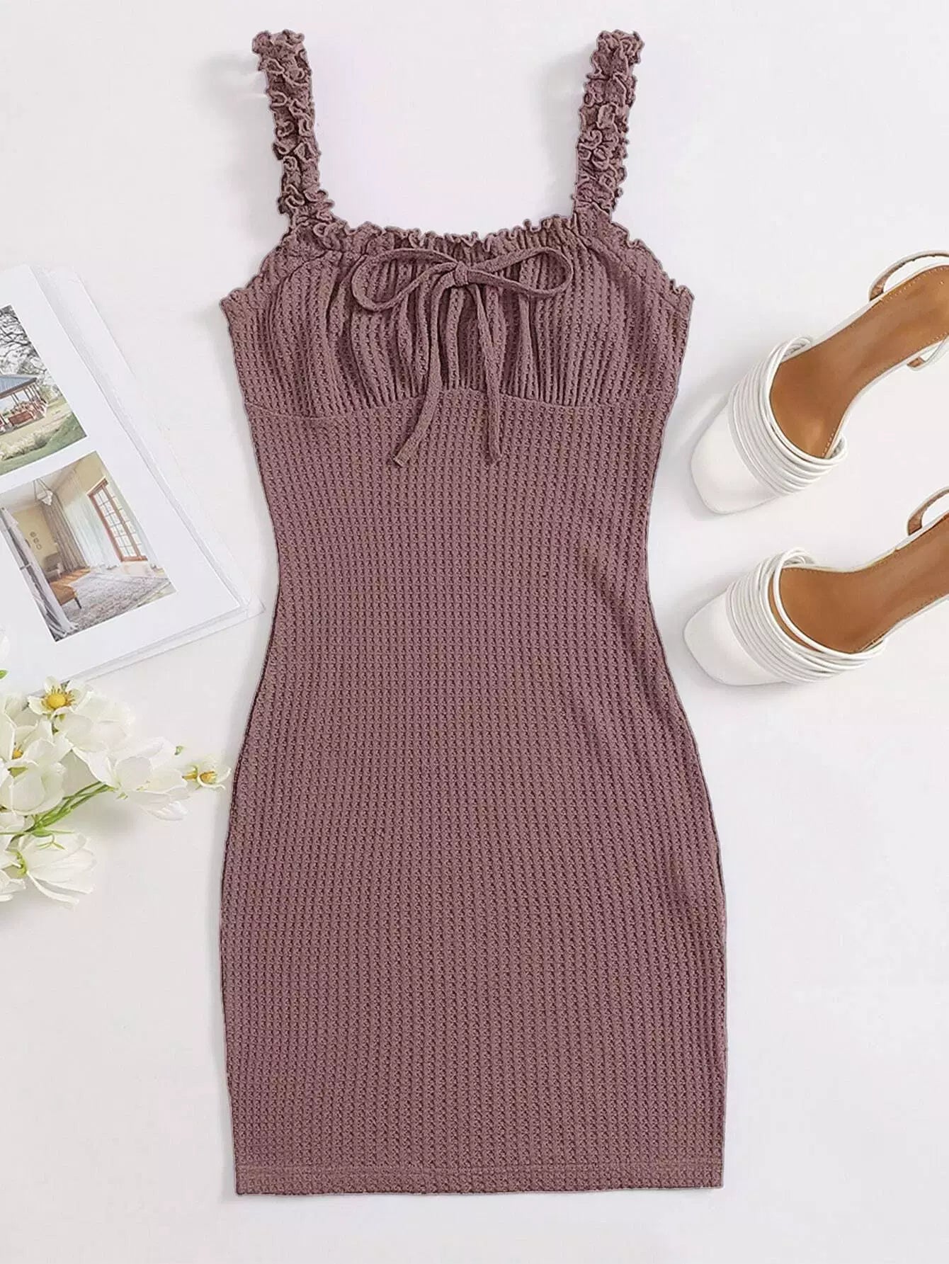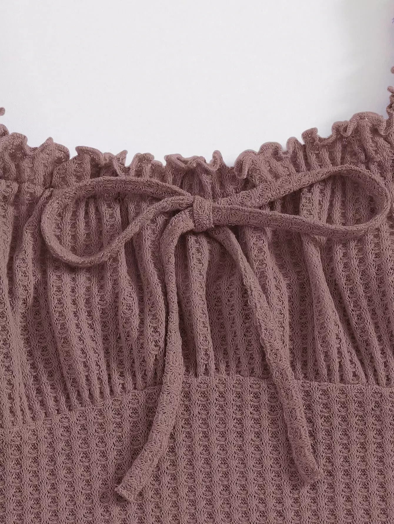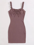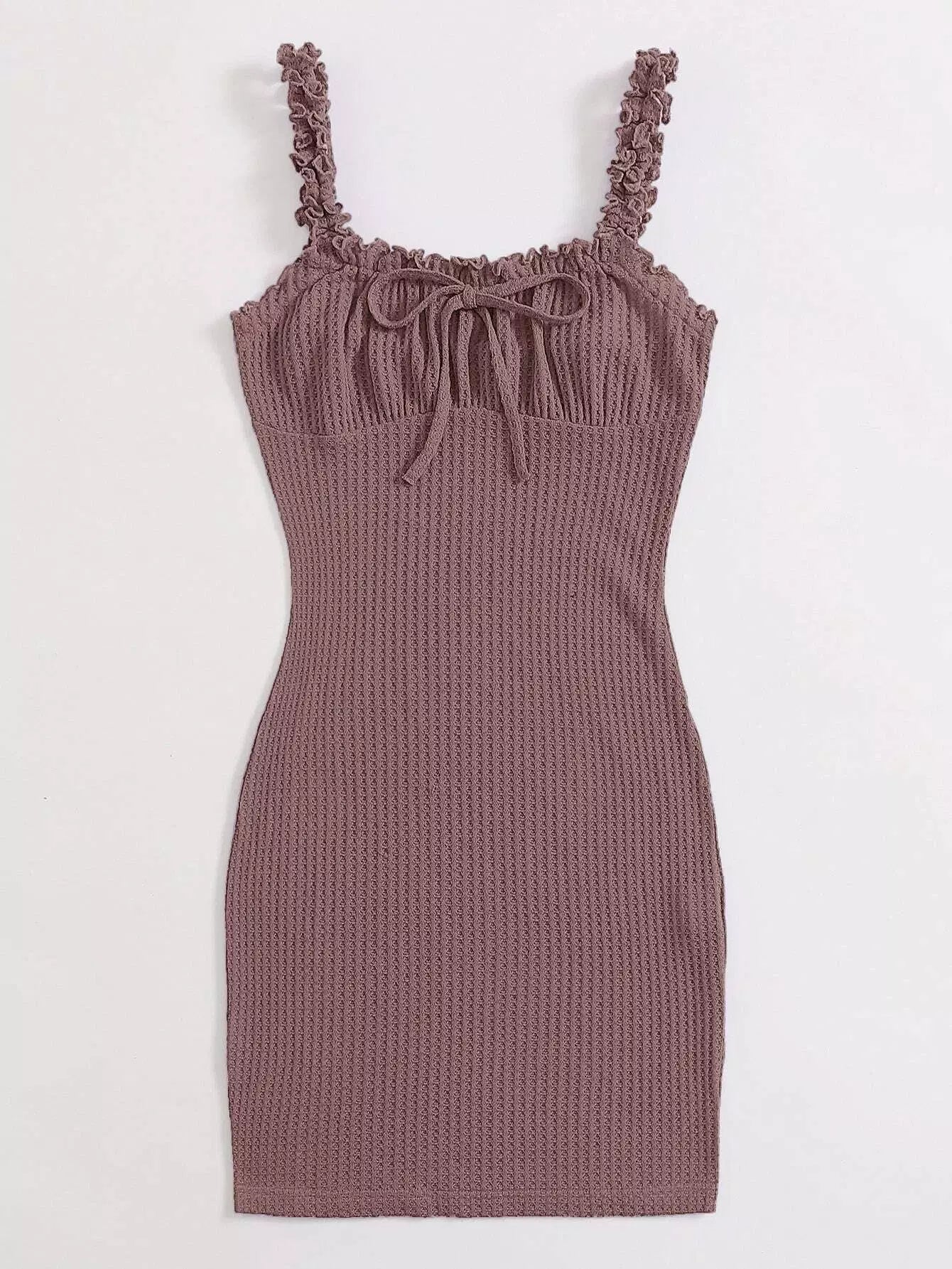 فستان مكشكش مزين بكشكش مزين بعقدة أمامية مكشكشة من الأمام ومفتول من الصدر